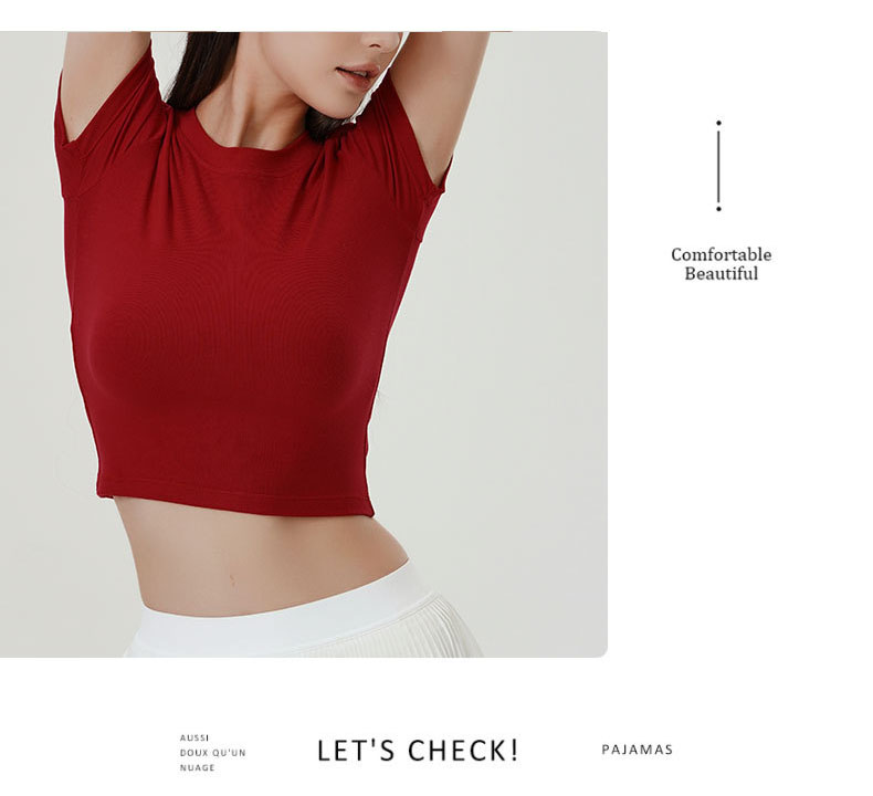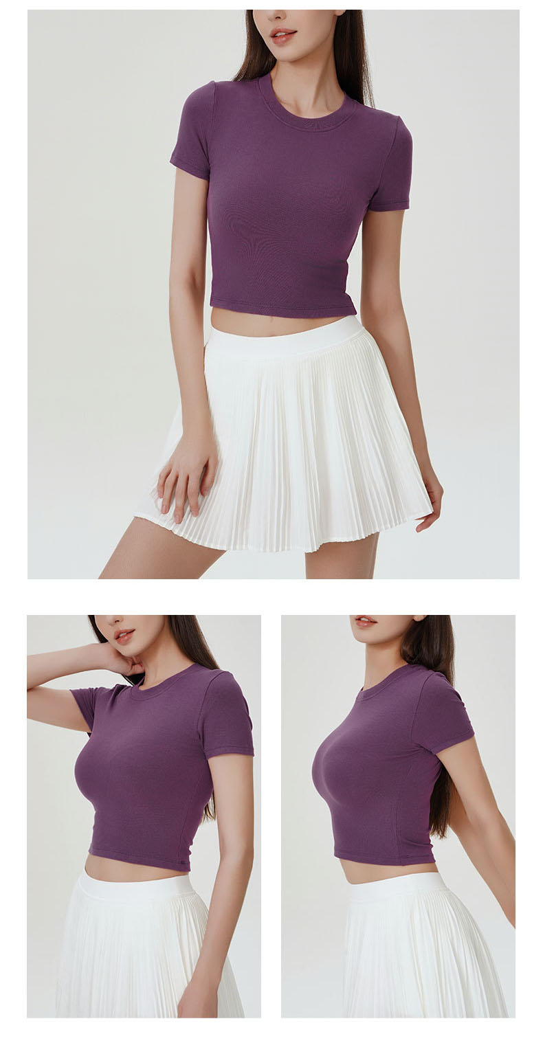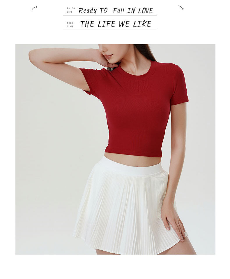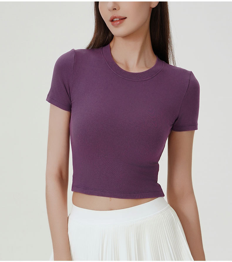 跃牌【美西西系列】2025夏新圆领短袖露脐性感超短运动潮搭辣妹跳舞健身lulu瑜伽上衣DX-2511-15-主