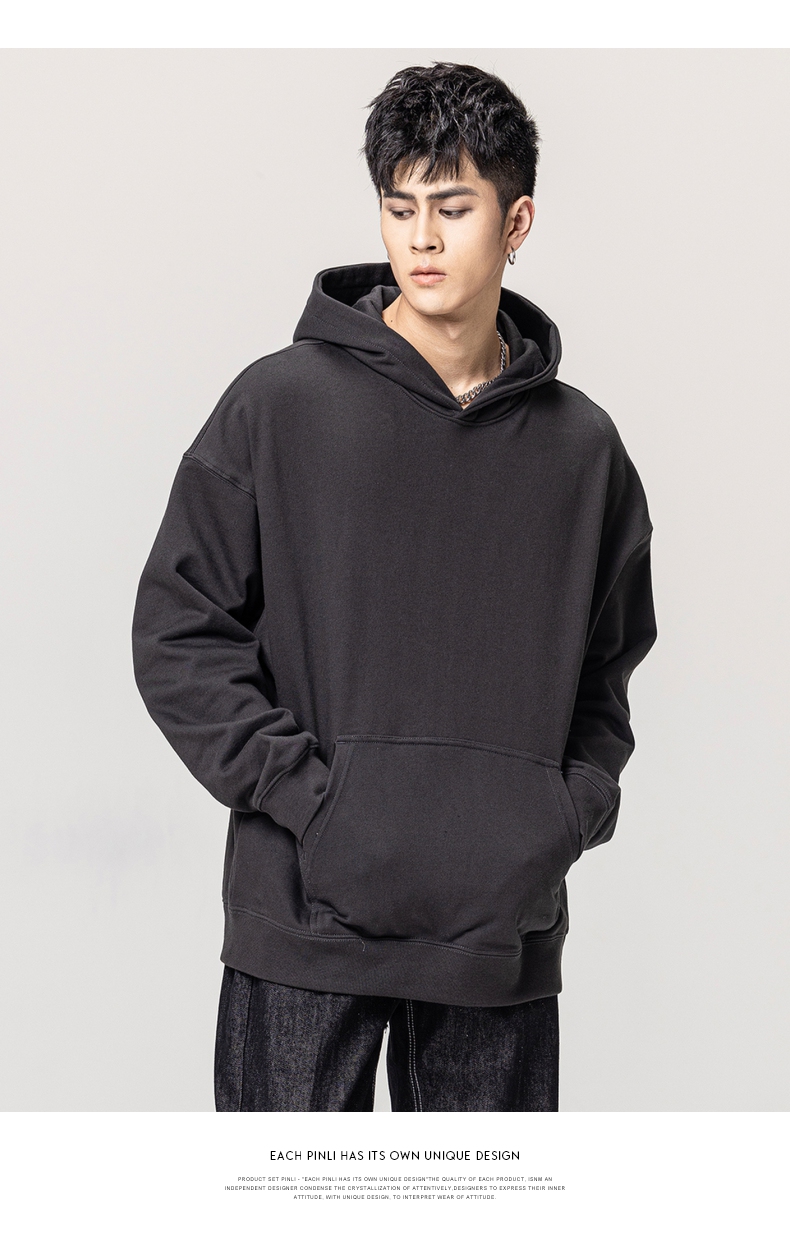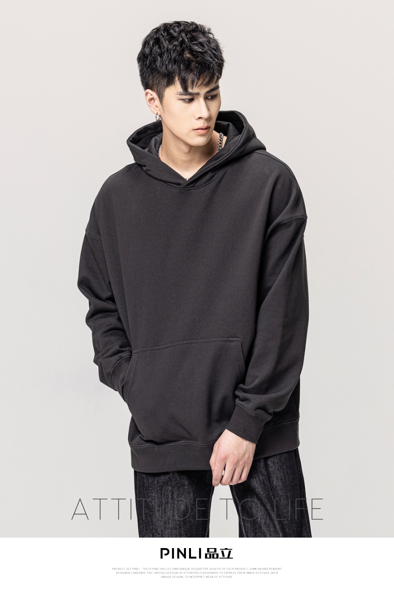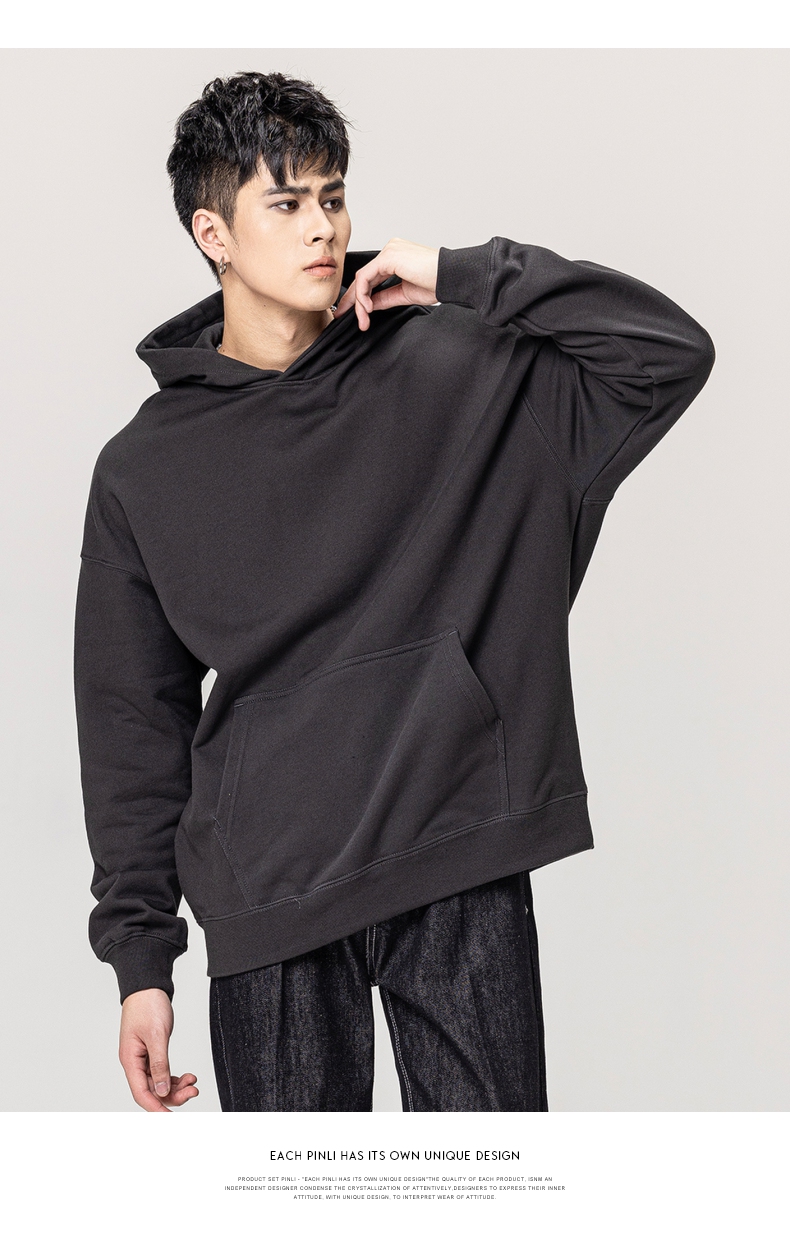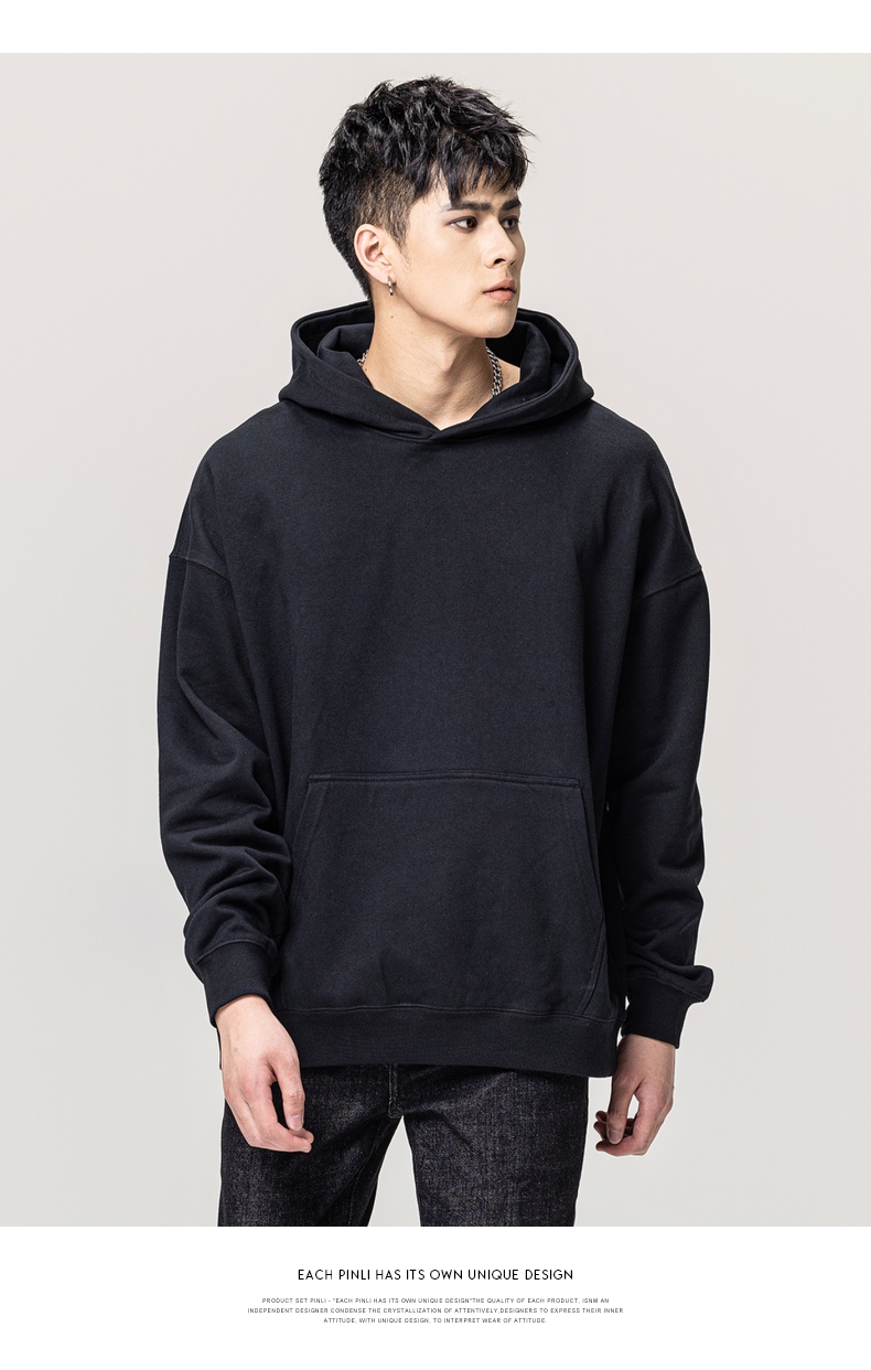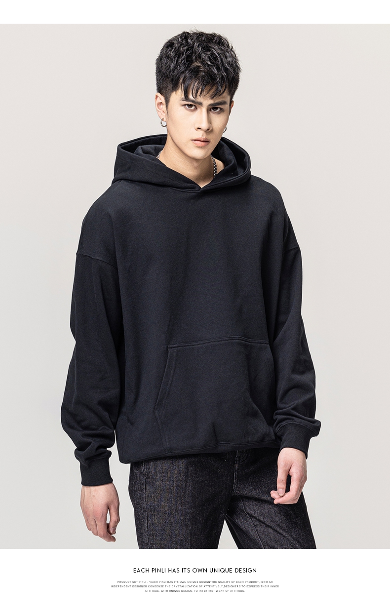 PINLI品立秋冬新款男士纯色连帽套头长袖休闲卫衣GD223309394