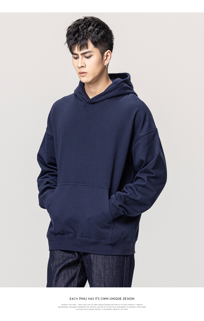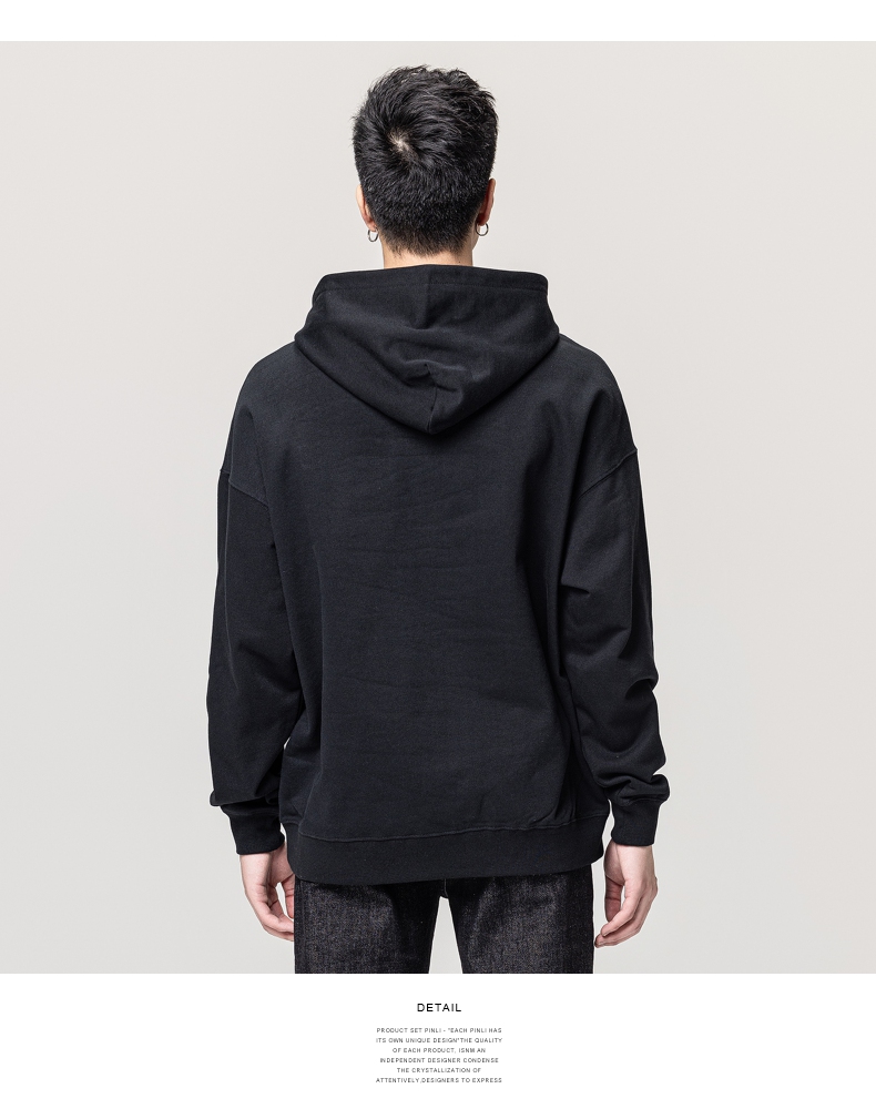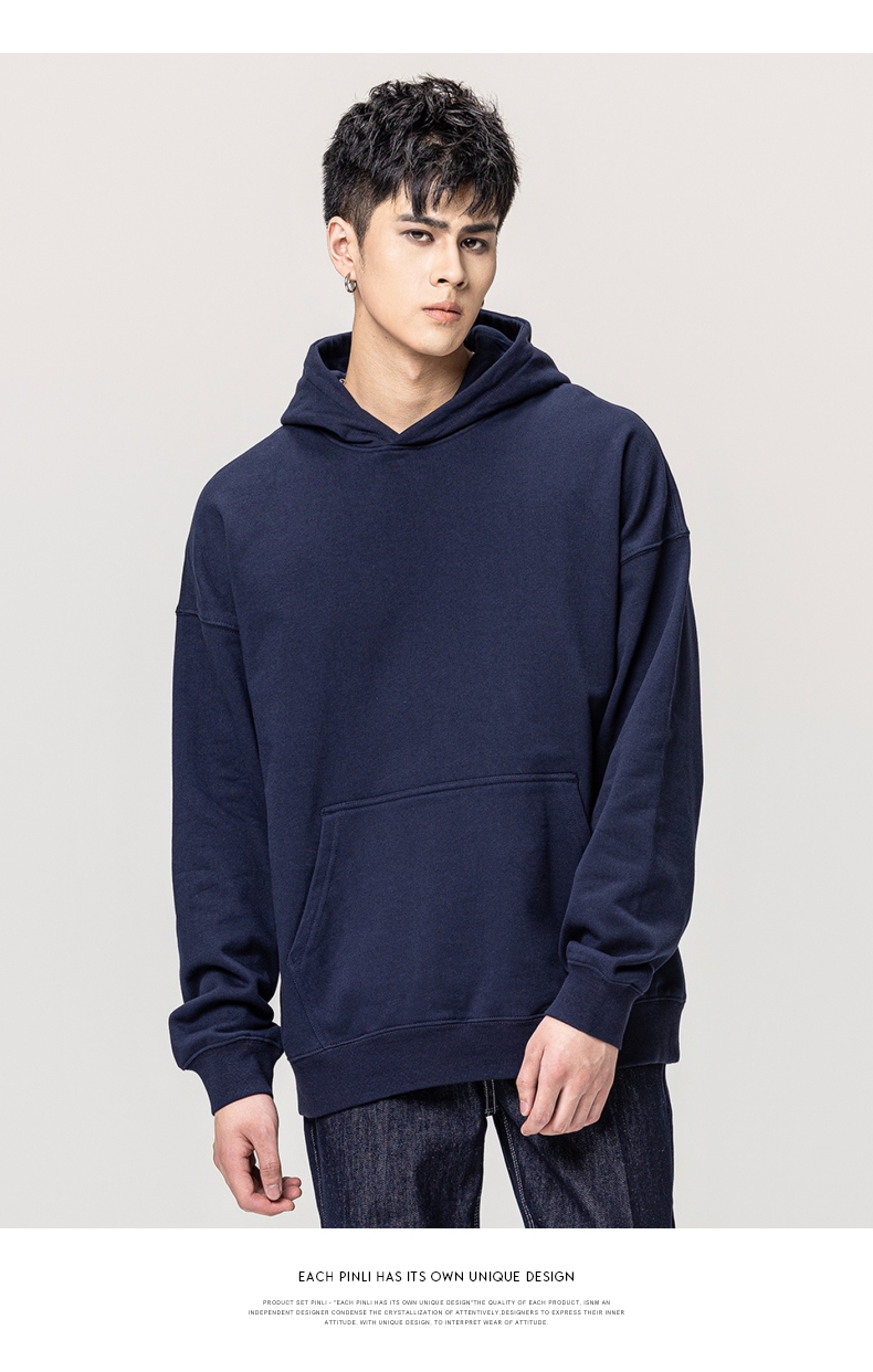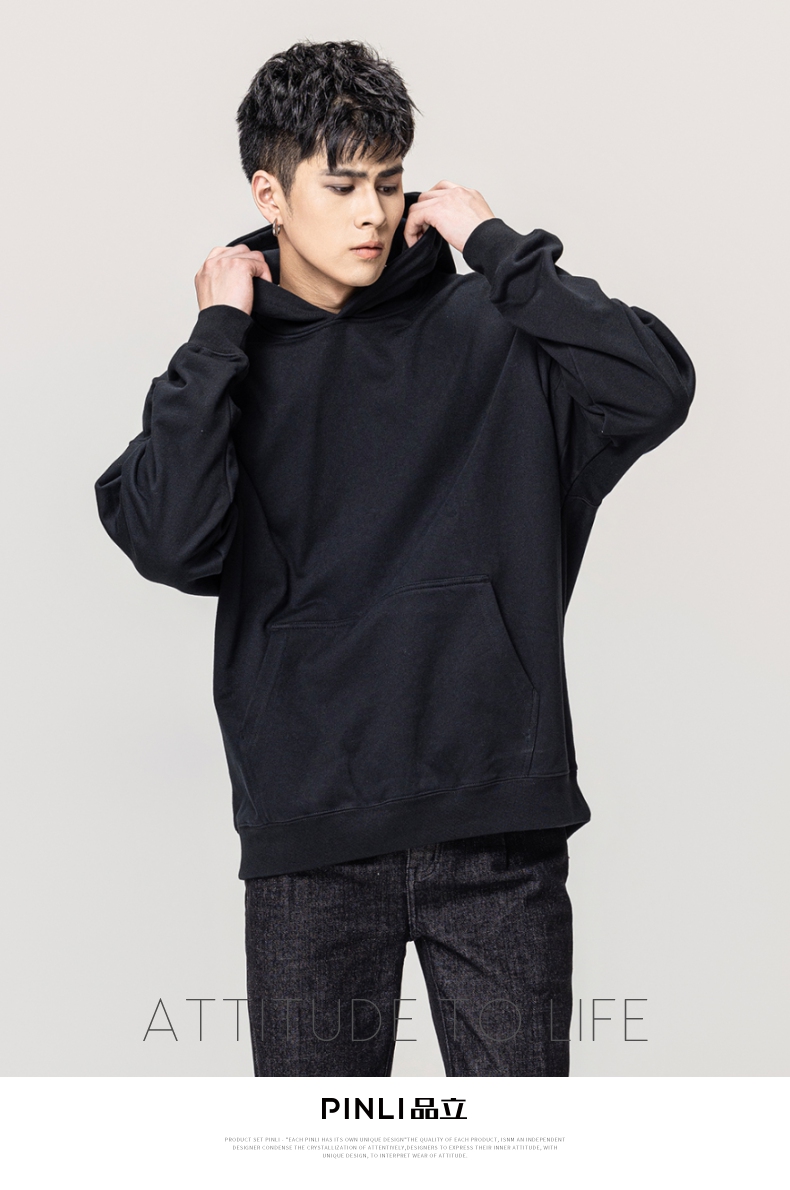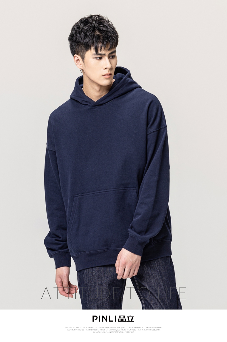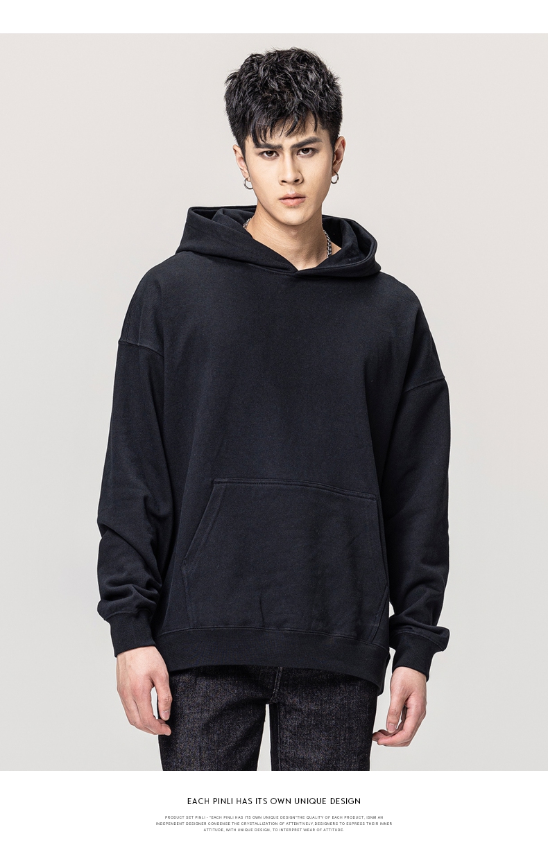 PINLI品立秋冬新款男士纯色连帽套头长袖休闲卫衣GD223309394