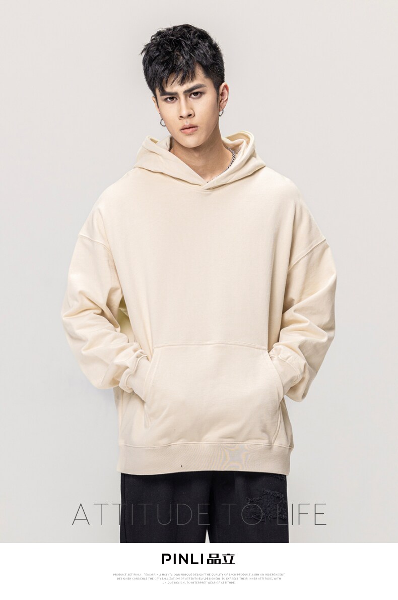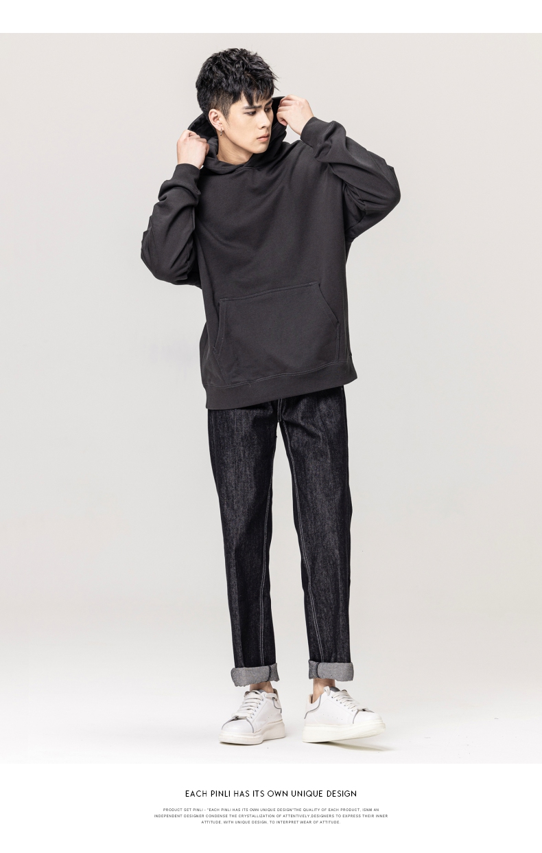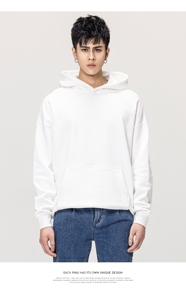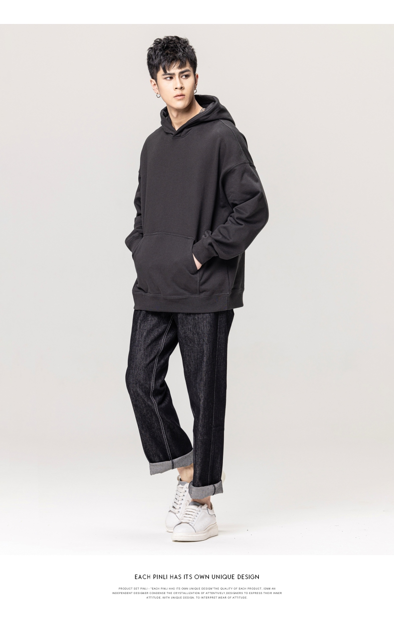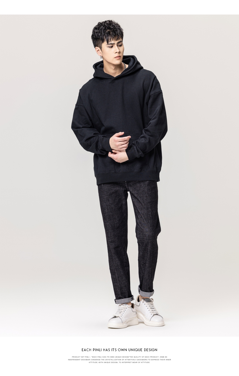 PINLI品立秋冬新款男士纯色连帽套头长袖休闲卫衣GD223309394
