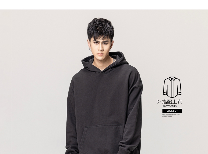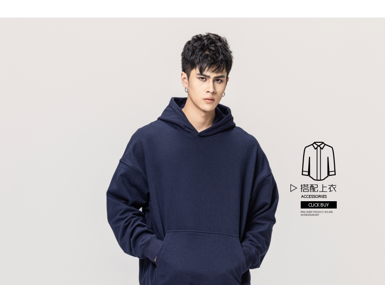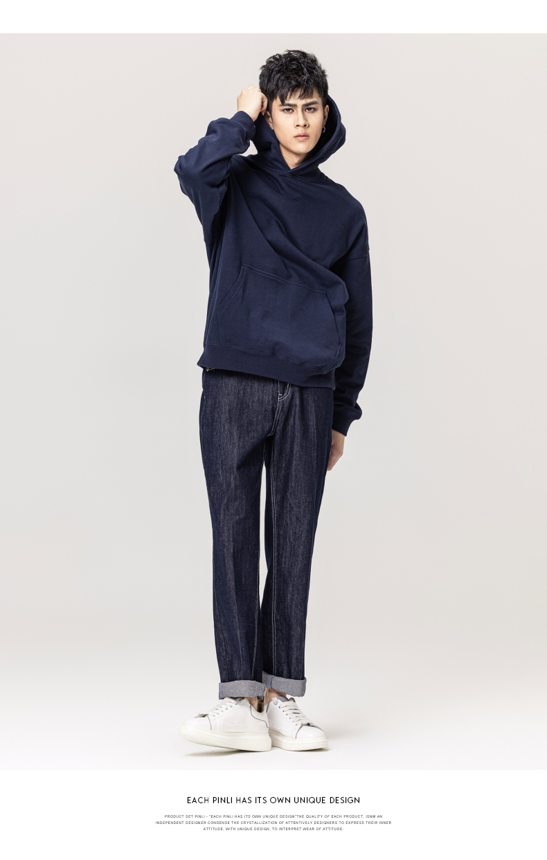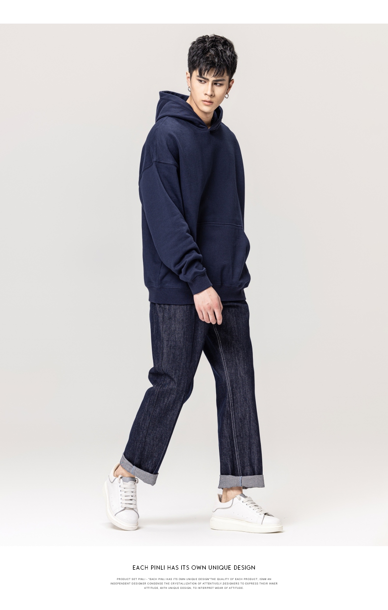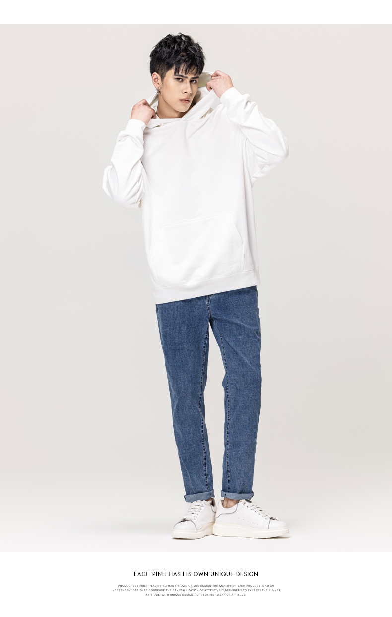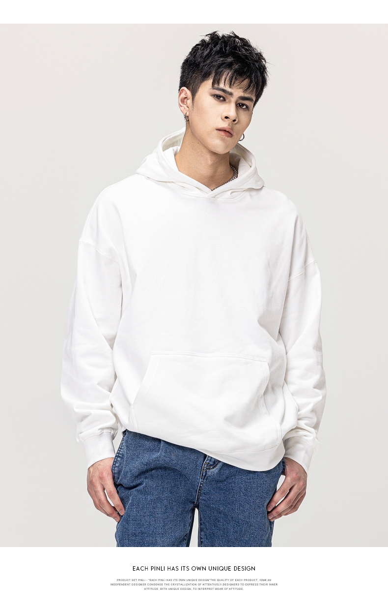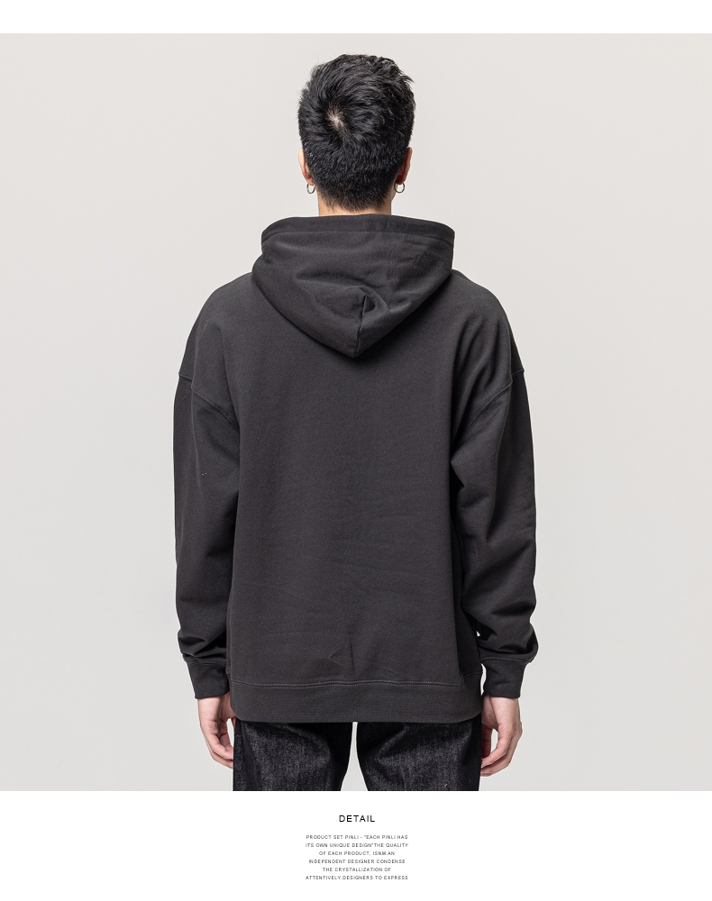 PINLI品立秋冬新款男士纯色连帽套头长袖休闲卫衣GD223309394