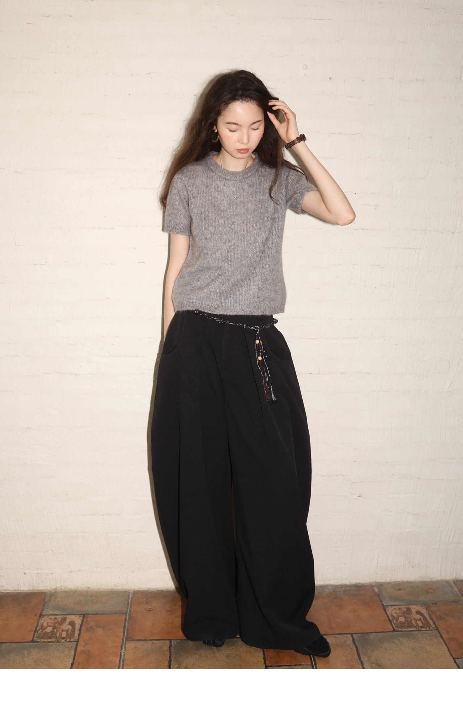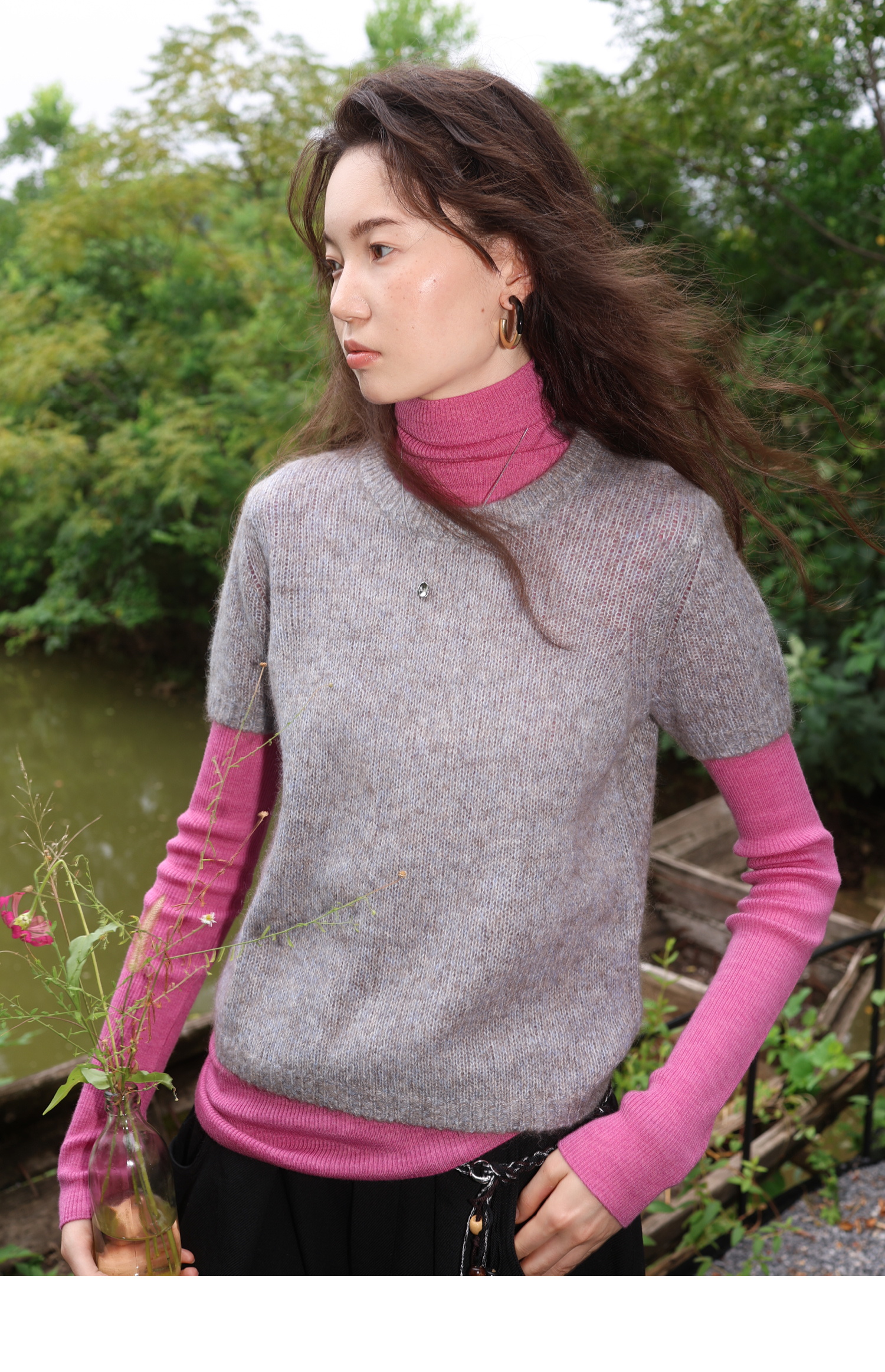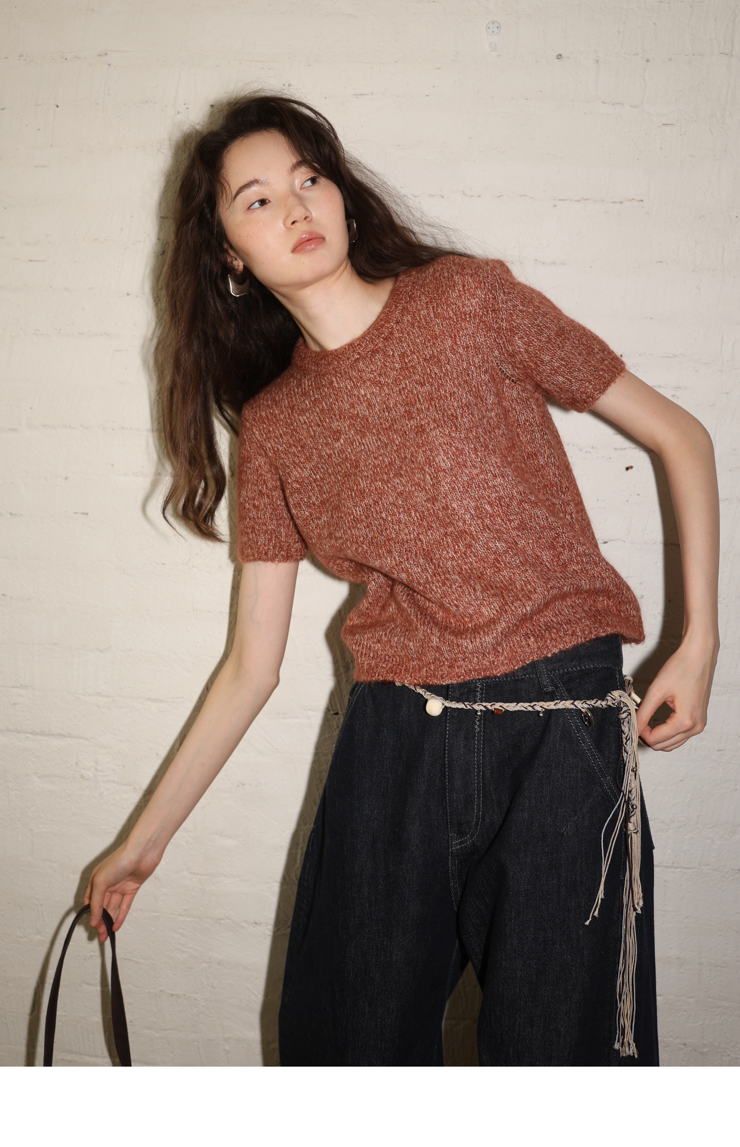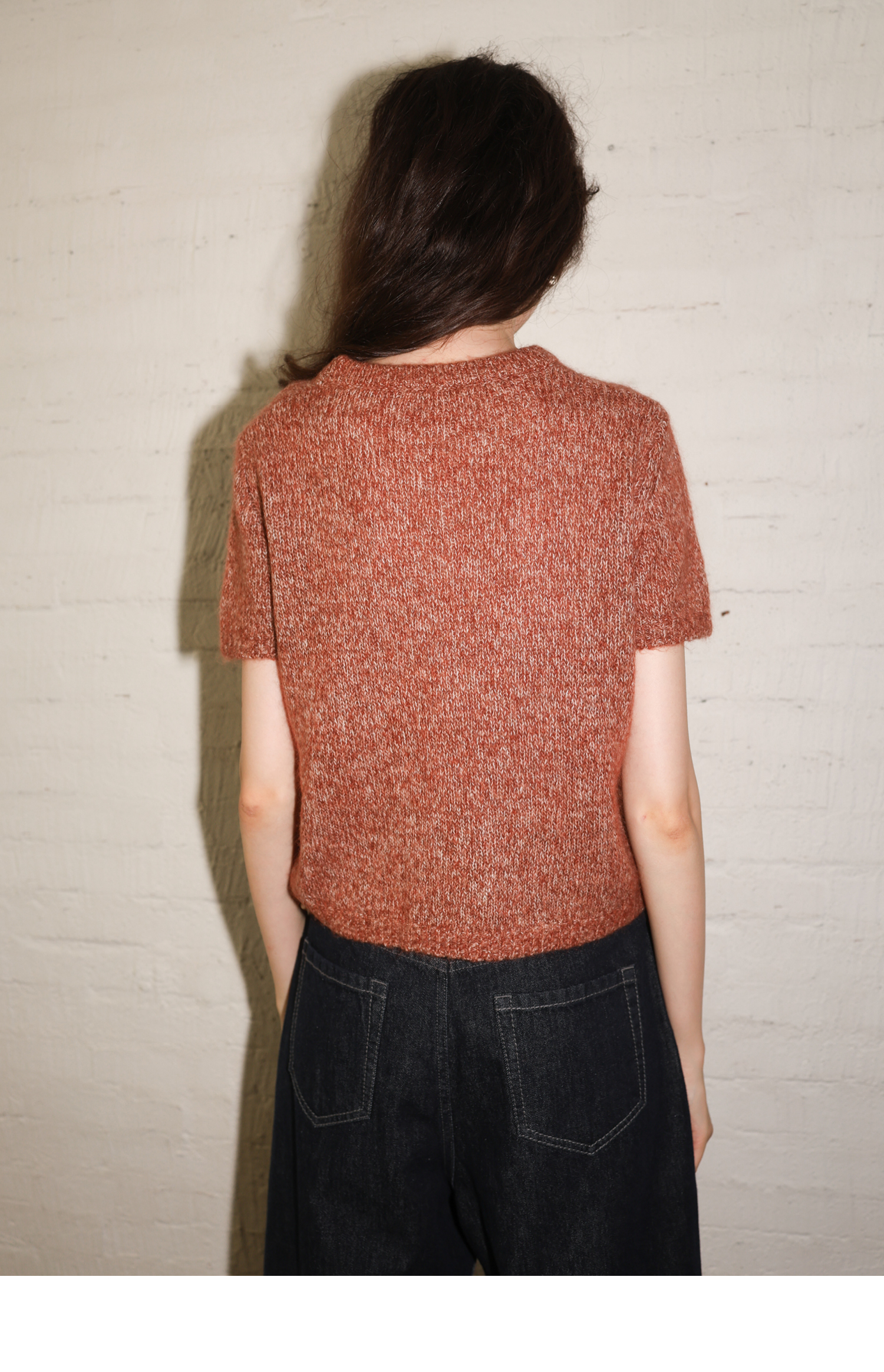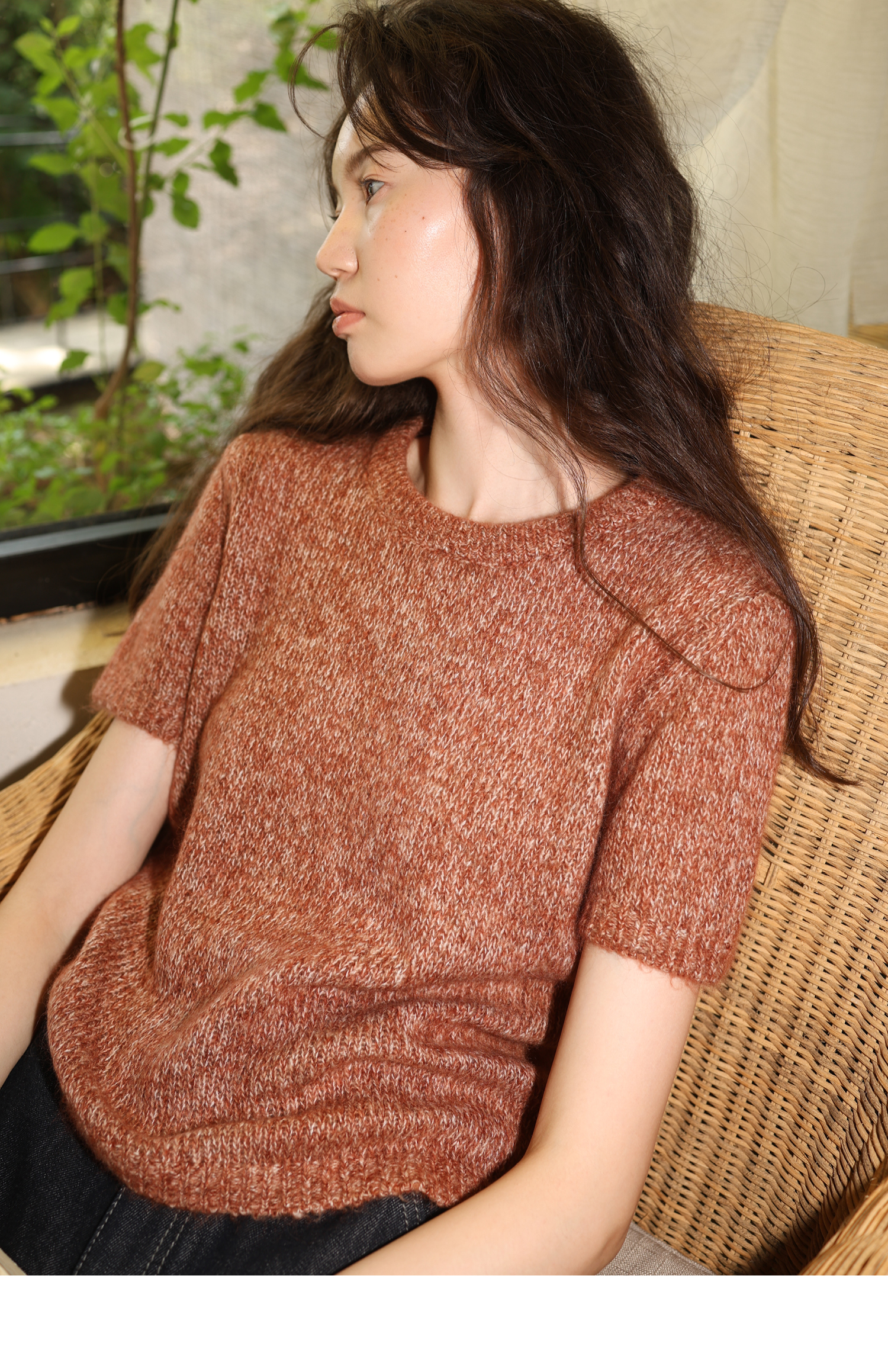 素舶 山羊绒桑蚕丝奢柔体感混色毛绒圆领短袖针织衫毛衣