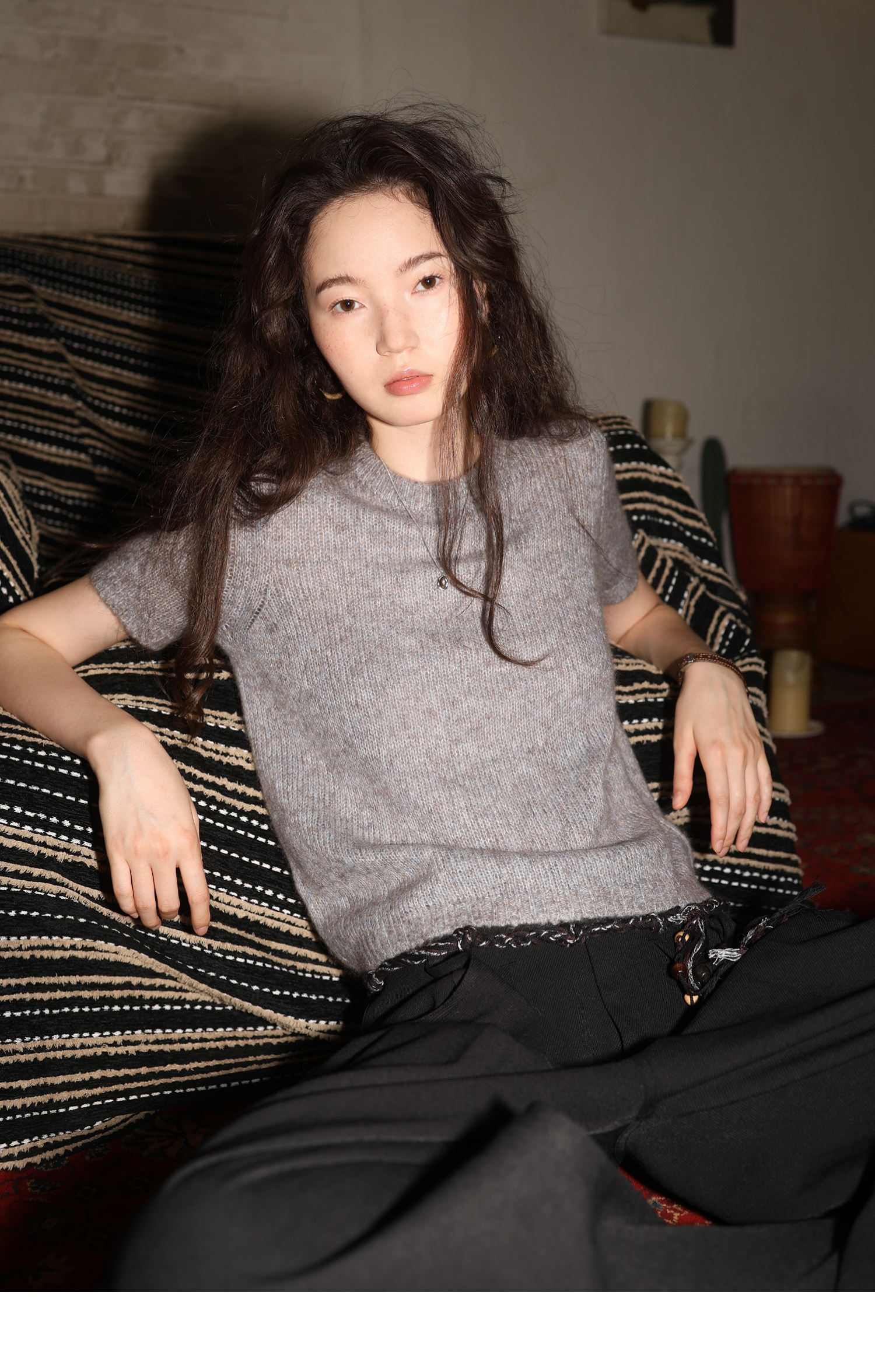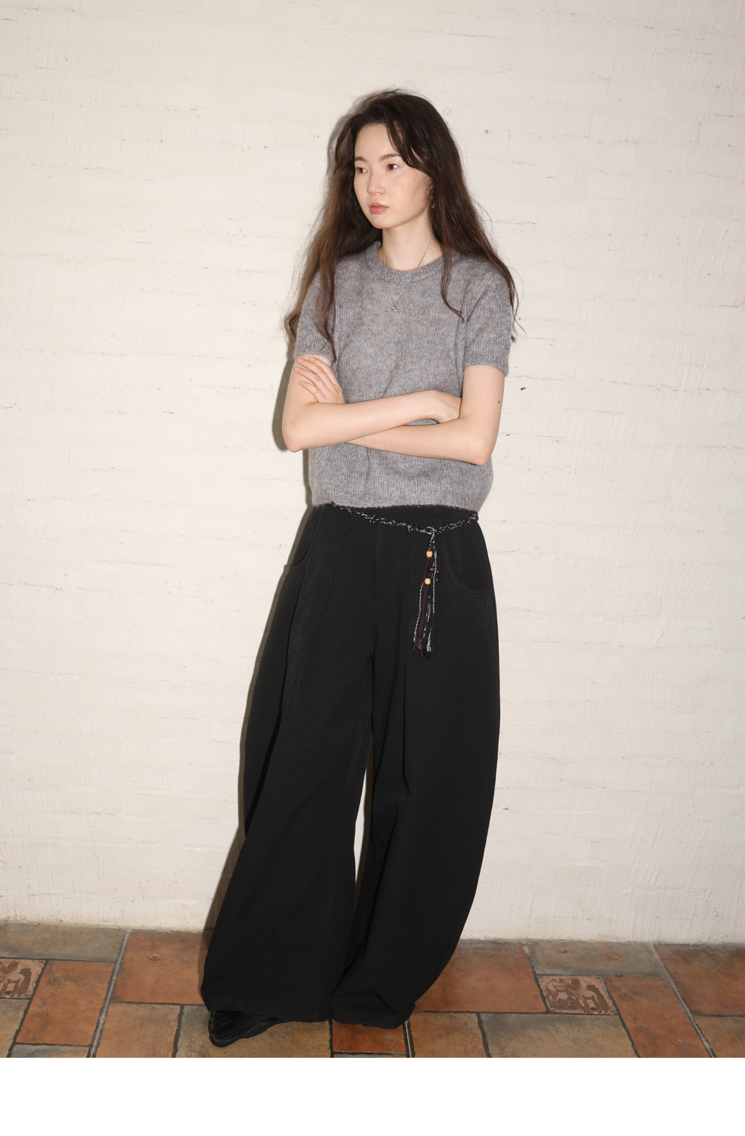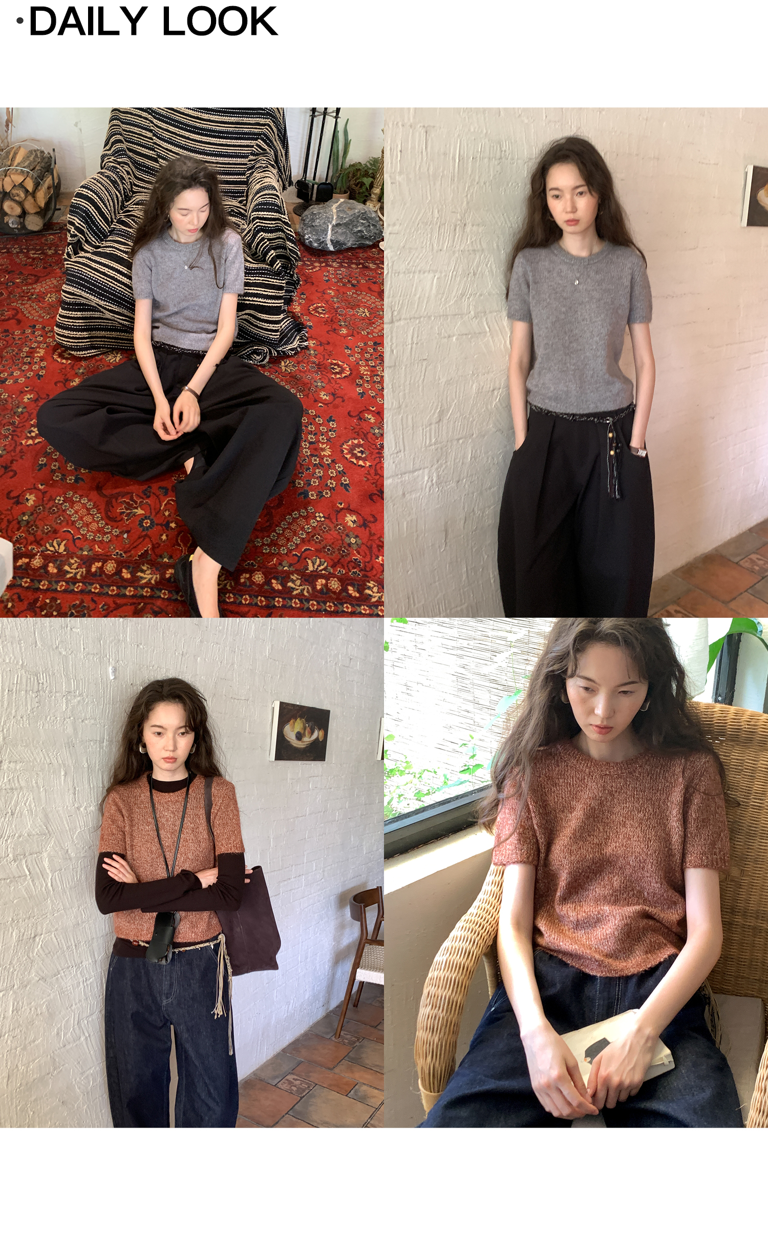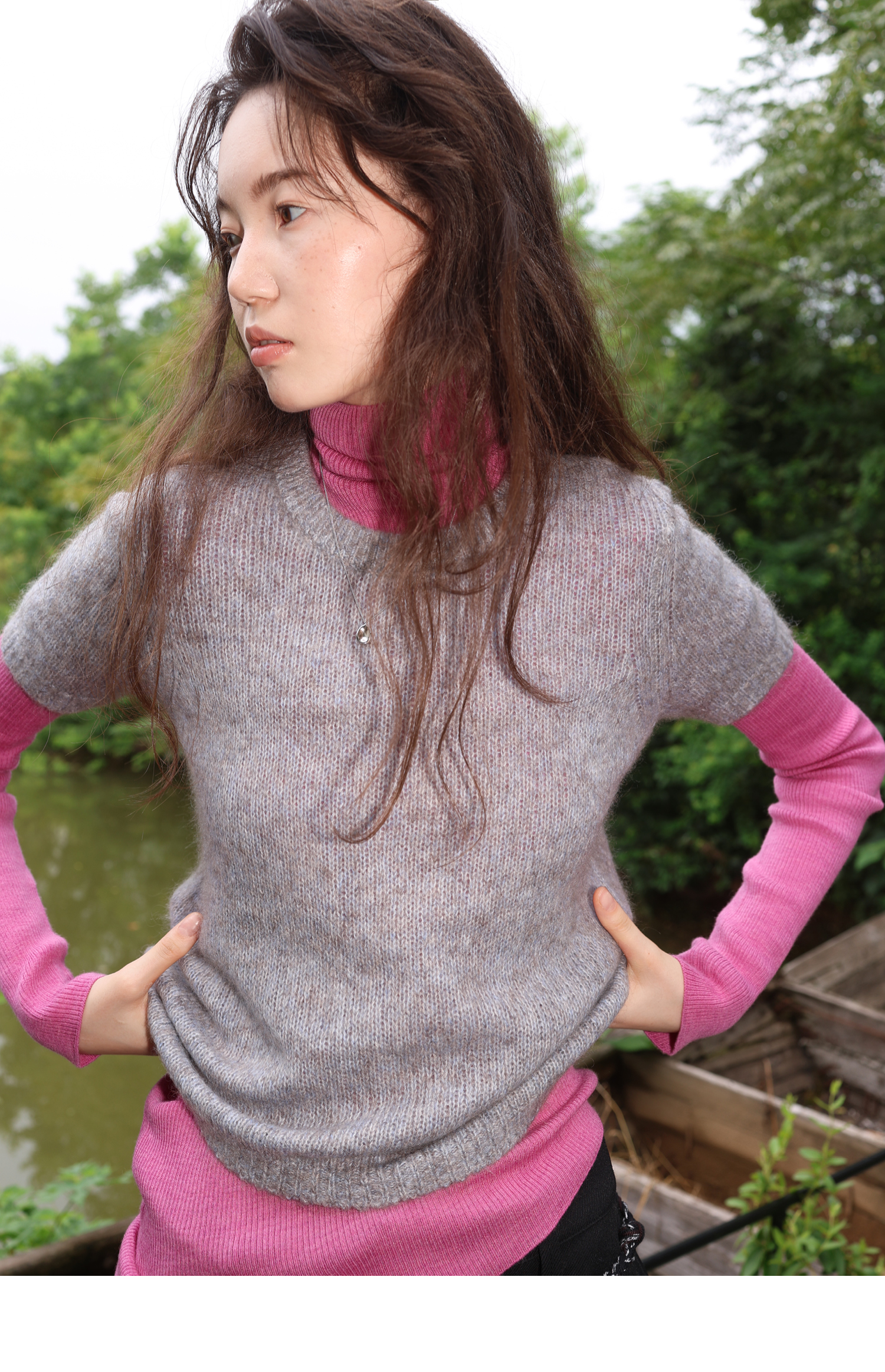 素舶 山羊绒桑蚕丝奢柔体感混色毛绒圆领短袖针织衫毛衣