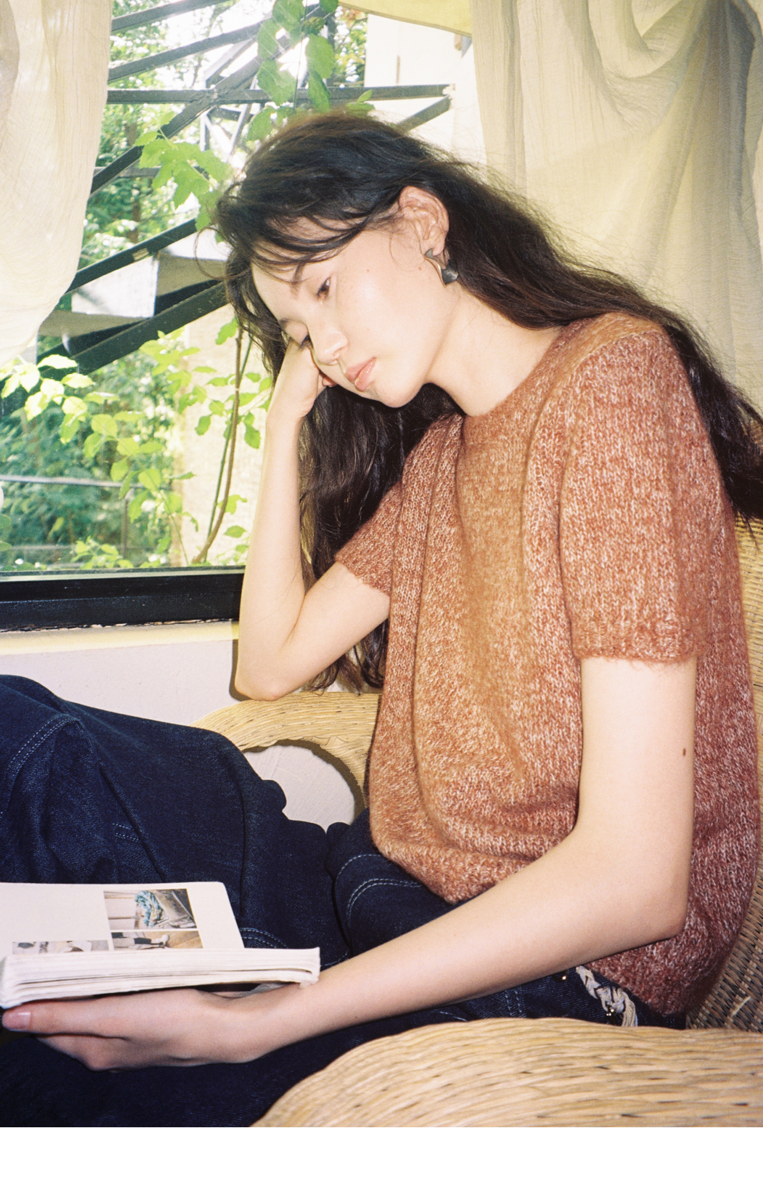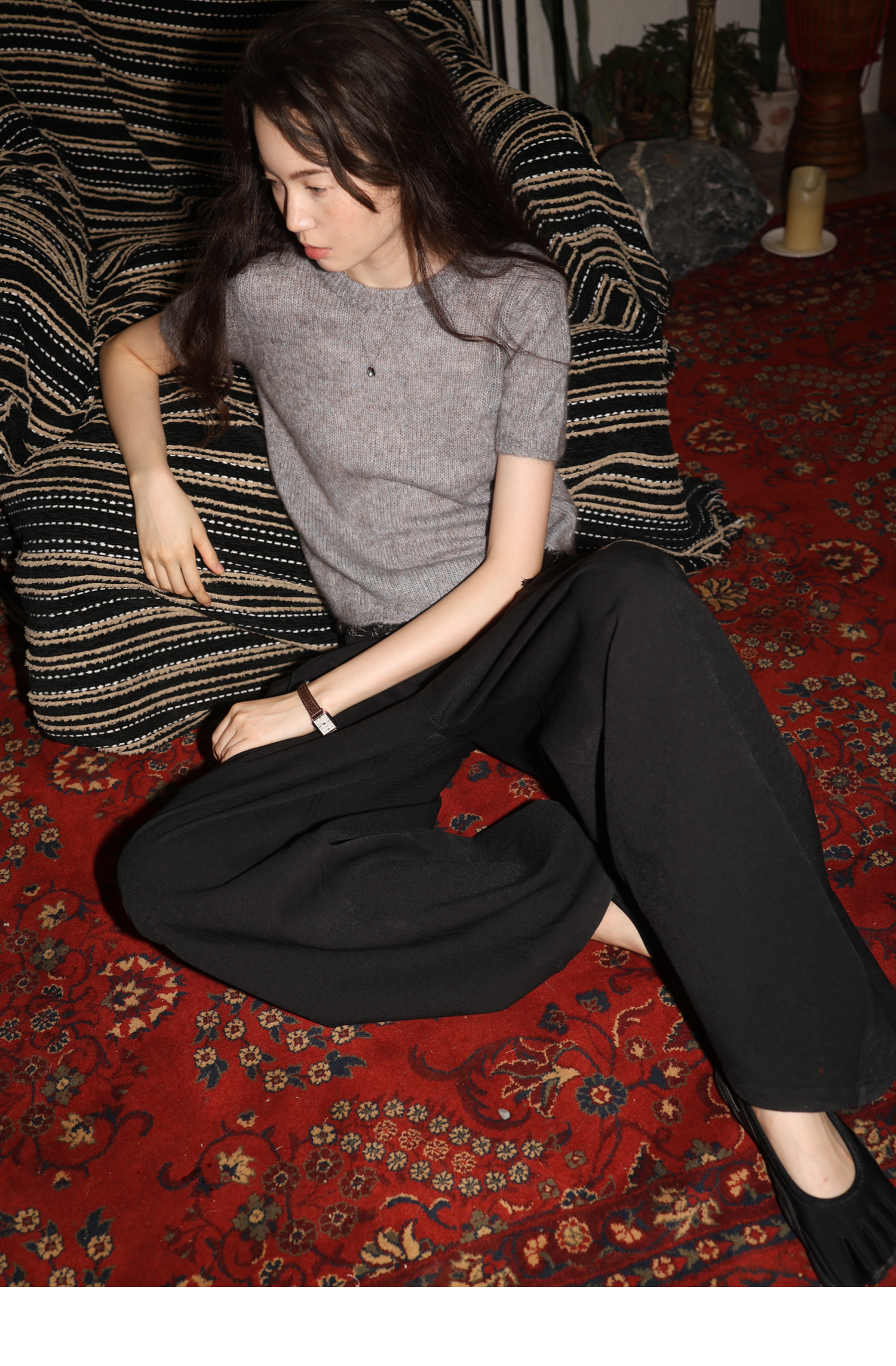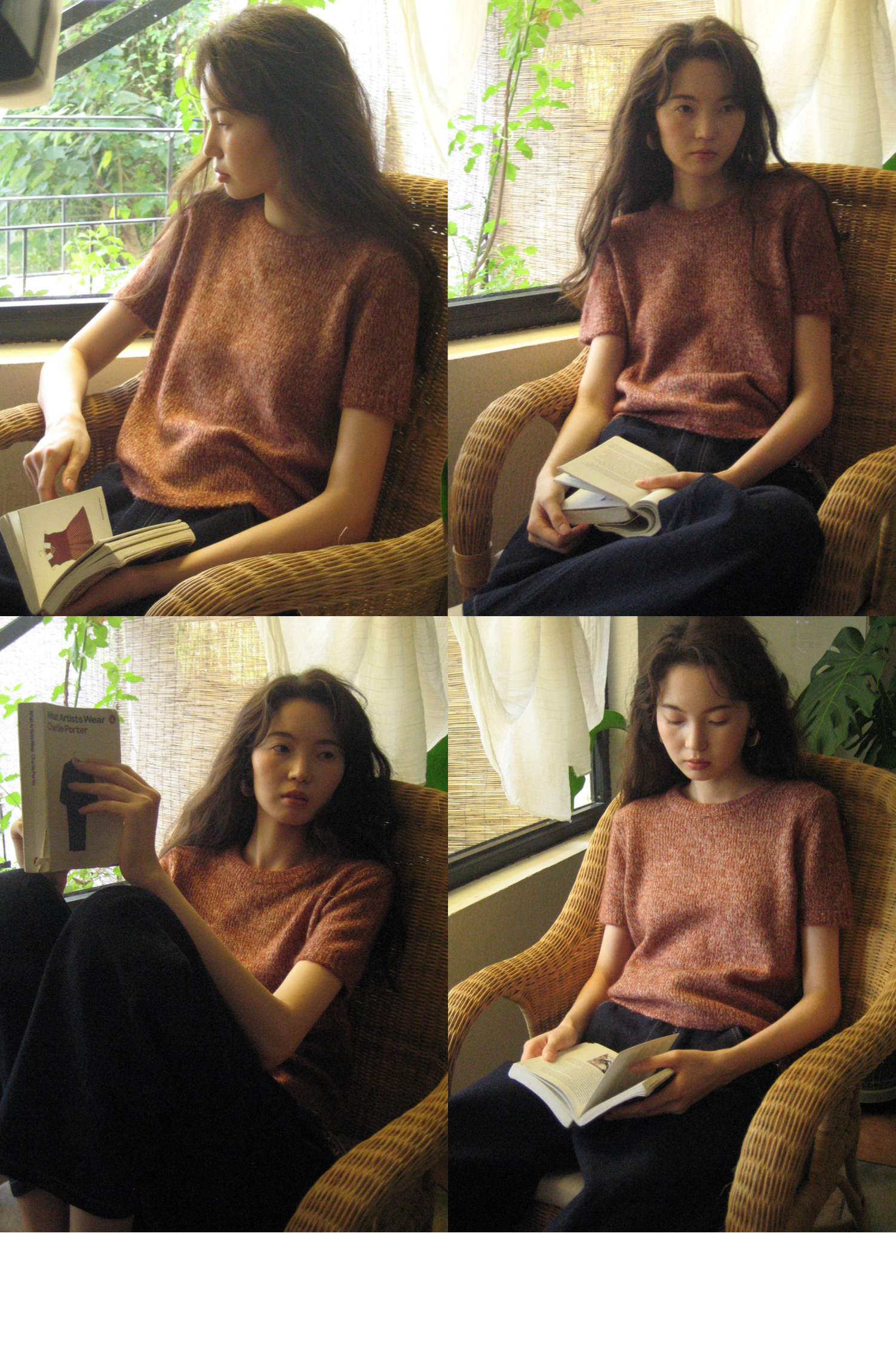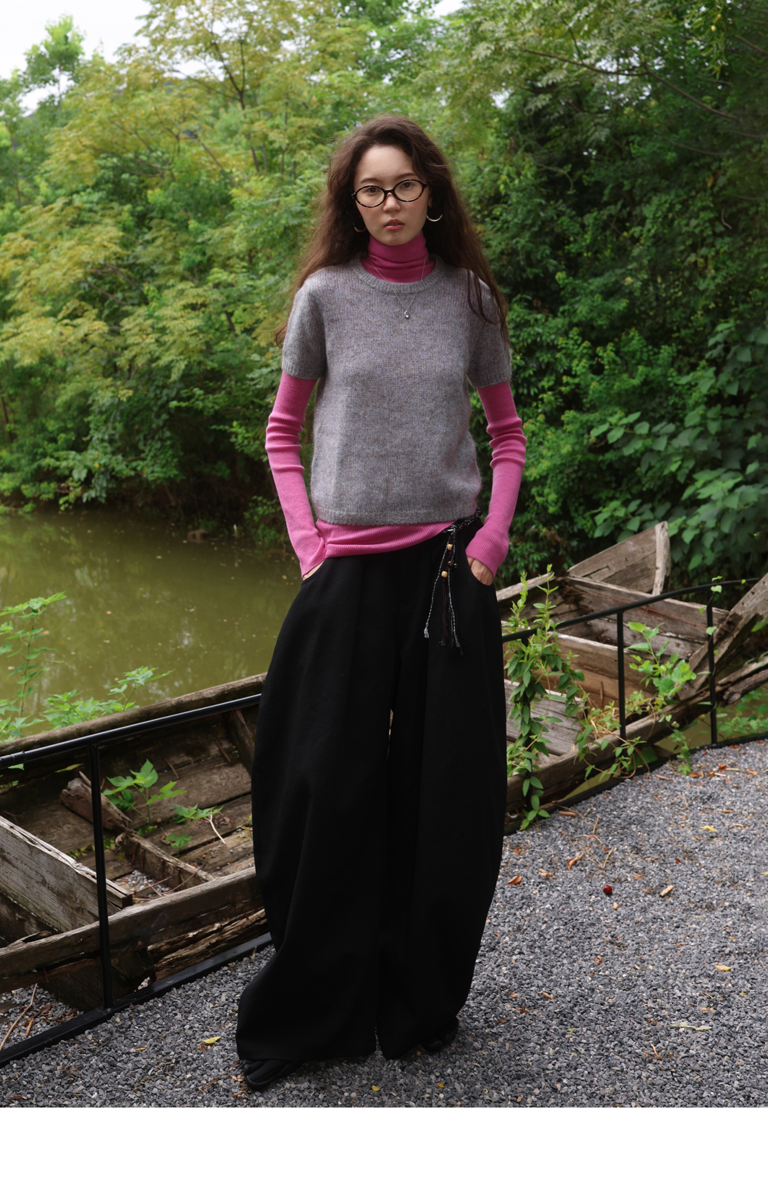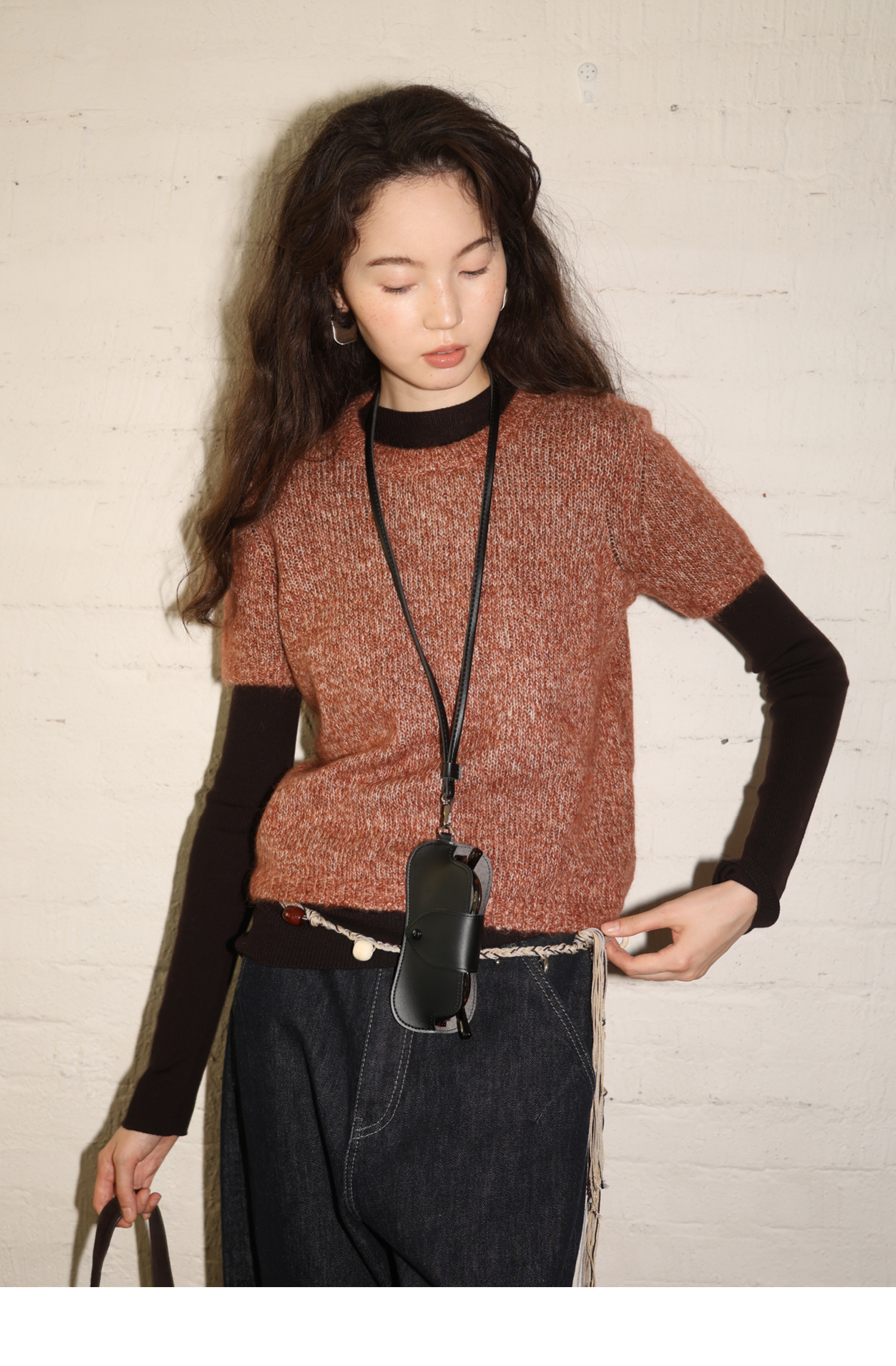 素舶 山羊绒桑蚕丝奢柔体感混色毛绒圆领短袖针织衫毛衣