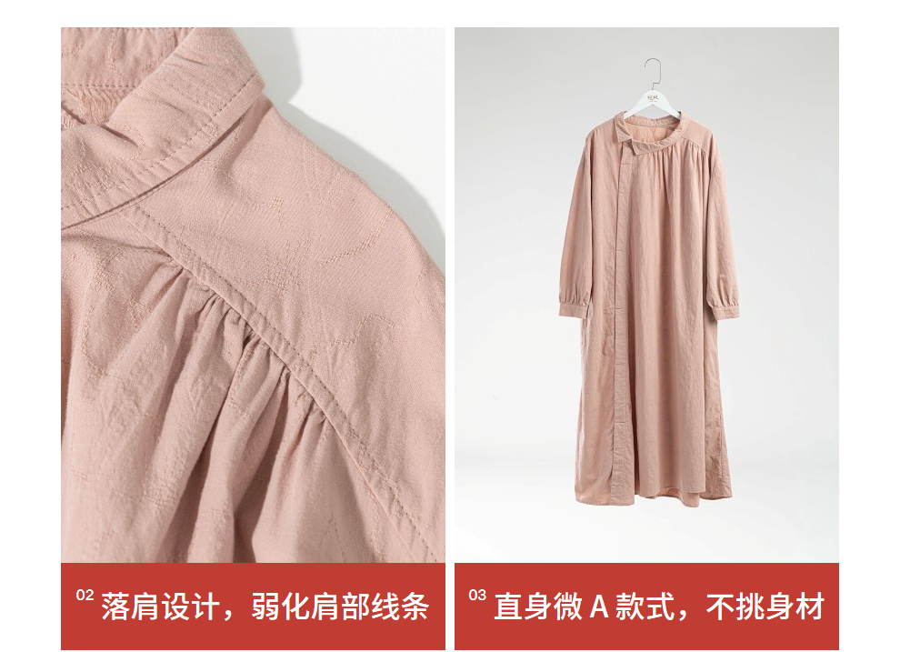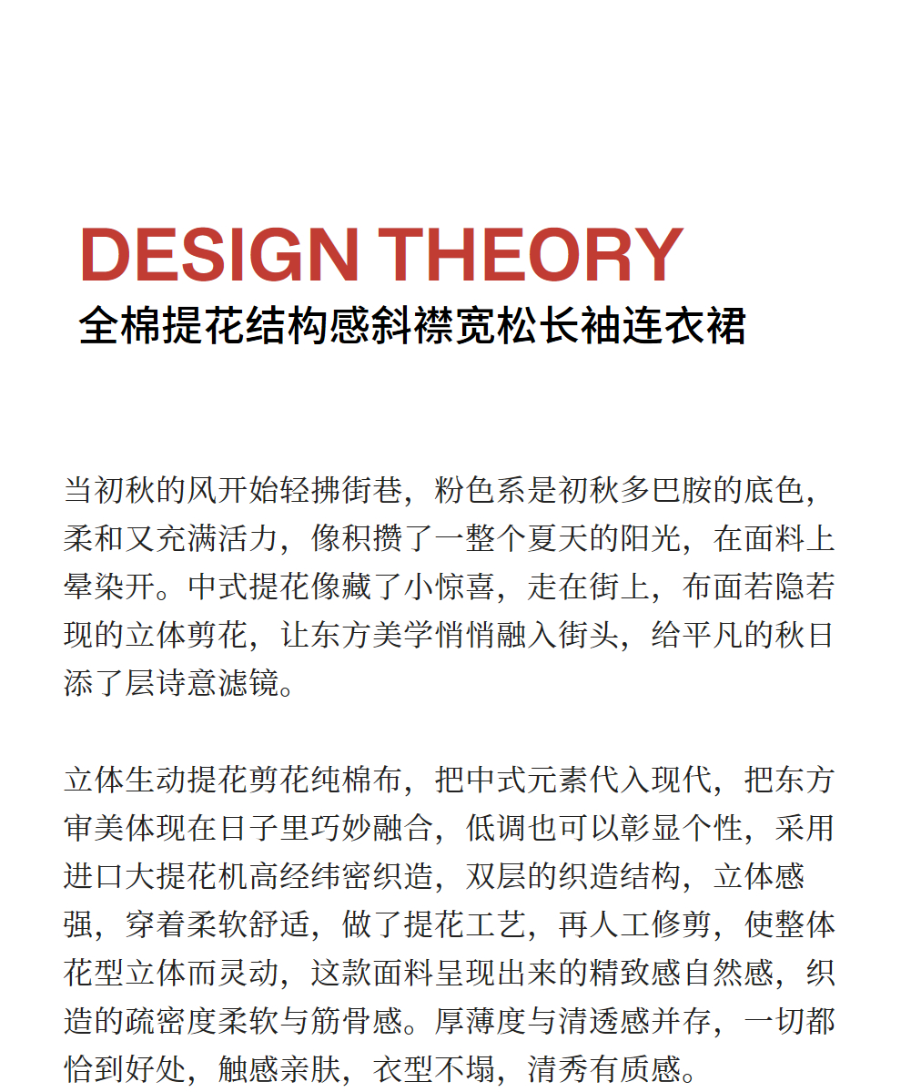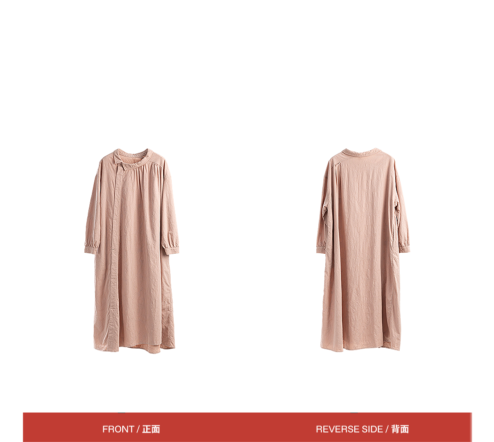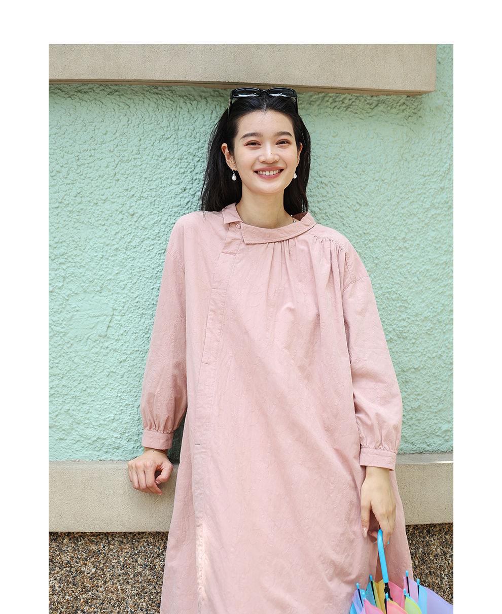 绽放旅行女装128朵/全棉提花结构感斜襟宽松文艺长袖气质连衣裙女