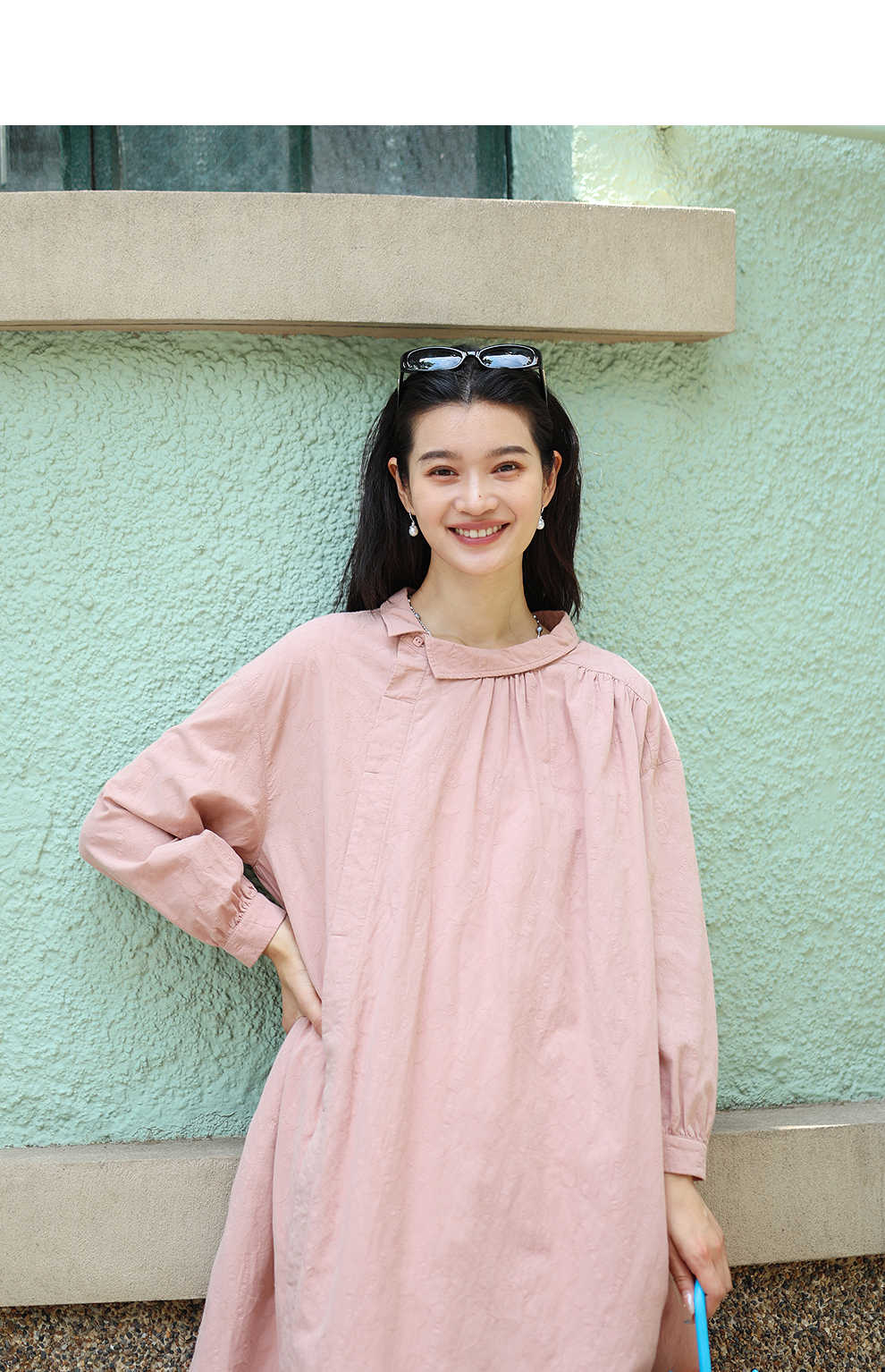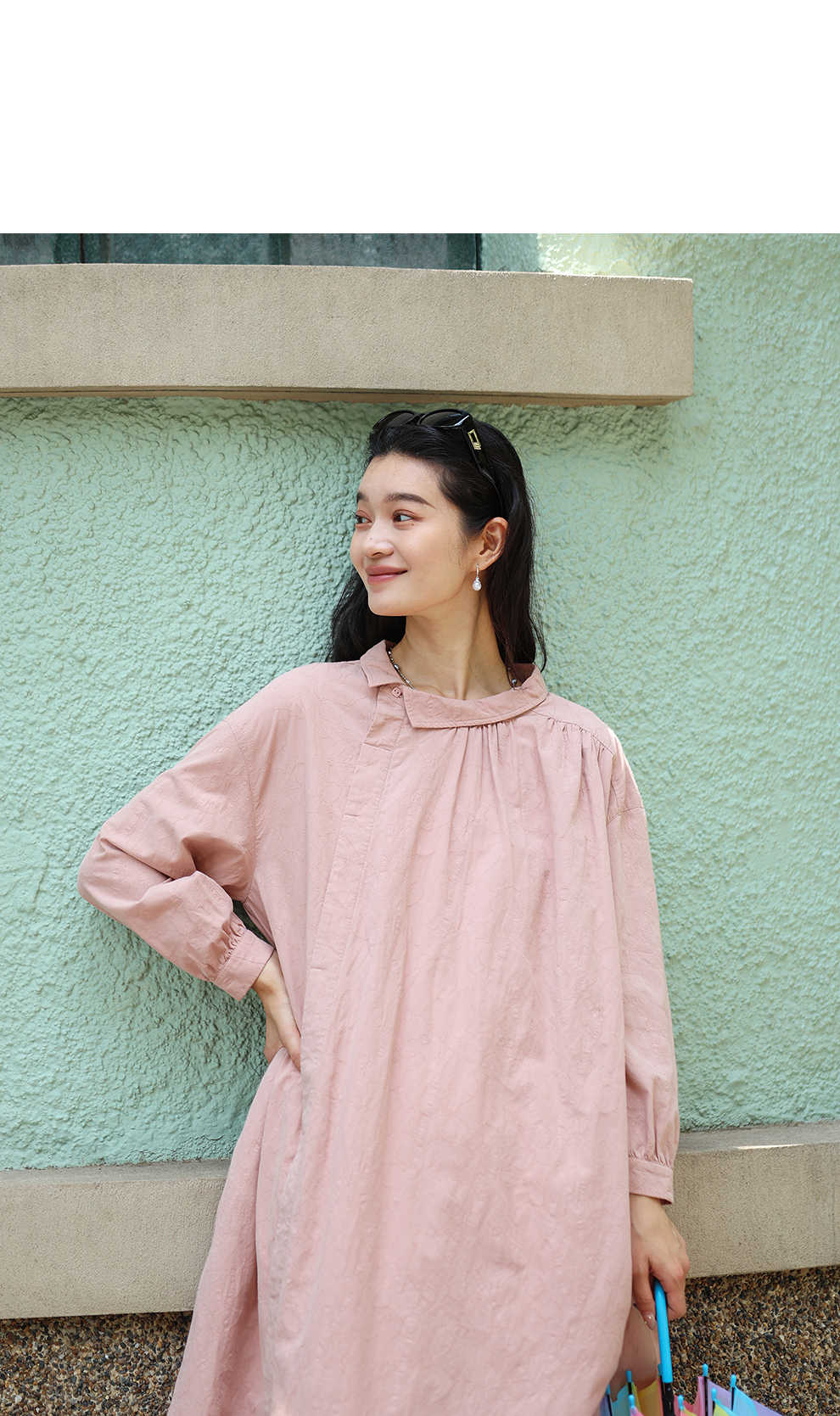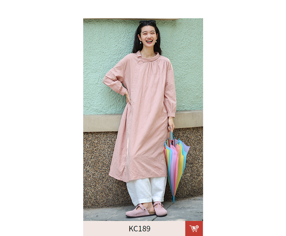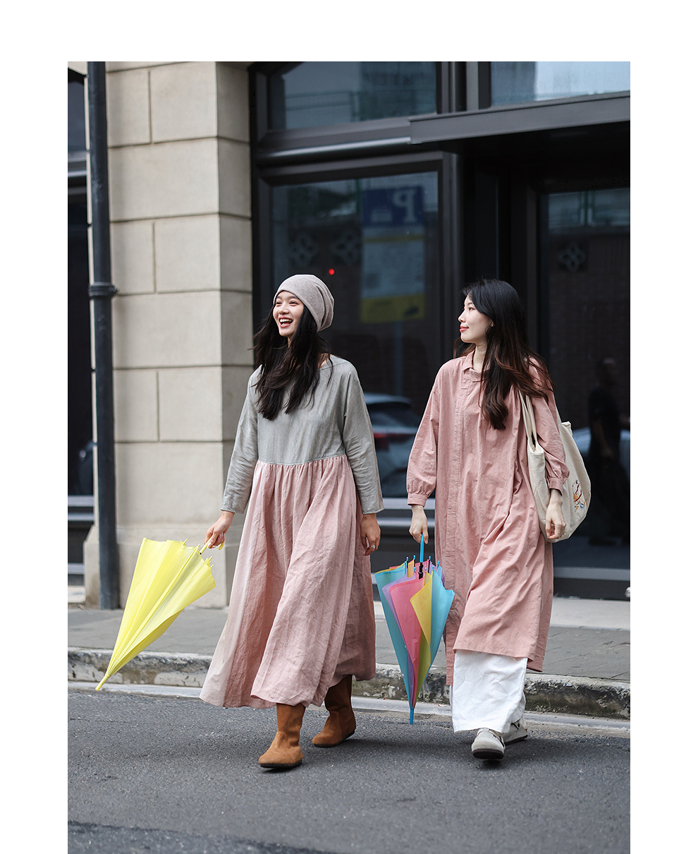 绽放旅行女装128朵/全棉提花结构感斜襟宽松文艺长袖气质连衣裙女