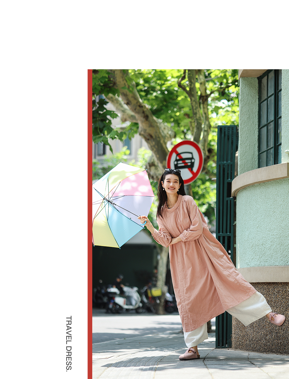 以天然亚麻为载体,融合热烈色彩与自在剪裁为身在城市、心怀远方的女性提供兼具美学与舒适的旅行着装