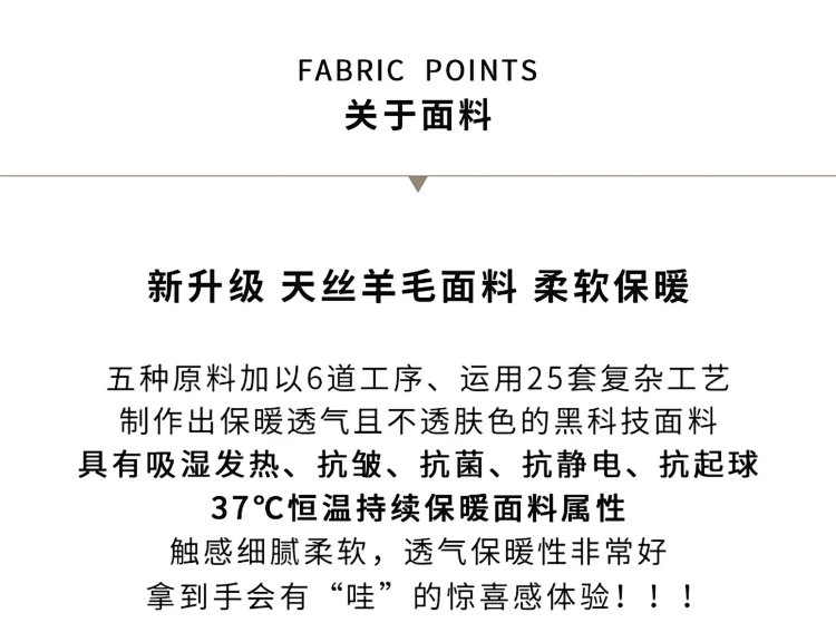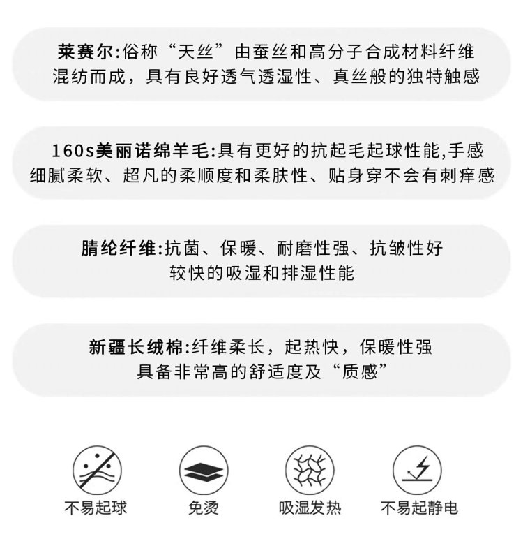 【材质】:棉36.9 莱赛尔18.2 晴纶25.7 绵羊毛12.2 氨纶7