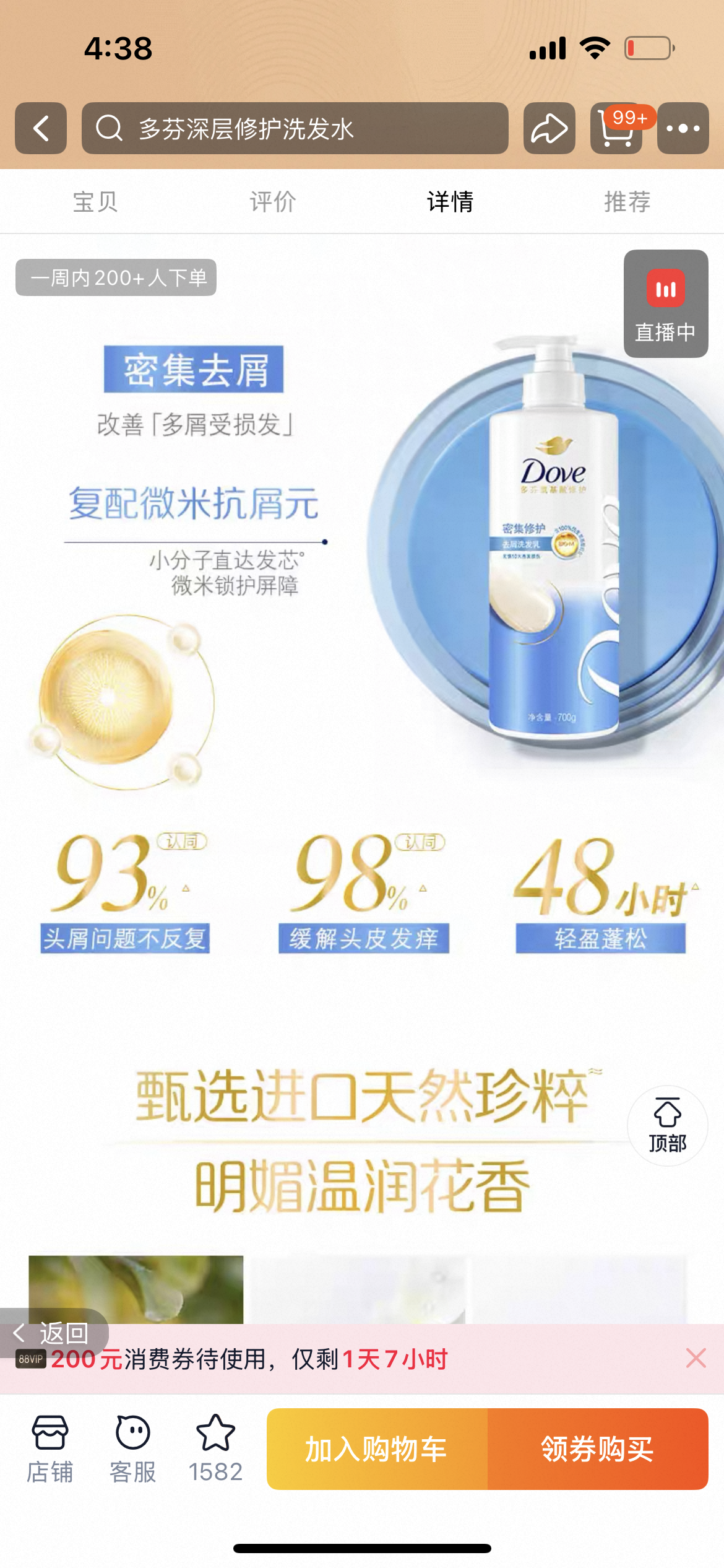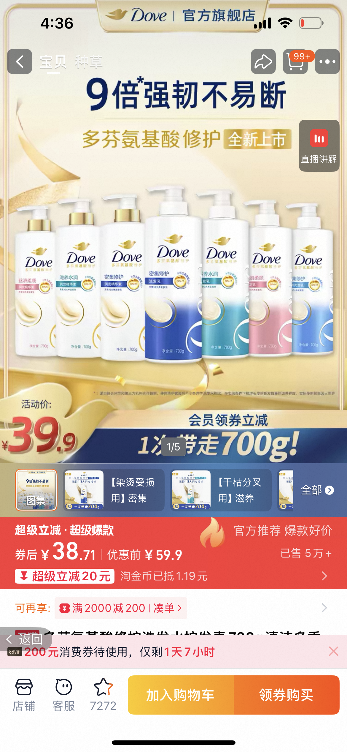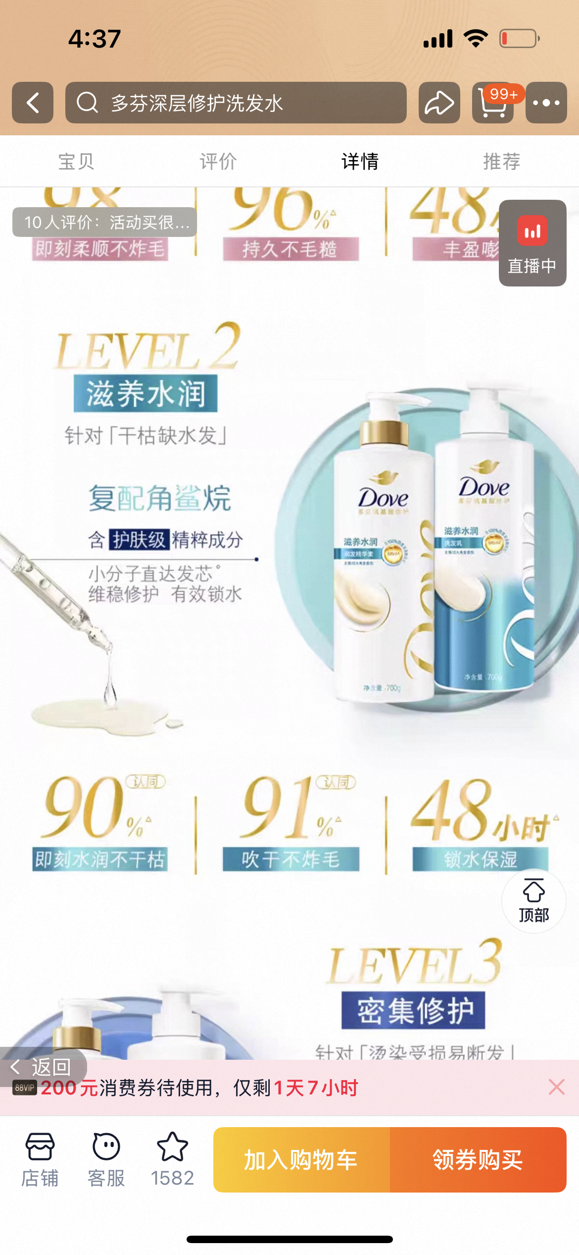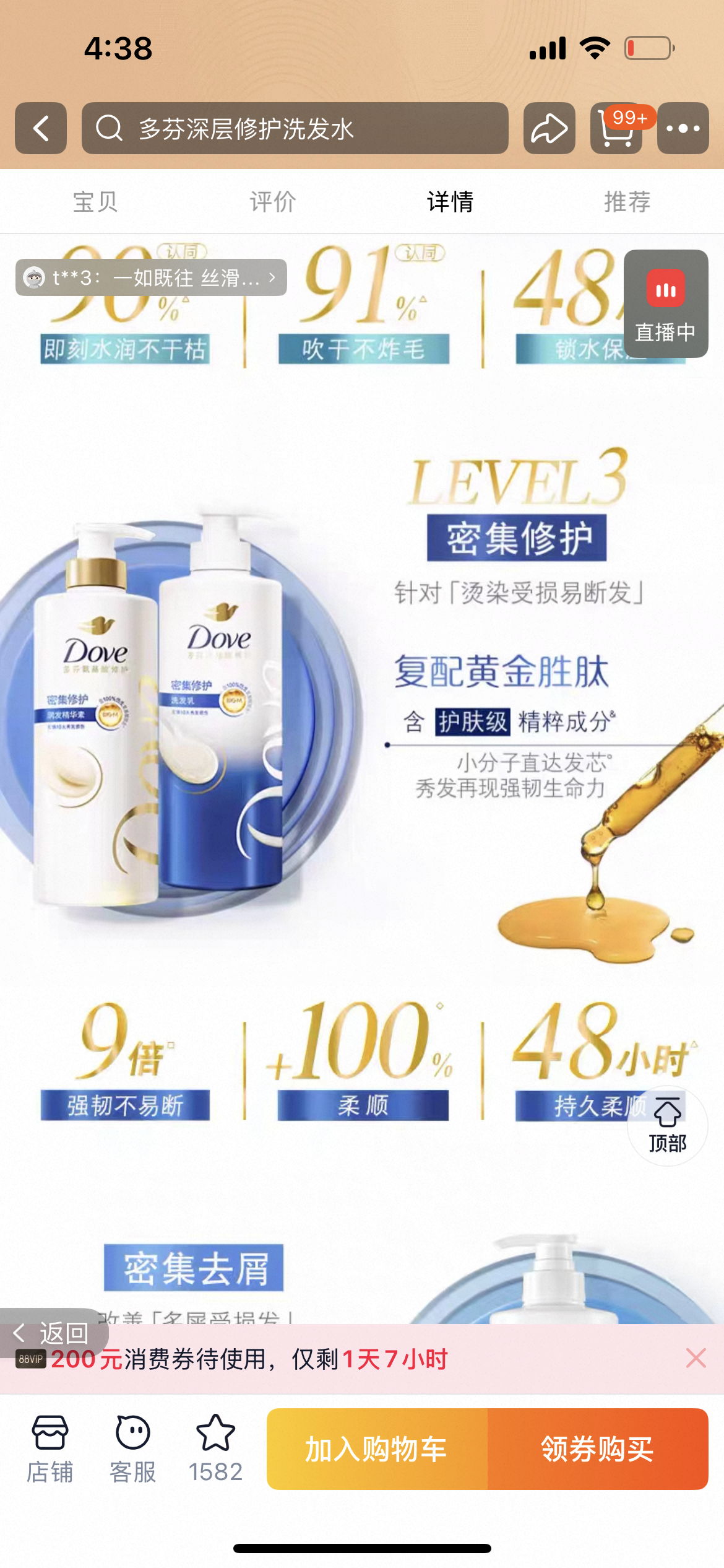 .正品!代理商公司正规开票! 联合利华旗下 多芬氨基酸修护密集滋养洗发水护发素