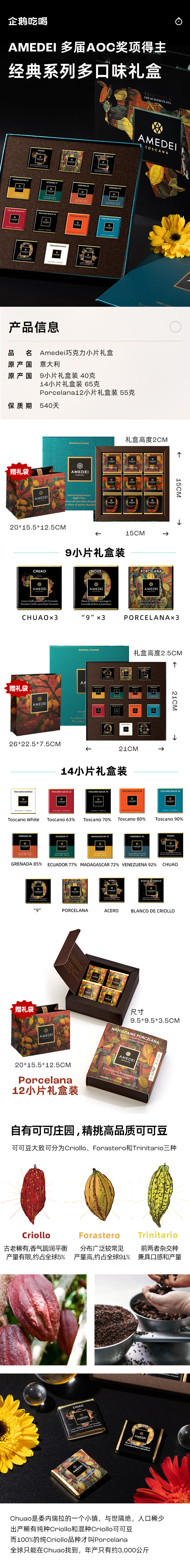 企鹅市集|意大利amedei 9片/12片/14片装巧克力礼盒 金奖黑巧克力 精品礼盒