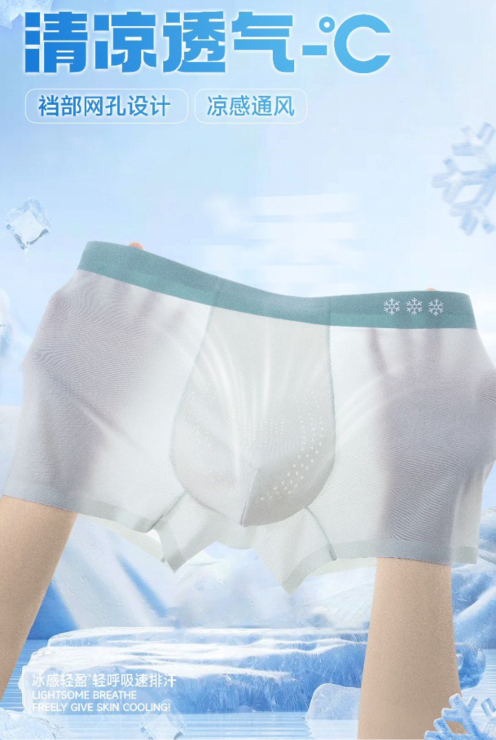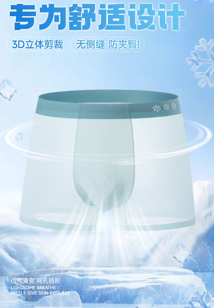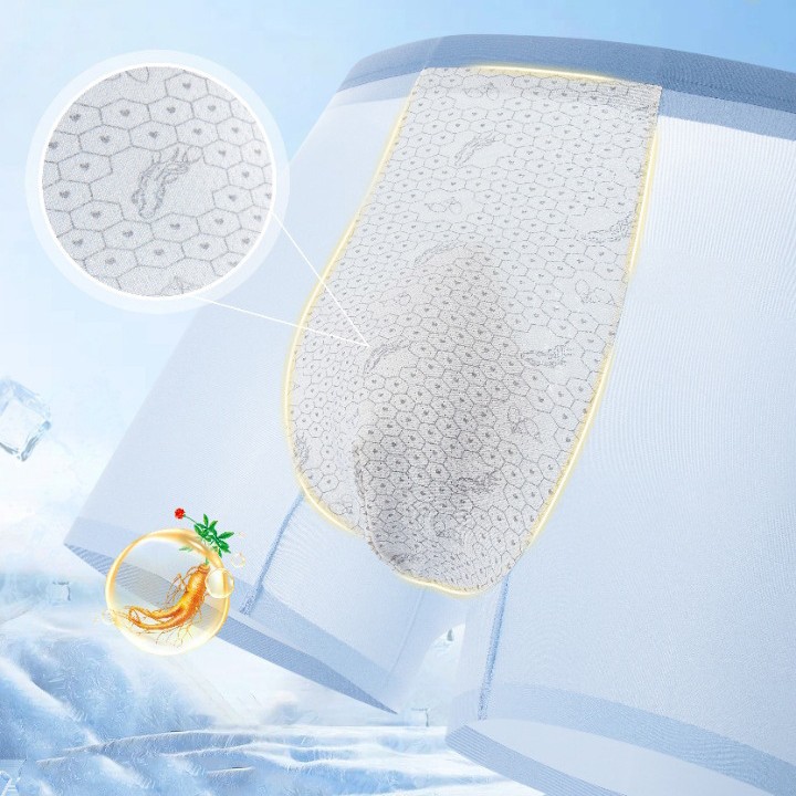 【裆下清风❗薄款人参枸杞内裤】3D立体剪裁无侧缝防夹臀,薄款人参枸杞内裆部,凉感通风透气不闷,网孔冰丝男士内裤男生四角无痕透气平角裤QQ