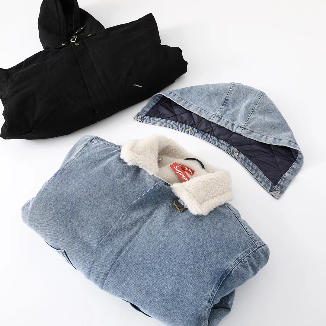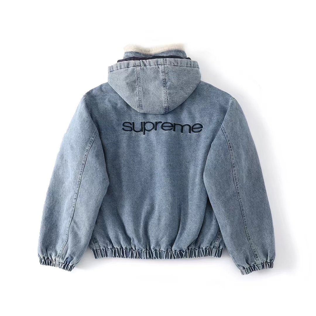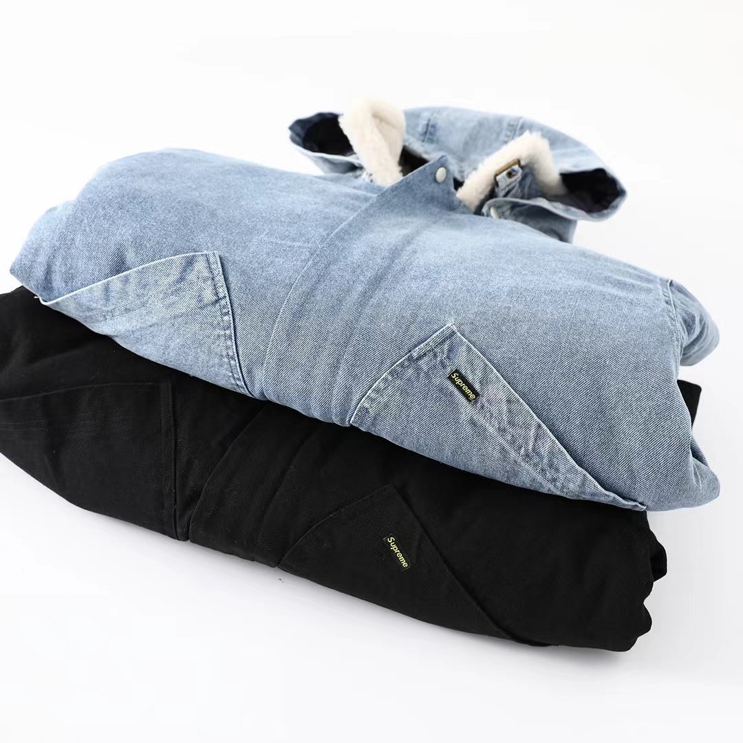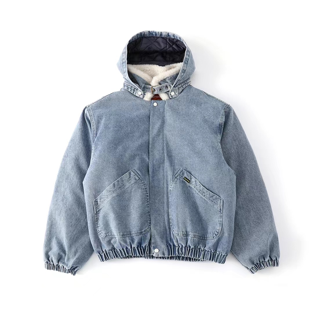 牛仔羊羔毛 夹克 外套 男女同款 醉帅牛仔棉服 帽子可脱卸 里面羊羔毛订制染色 毛体颜色一致 克重高达1000g 整件衣服非常厚实保暖 保暖程度不亚于羽绒服 秋冬一件完全足够 面部牛仔面料先做水洗 后跟羊羔毛拼接 确保内里毛毛不会变色染色 保持原版效果 宽松版型