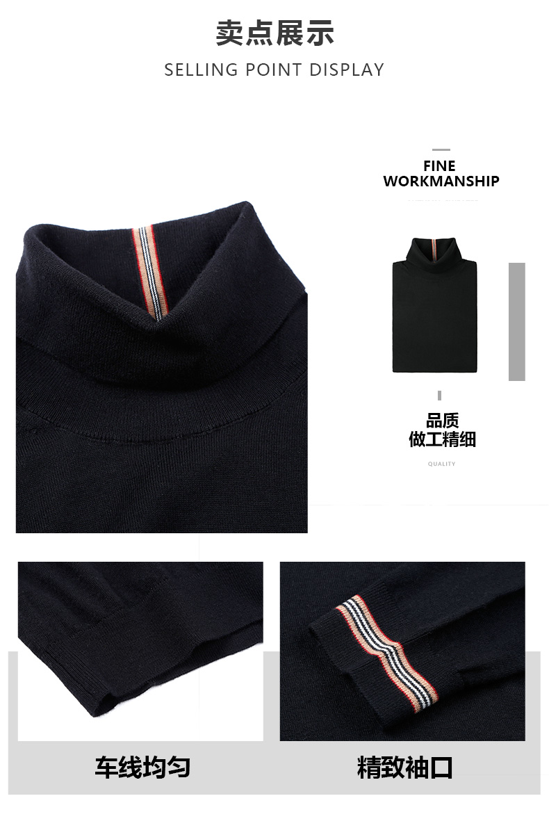 【100%绵羊毛】男士羊毛衫秋冬款打底中青年半高领翻领时尚羊毛衣