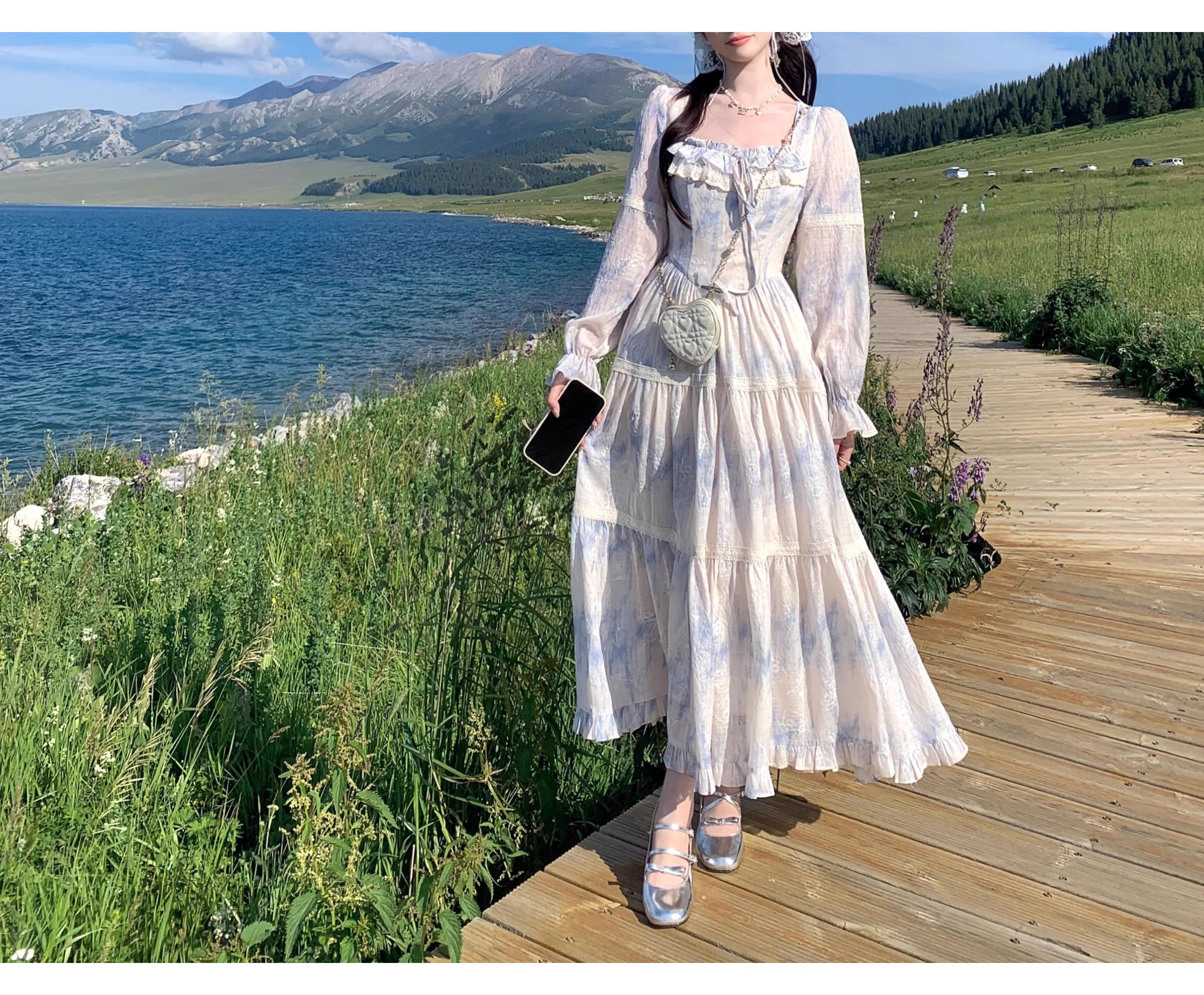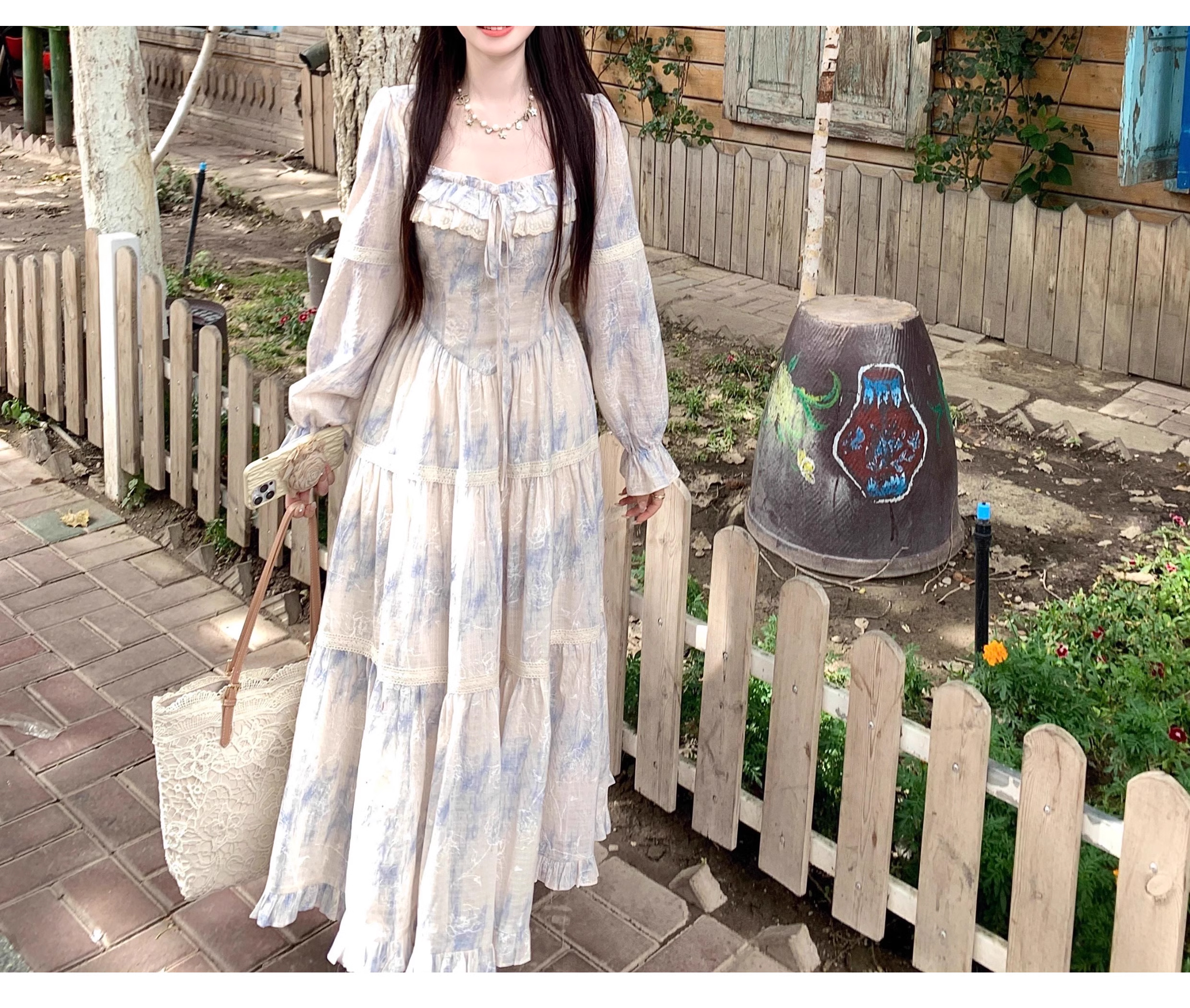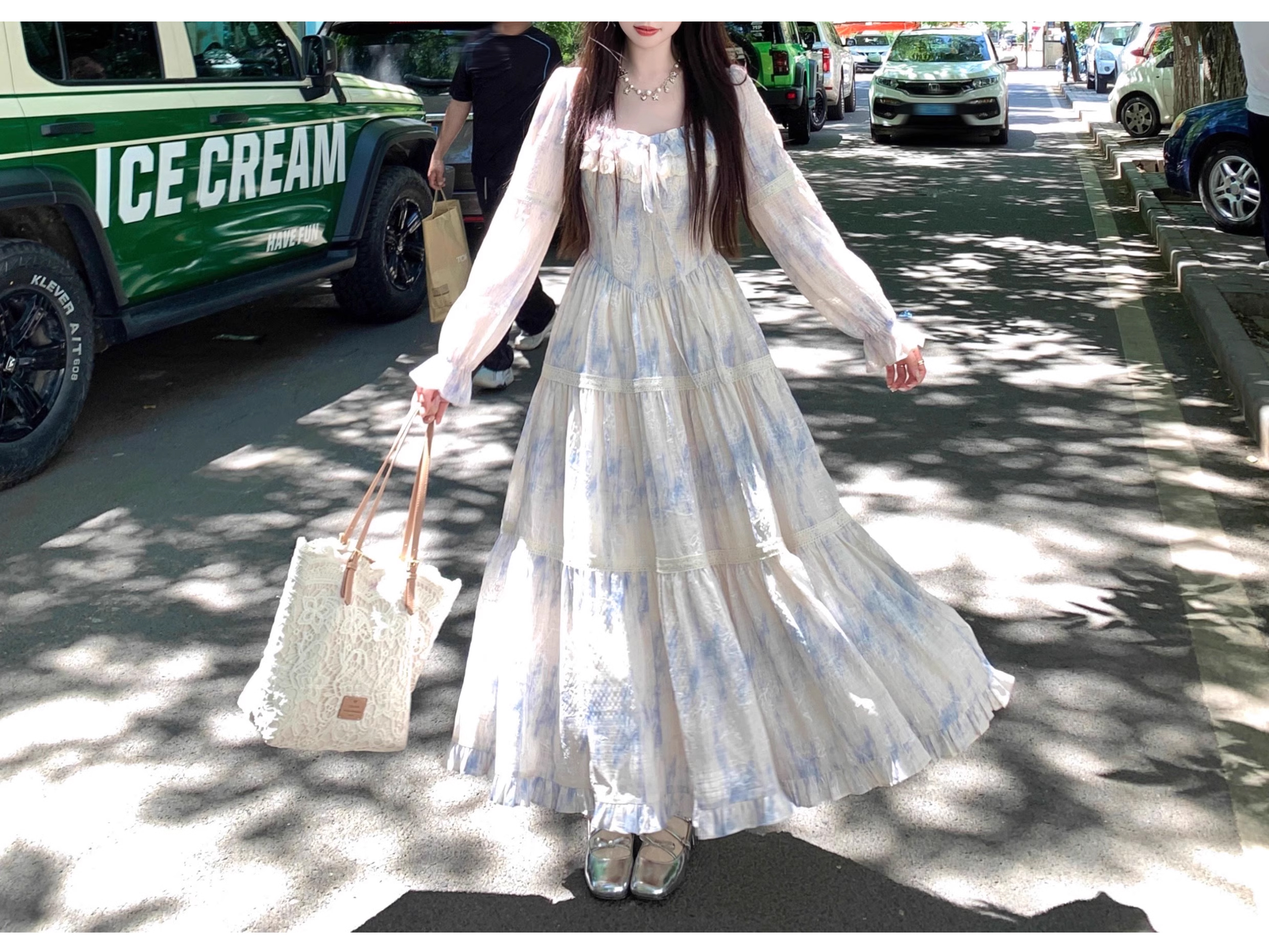 裁缝学苑AS371法式方领复古长袖蛋糕裙连衣裙纸样女装大摆长裙样板