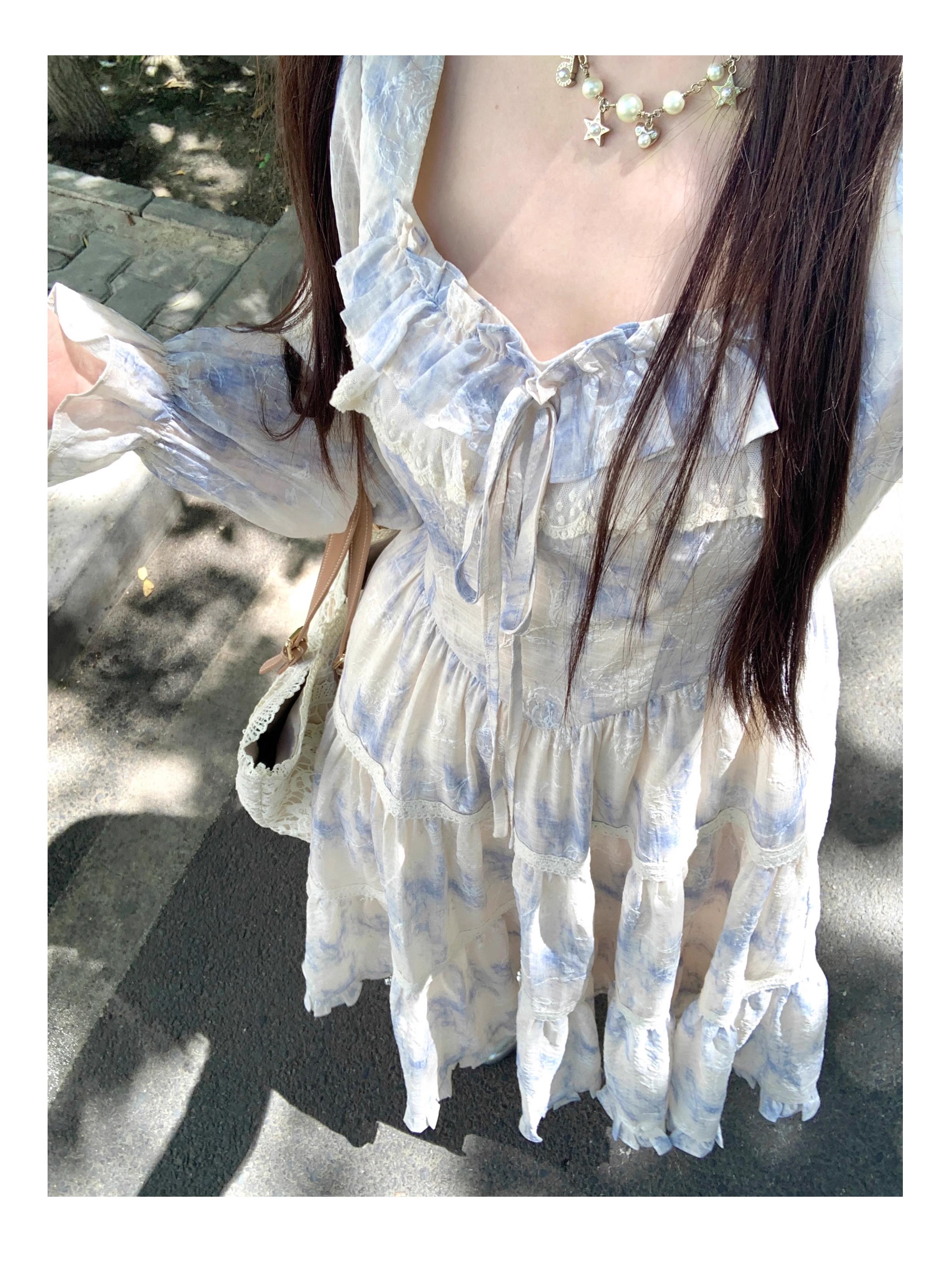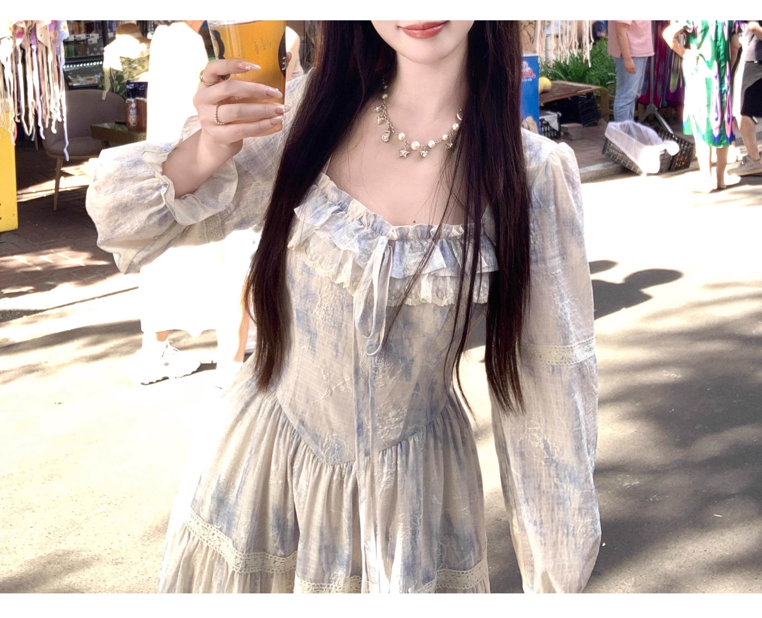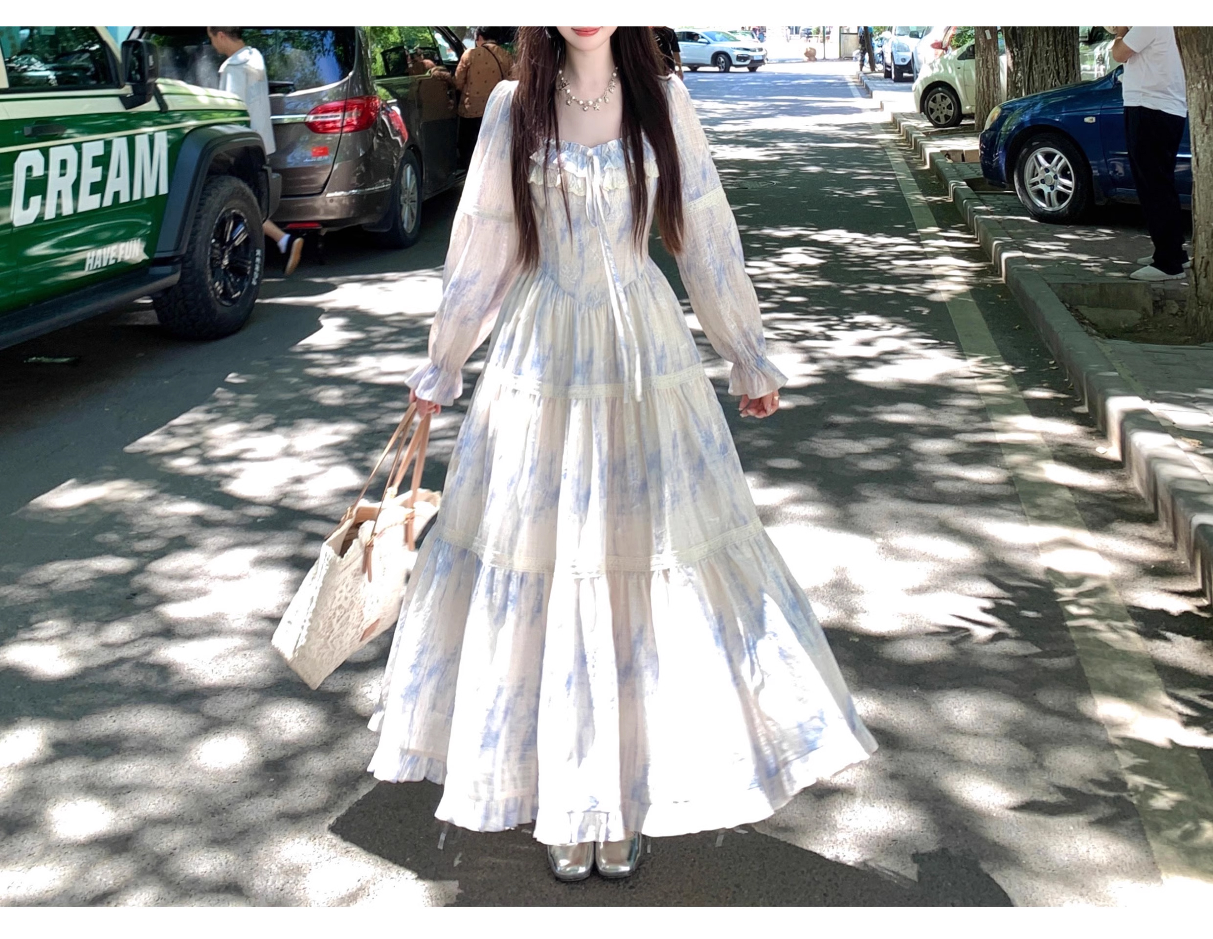 裁缝学苑AS371法式方领复古长袖蛋糕裙连衣裙纸样女装大摆长裙样板