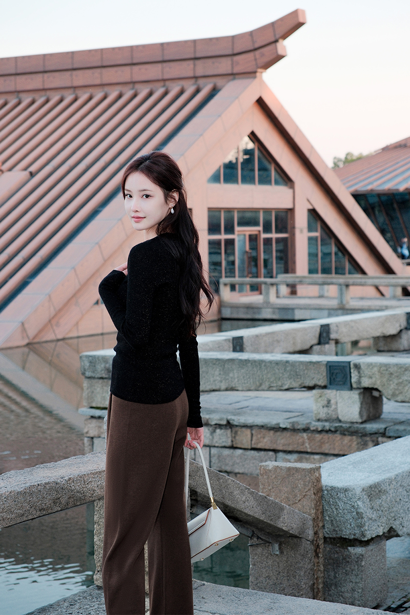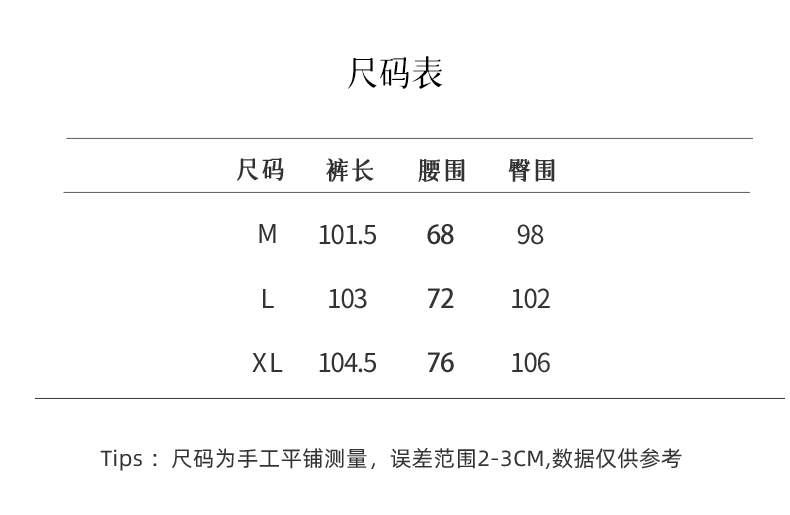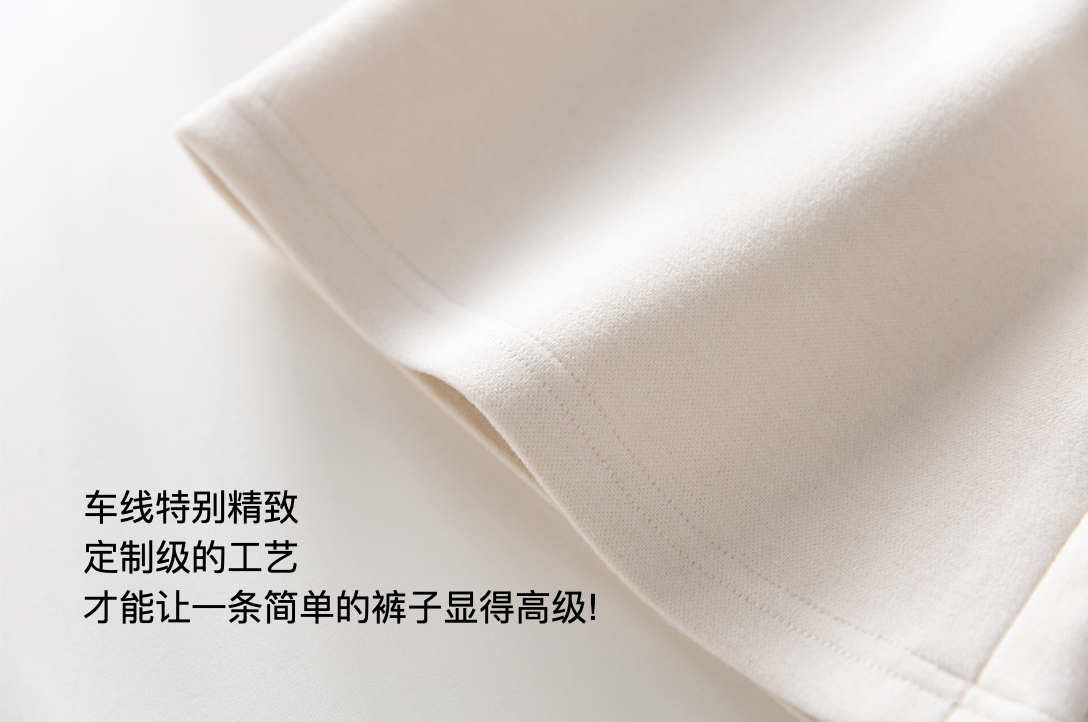 2.脚口设计:舒适的脚口设计面料柔软舒适,不挑腿型。重心转至裤管,弧度香蕉版剪裁,空阔的裤管没有束缚。却将腿型墙势收敛,无需顾虑就能自成一派。