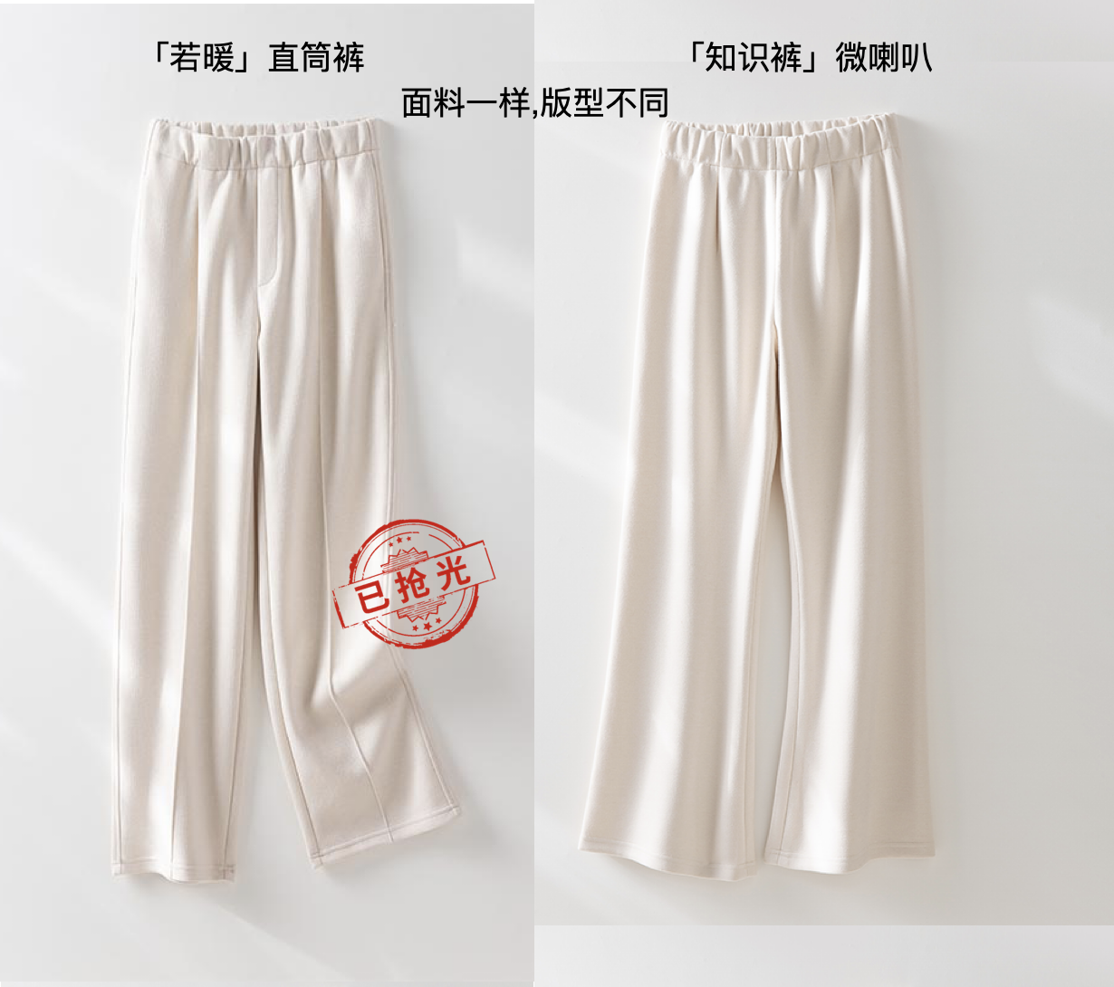 「知识裤」跟「若暖」的面料是一样的,是#已经做好的现货!!!只是版型略微不同.