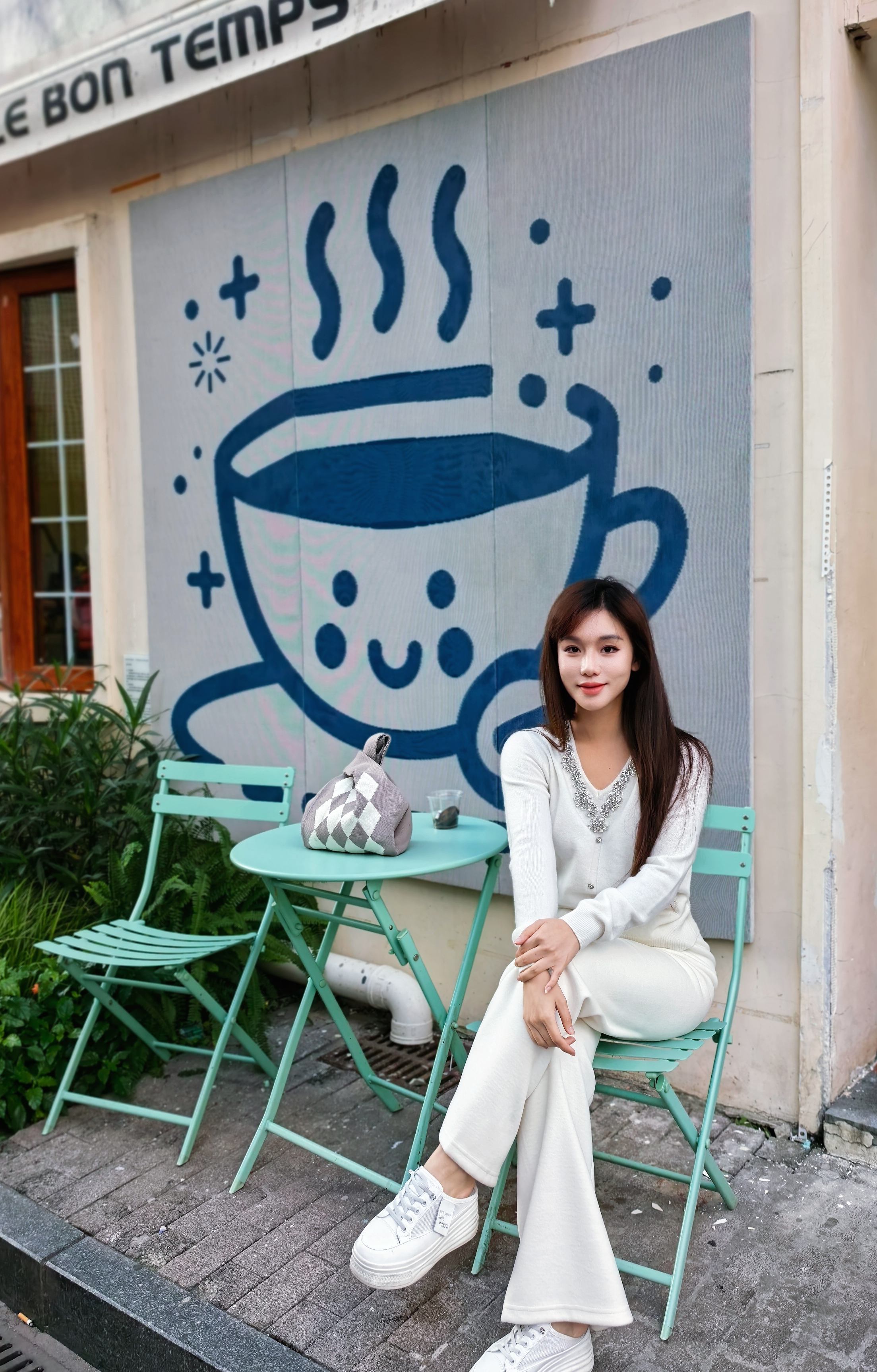 3.整体设计:版型宽松阔脚,从视觉上拉长腿部,面料常规不薄的质地,版型CHAO正,兼顾四季的穿衣氛围。