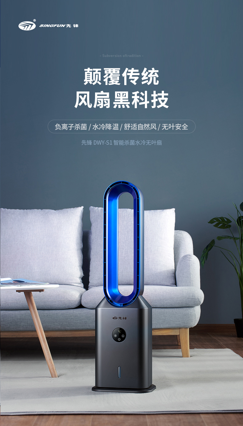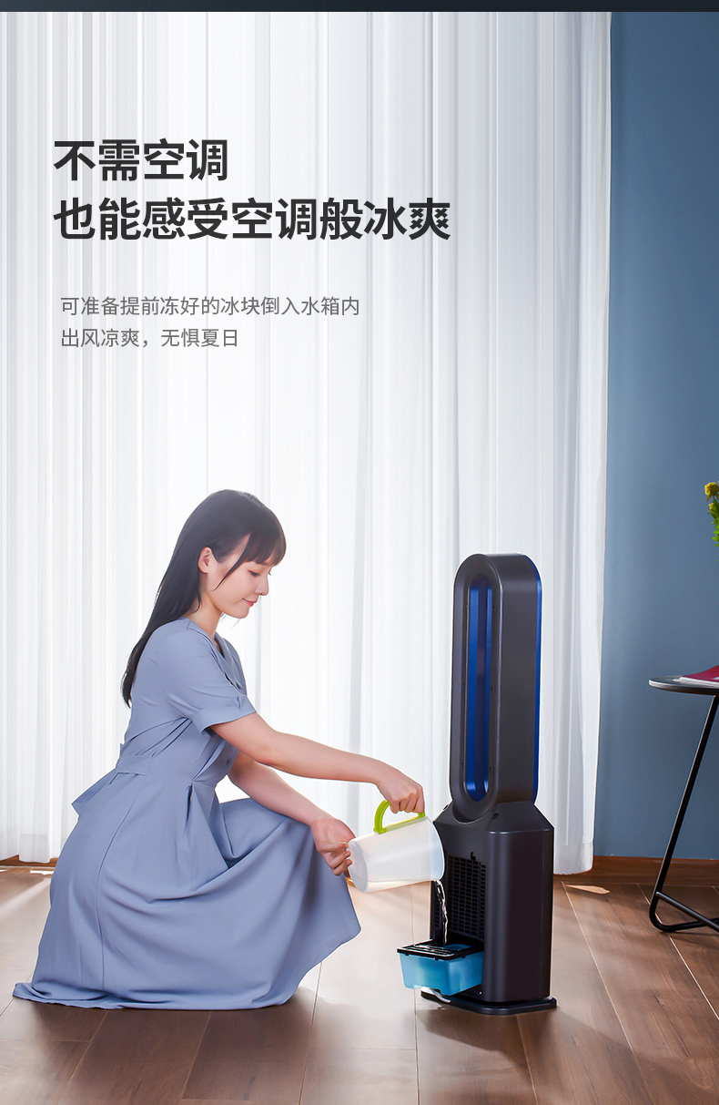 先锋(Singfun)无叶风扇电风扇家用塔扇静音落地水冷风扇空调扇遥控负离子立台式定时DWY-S1