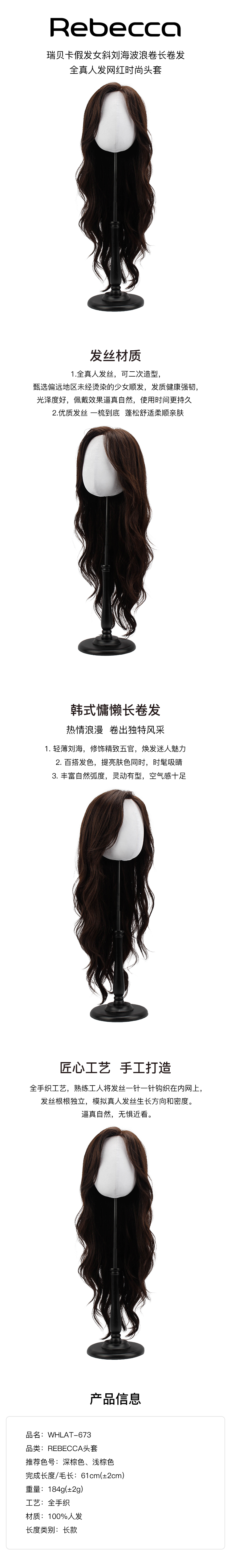 Rebecca瑞贝卡假发女斜刘海波浪卷长卷发全真人发网红时尚头套