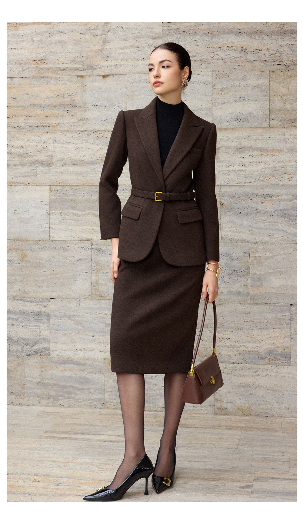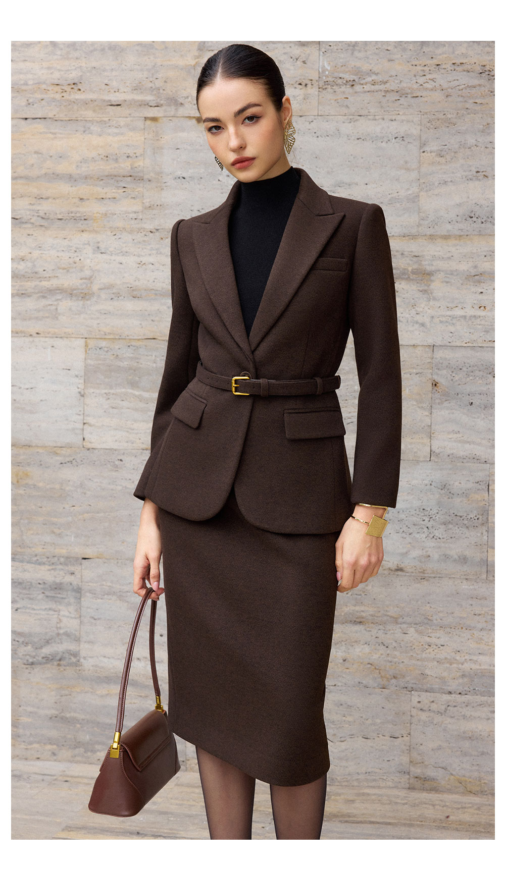 AD绵羊毛西装套装女气质老钱风职业装毛呢西服外套秋冬通勤两件套