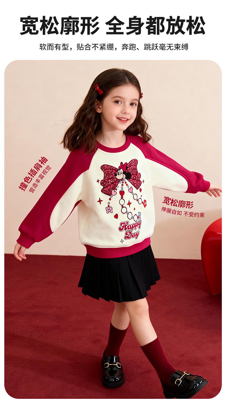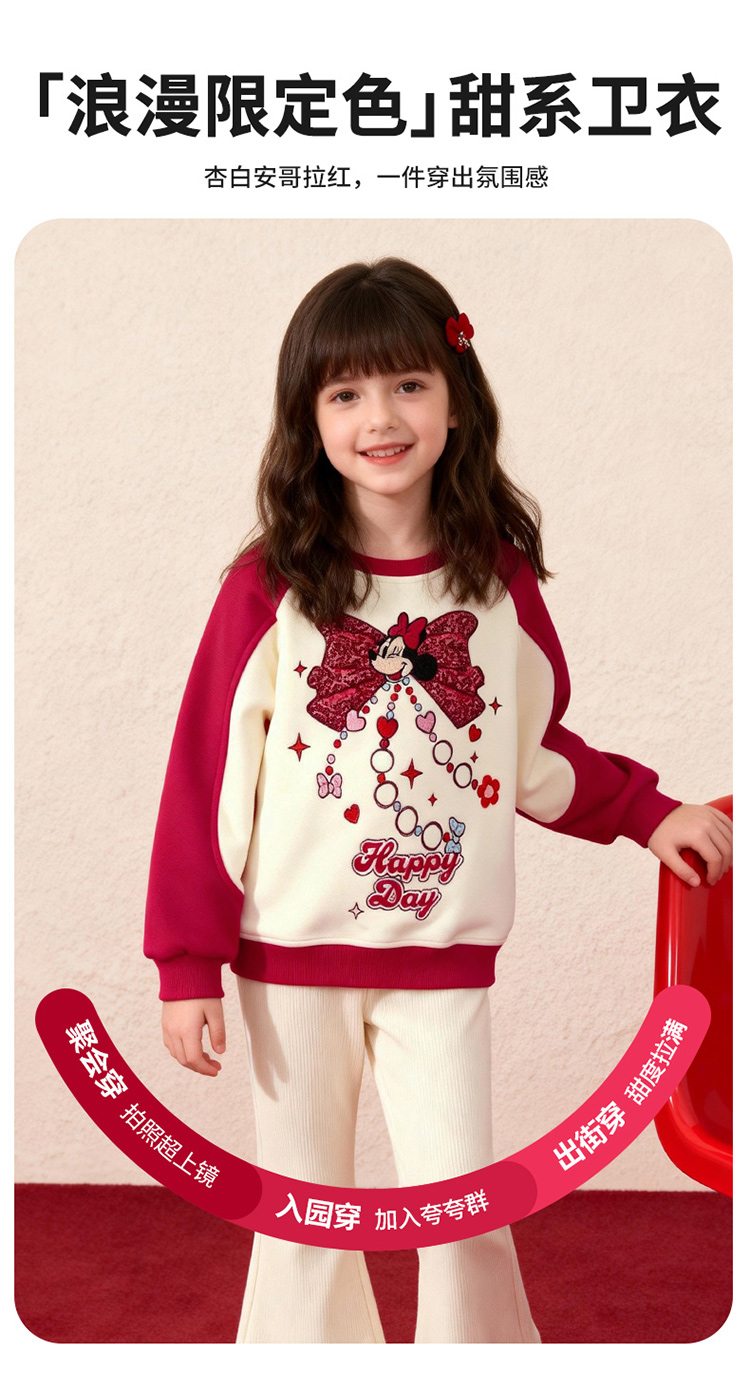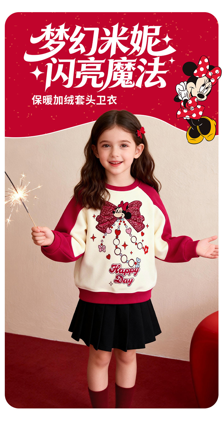 迪士尼魔法派对冬季女童刺绣加绒套头卫衣XD4ES080