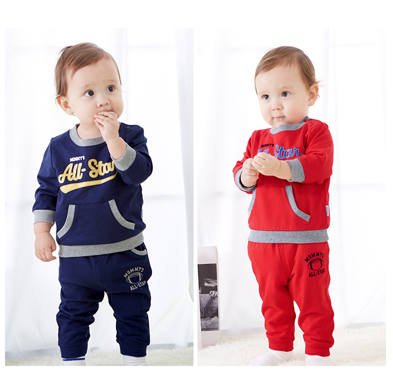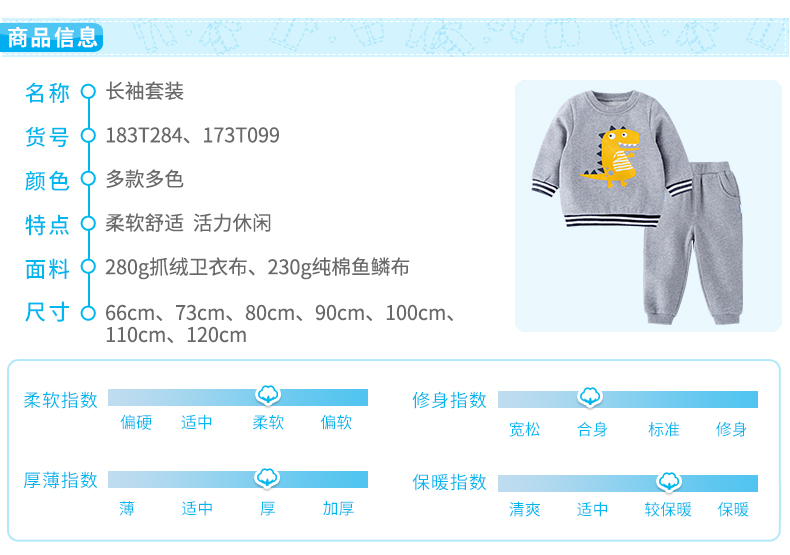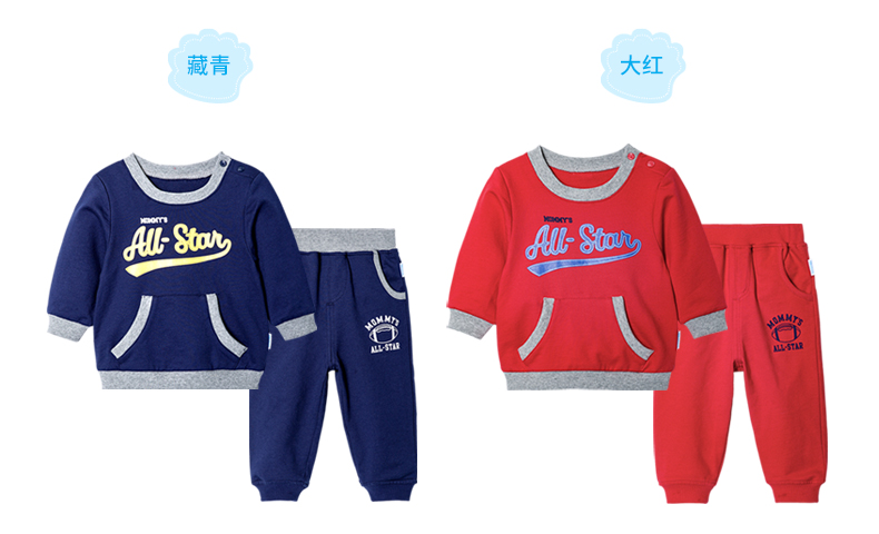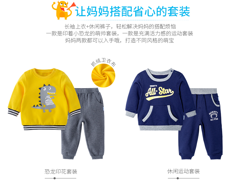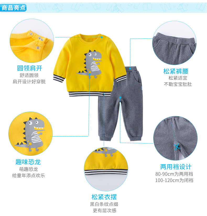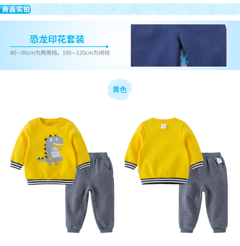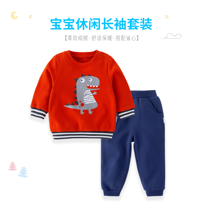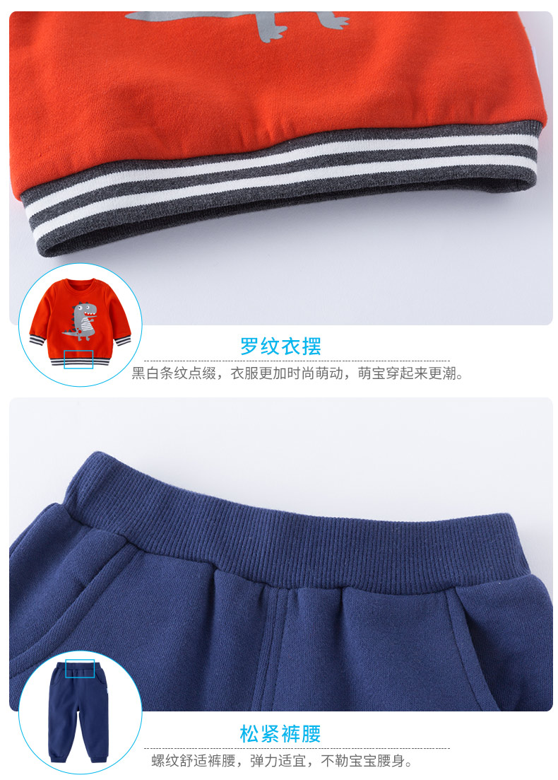 贝贝怡男童装保暖长袖套装秋冬新款宝宝休闲卫衣2件装183T284