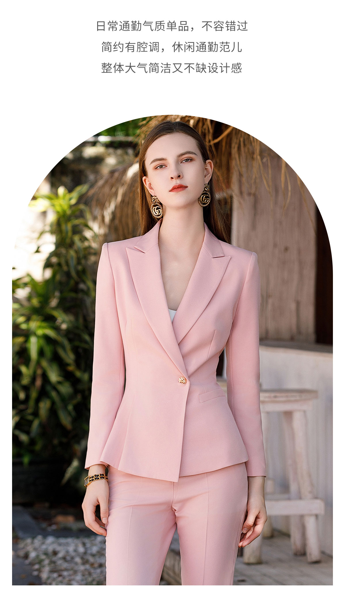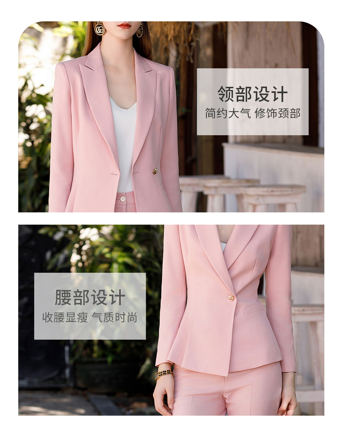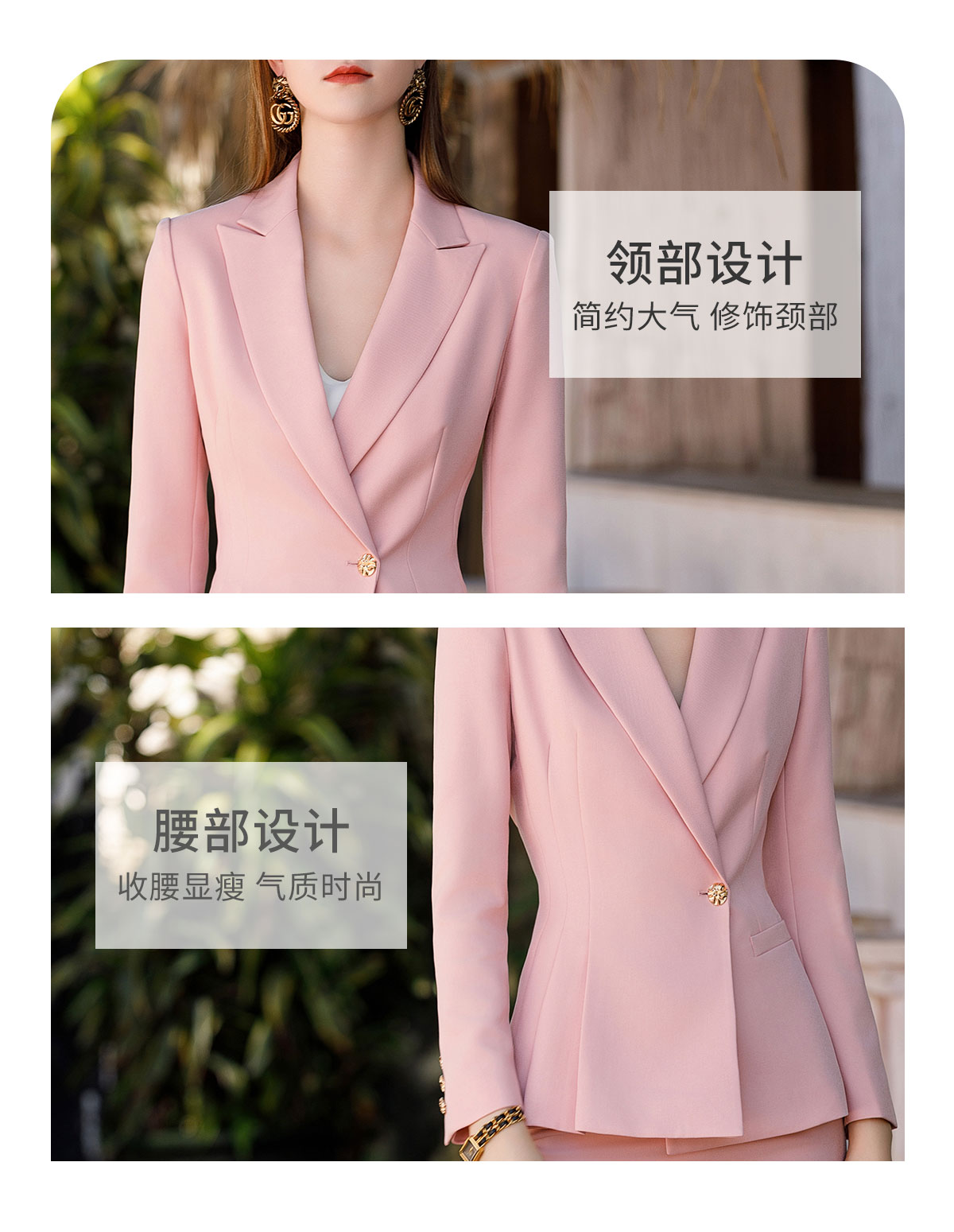AD粉色高级感西装套装女气质西服小个子通勤休闲职业主持人正装