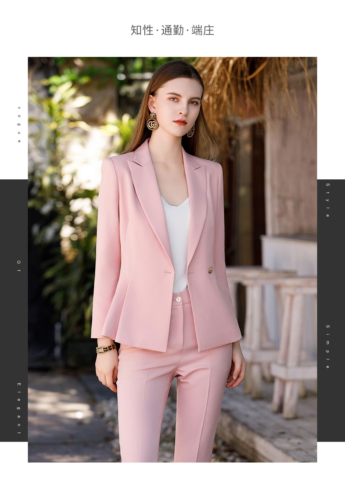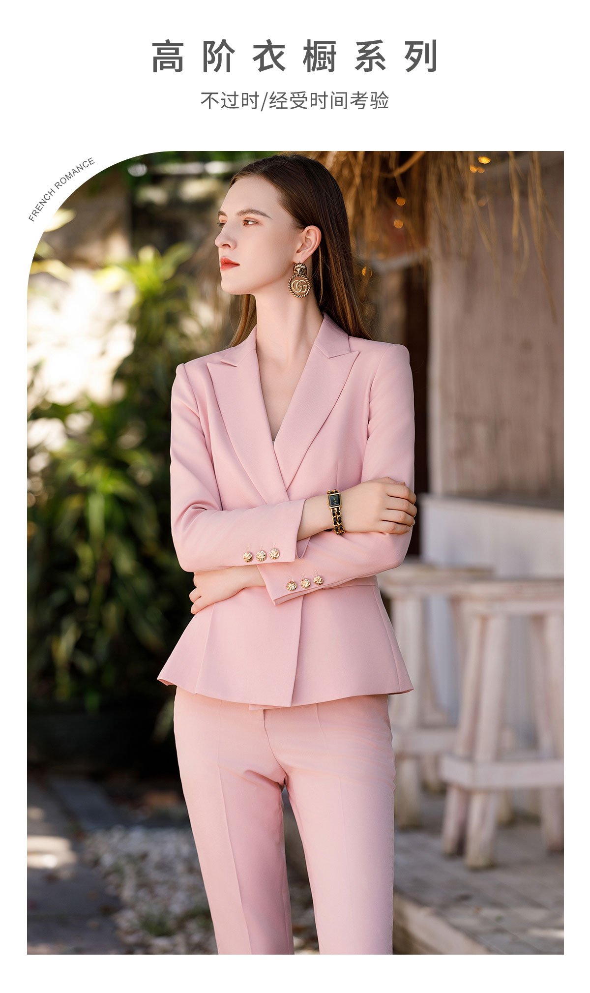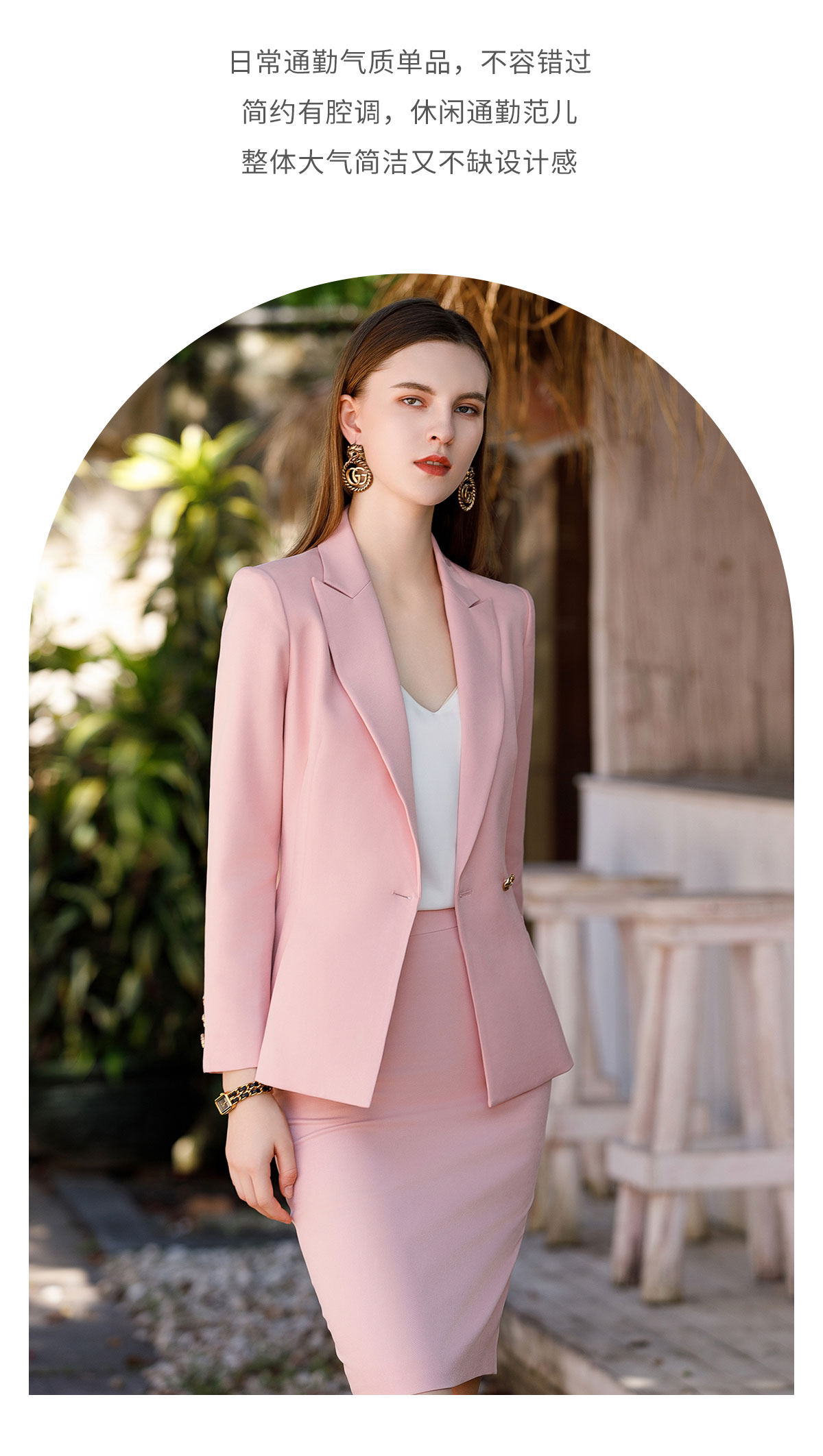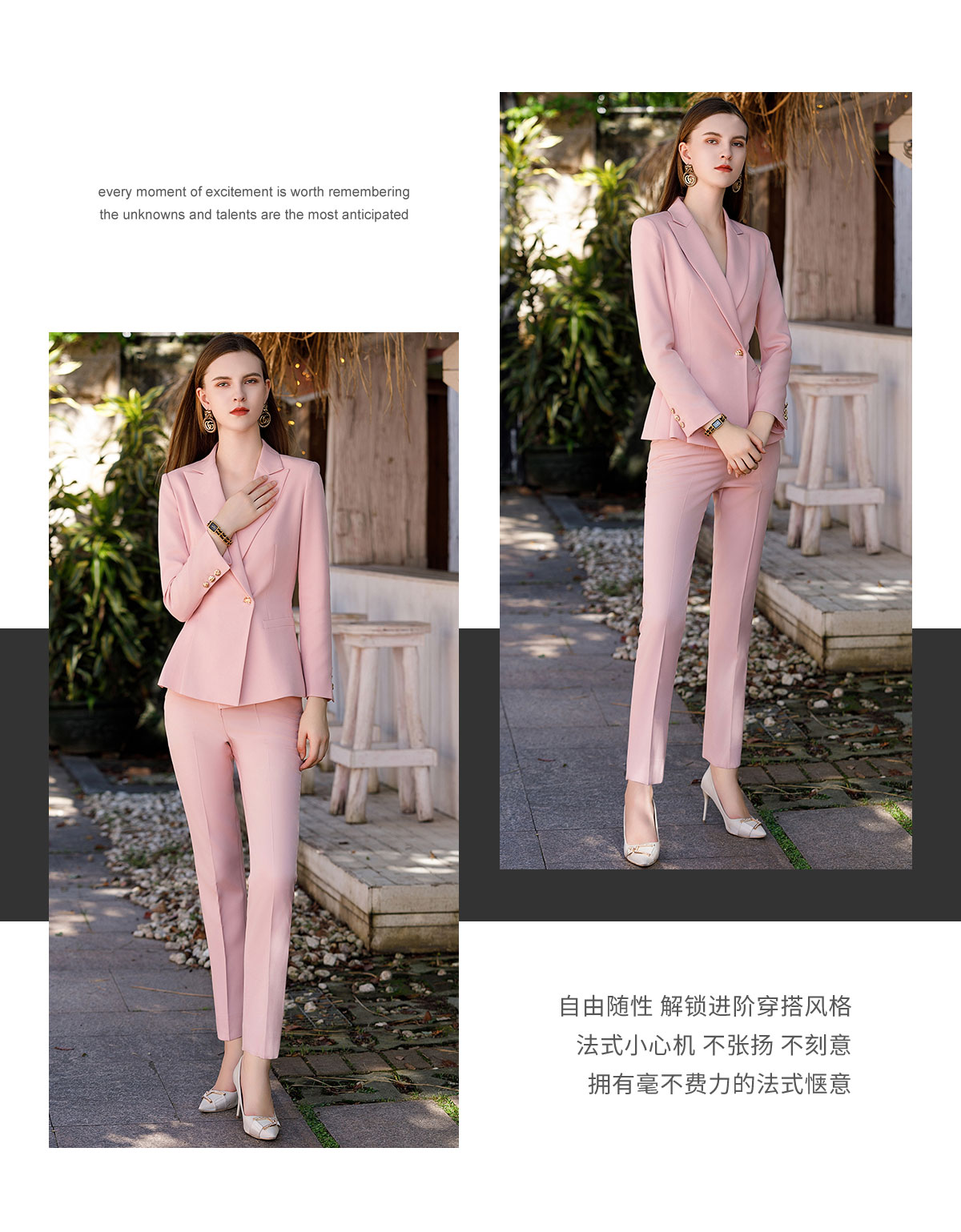 AD粉色高级感西装套装女气质西服小个子通勤休闲职业主持人正装