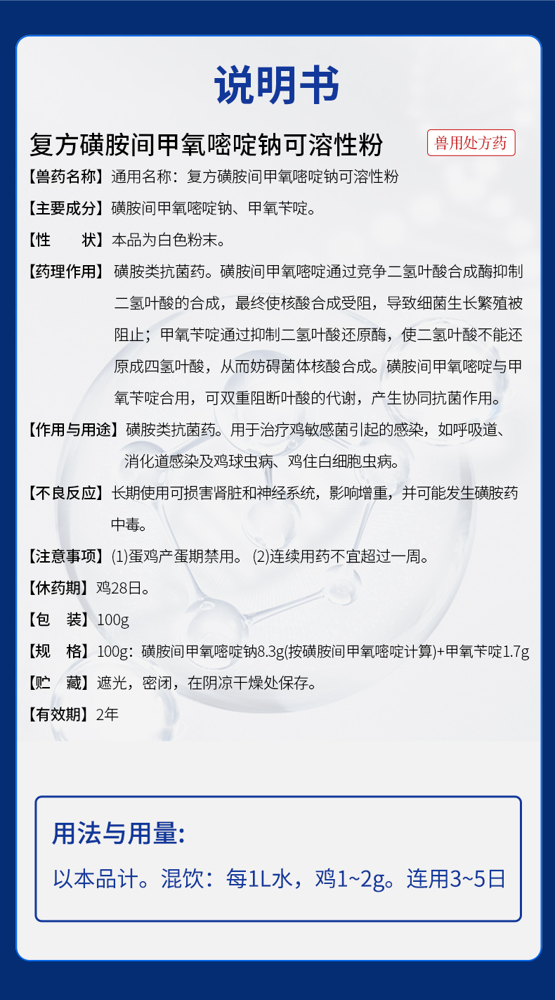 华畜复方磺胺间甲氧嘧啶钠可溶性粉100g 鸡兔球虫 呼吸道病
