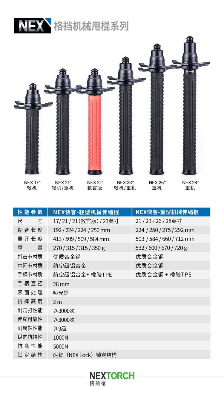 纳丽德(NEXTORCH)格挡机械甩棍挡刀伸缩棍防身防狼自卫合法车载武器