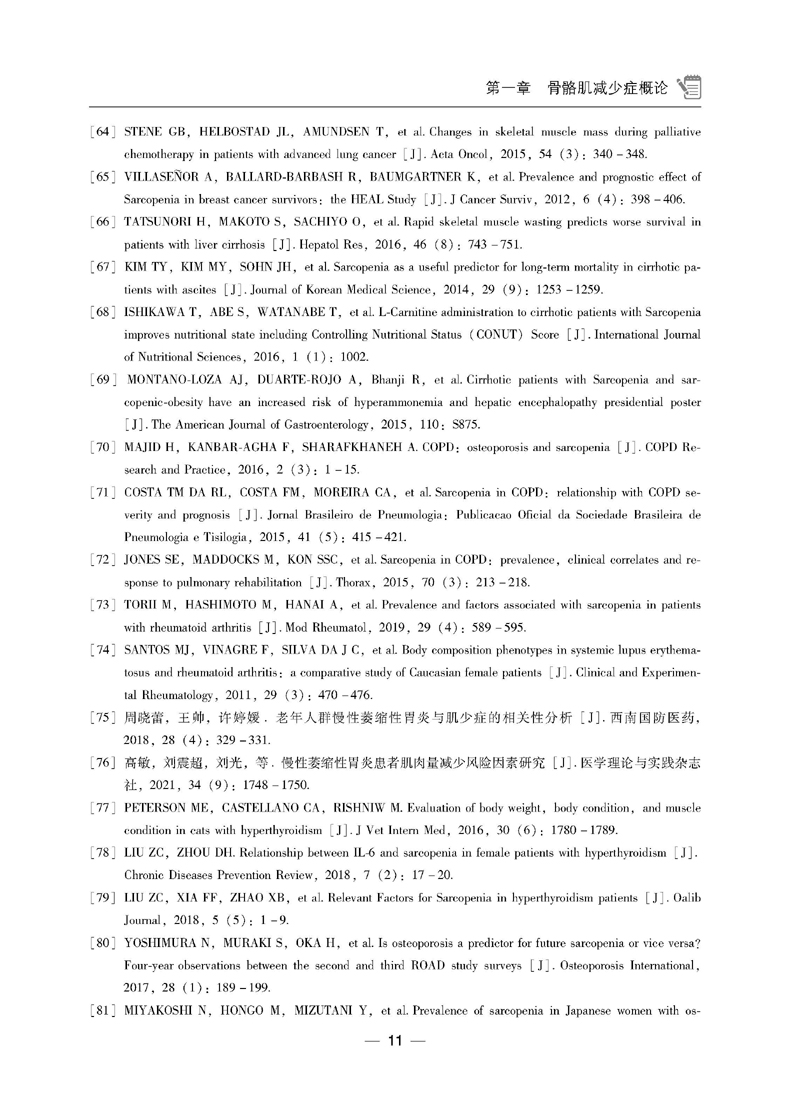随着我国人口老龄化的进程加剧,与老年人密切相关的骨骼肌减少症开始日渐受到人们的关注,同时在临床中各种疾病引起的继发性肌少症也开始得到重视。本书全面的对骨骼肌减少症进行了阐述,涉及骨骼肌减少症的流行病学、病理机制、检查与诊断、预防和治疗,并对一些肌少症前沿的课题进行了介绍,并结合了著者临床中的实践进行探讨分析。内容充实,涉及面广泛,并包含了部分相关检查的图片,适合与骨骼肌减少症相关的运动医学人员参考