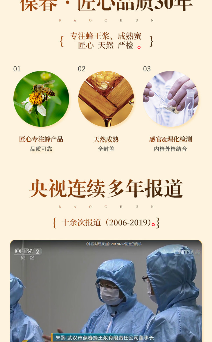葆春蜂王浆公司,三代传承: 专业、专注、专心! 葆春蜂王浆、成熟蜜、蜂花粉 :蜜蜂造,“0”添加。 葆春蜂产品 :不天选,以心择。 欢迎品鉴!