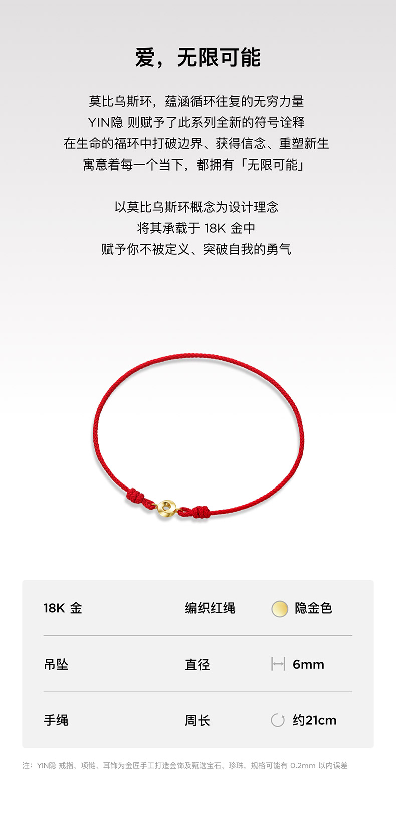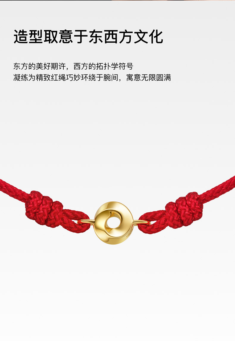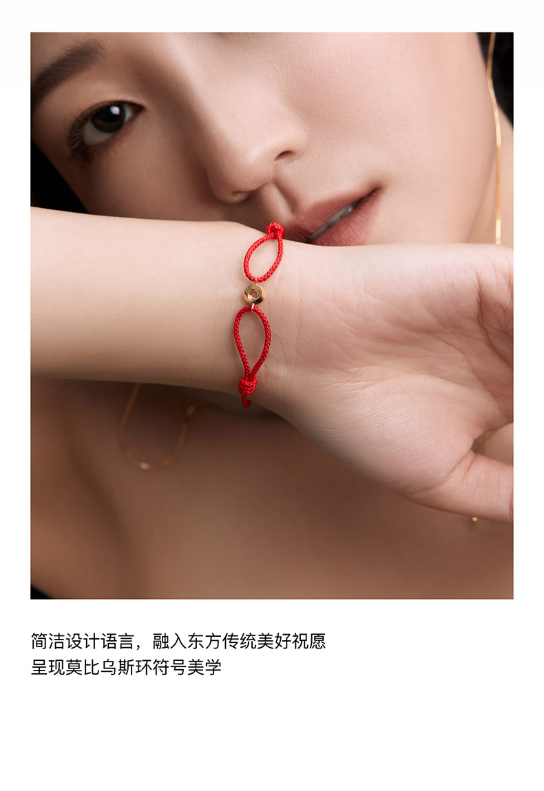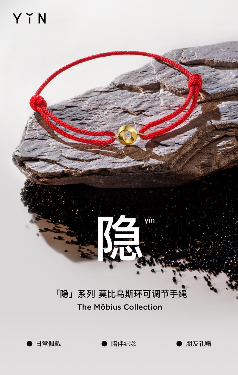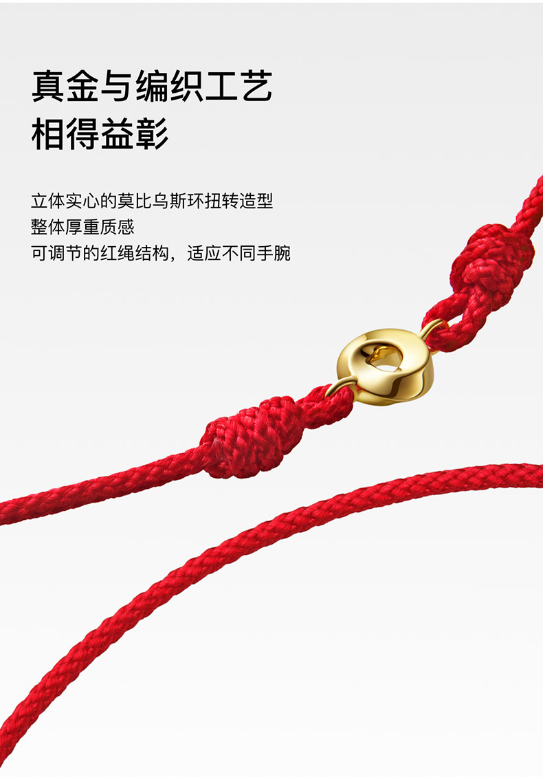 「隐」系列莫比乌斯环可调节手绳(红绳)