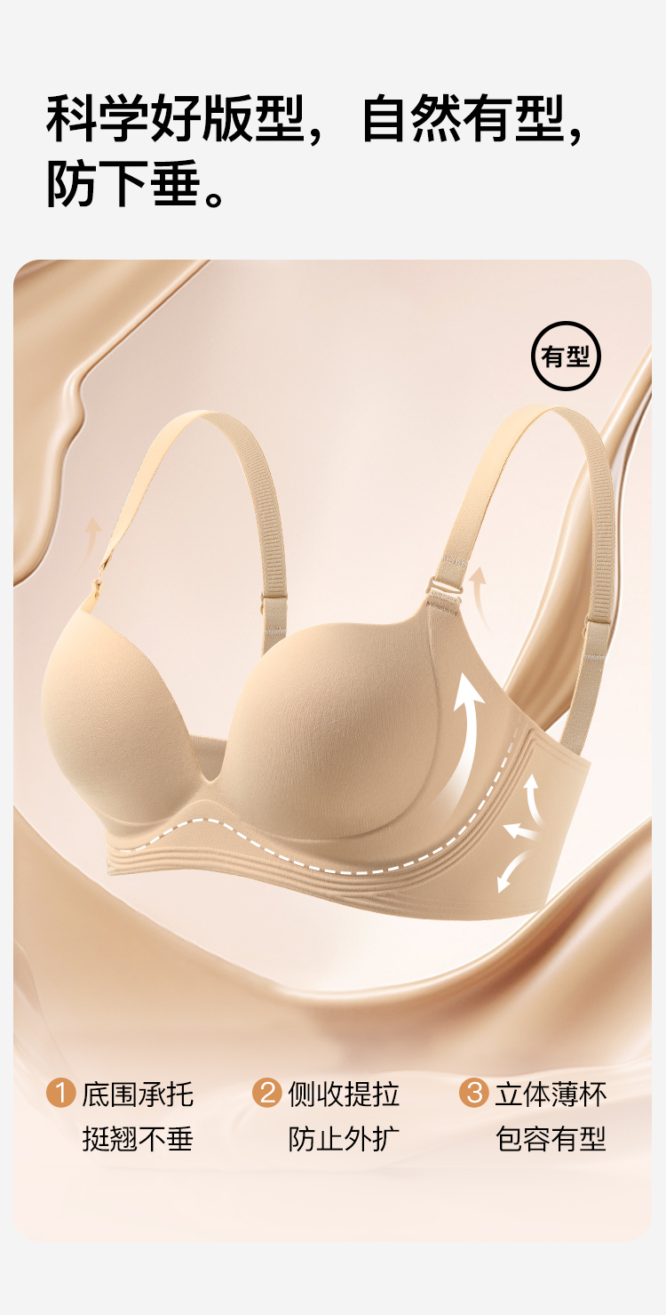 【聚拢承托防下垂】内衣女隐形无痕舒适有型无钢圈侧收提拉文胸罩醉落诗意