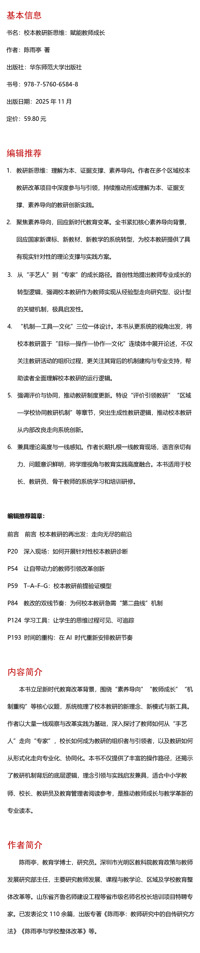 校本教研新思维 赋能教师成长 大夏书系 教师专业发展 教学革新 陈雨亭