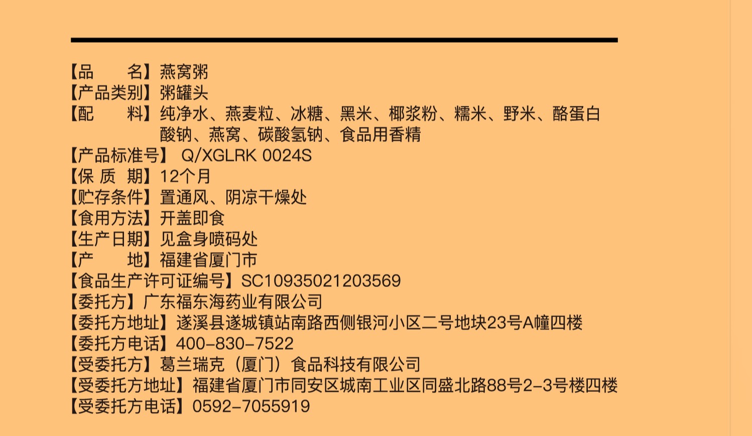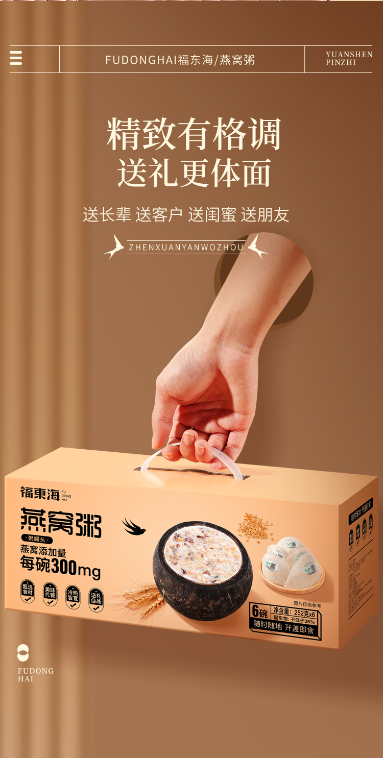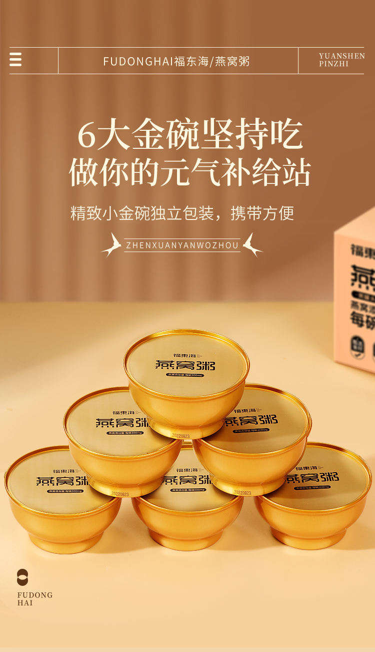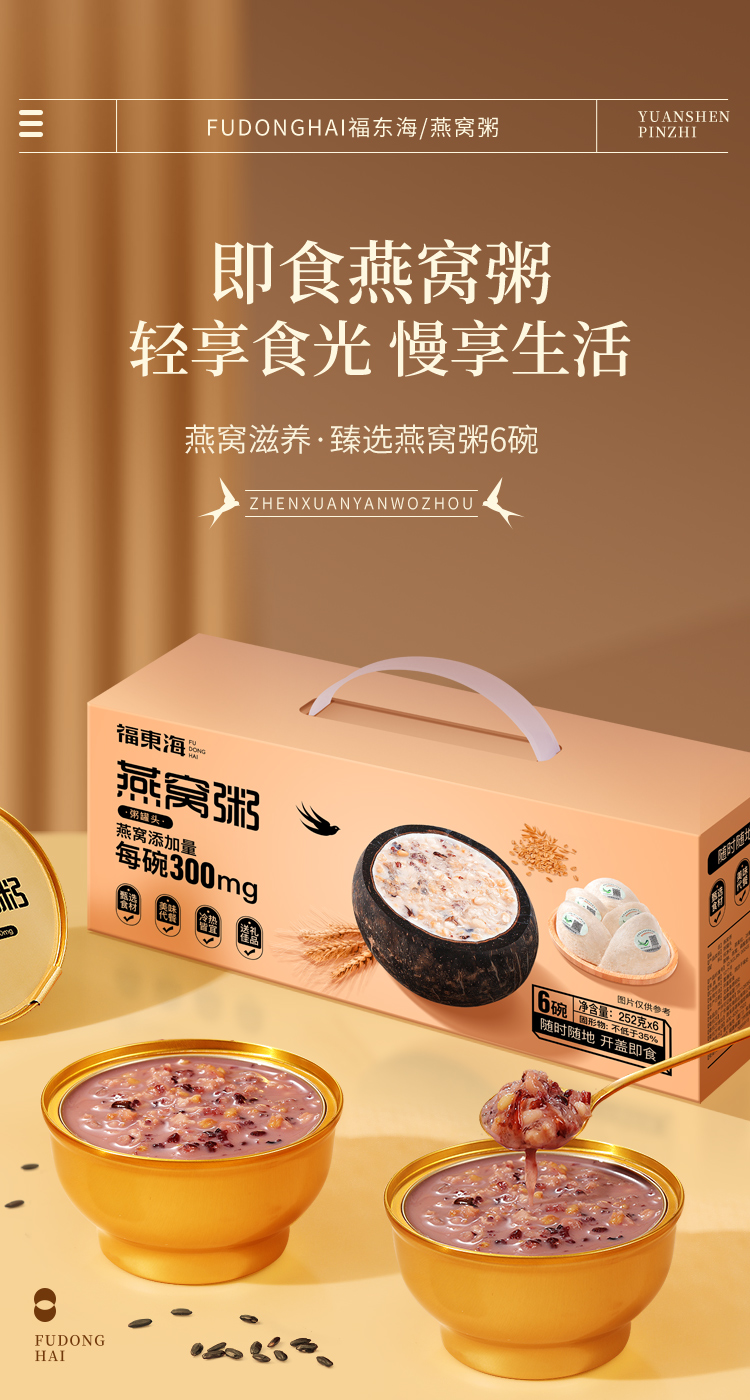 【拍1发2】福东海 燕窝粥1512克(6碗*252克)/盒