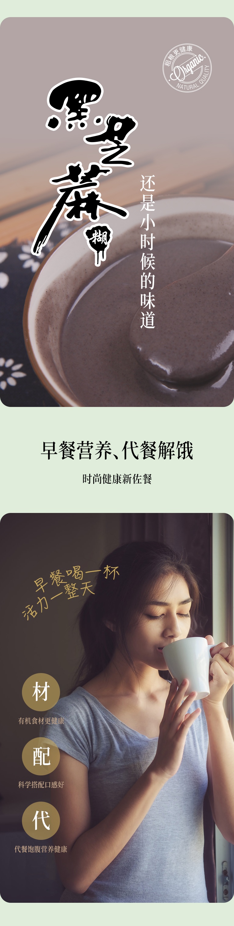 【产品配料表】有机黑芝麻(添加量20%)、有机黑豆、有机大米、有机黑米、有机糙米、有机燕麦米、有机红枣粉
