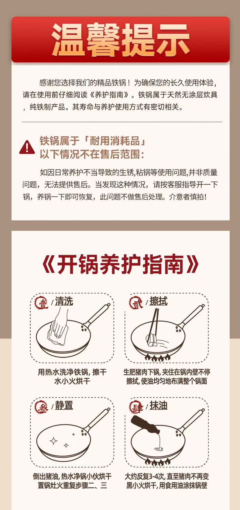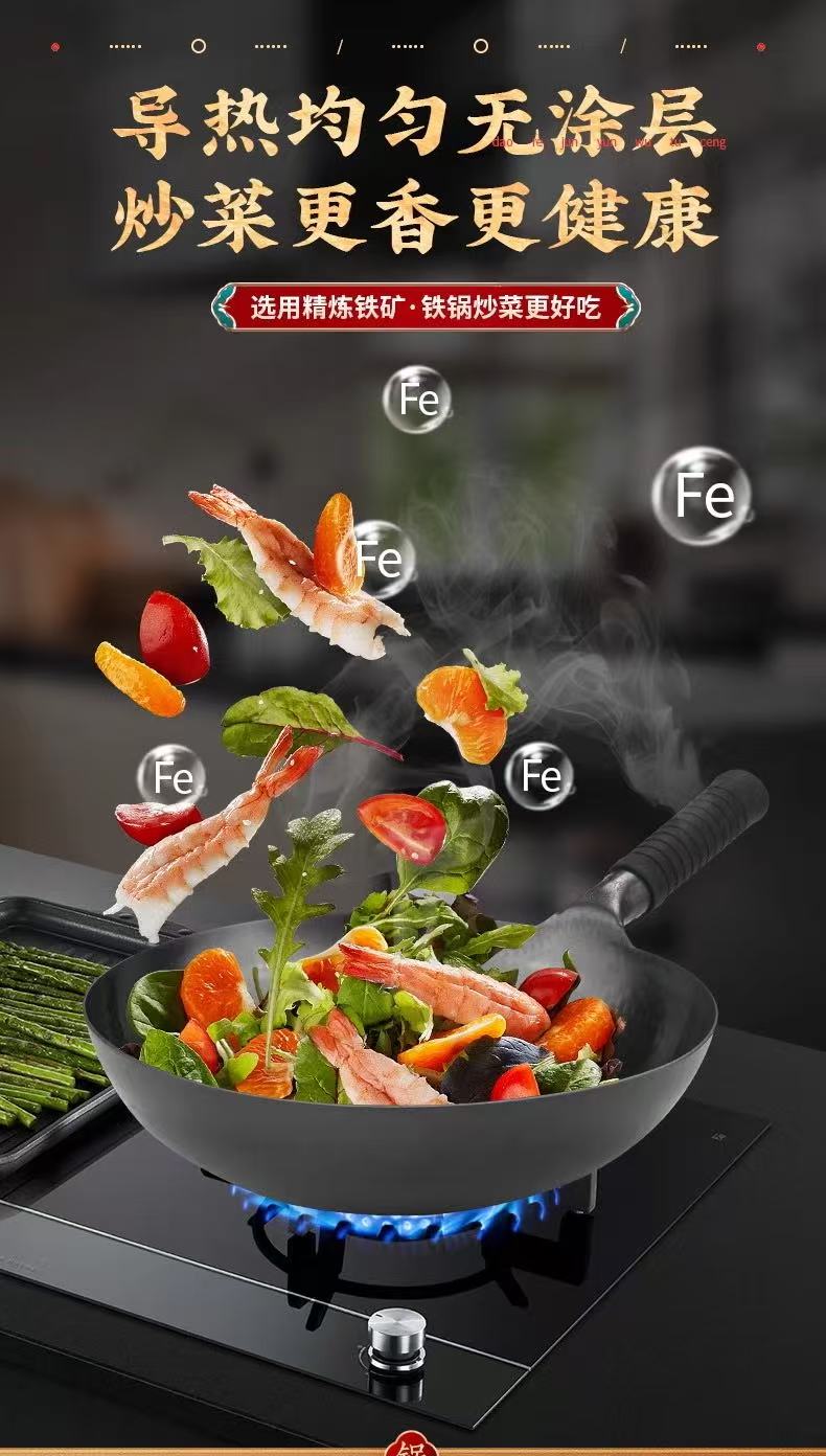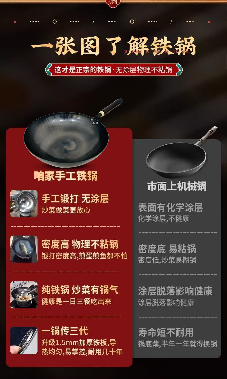 【章丘铁锅】章丘轻便款手工黑铁锅: