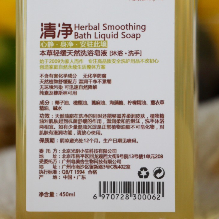 | 产品名称:本草轻缓天然皂液 |