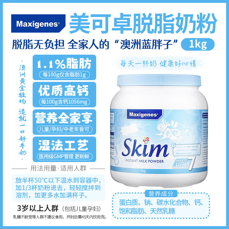 Maxigenes美可卓蓝胖子蓝妹子全脂脱脂高钙成人奶粉