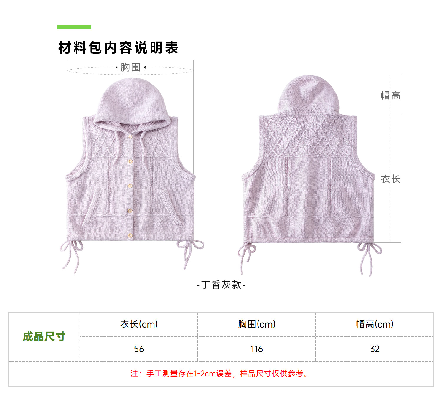 苏苏姐家云野开襟小龟背廓形马甲手工diy羊毛编织棒针毛线材料包