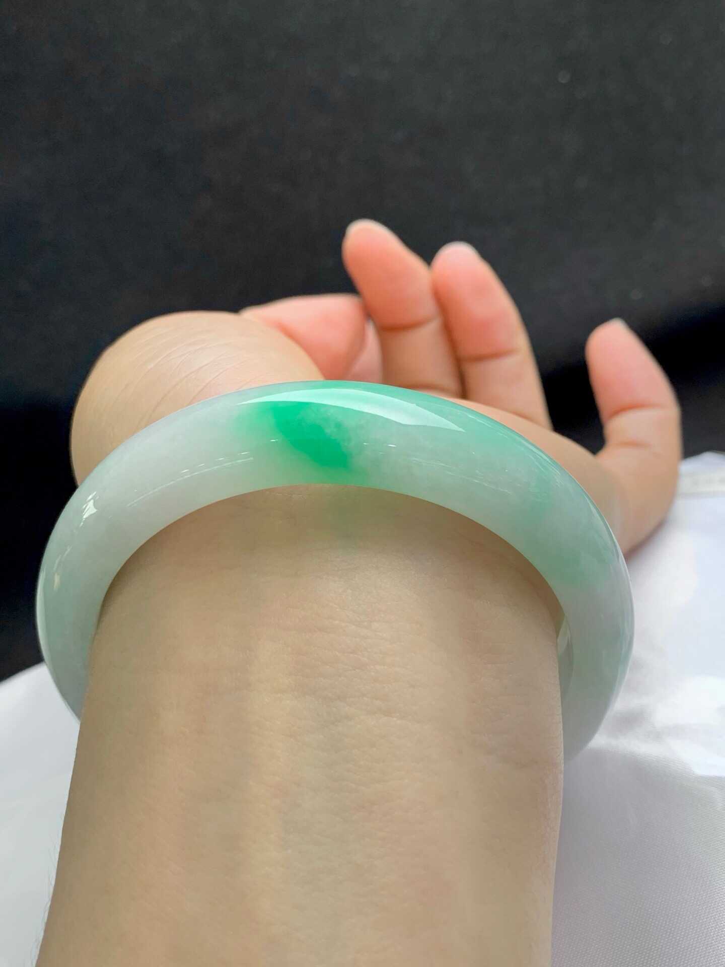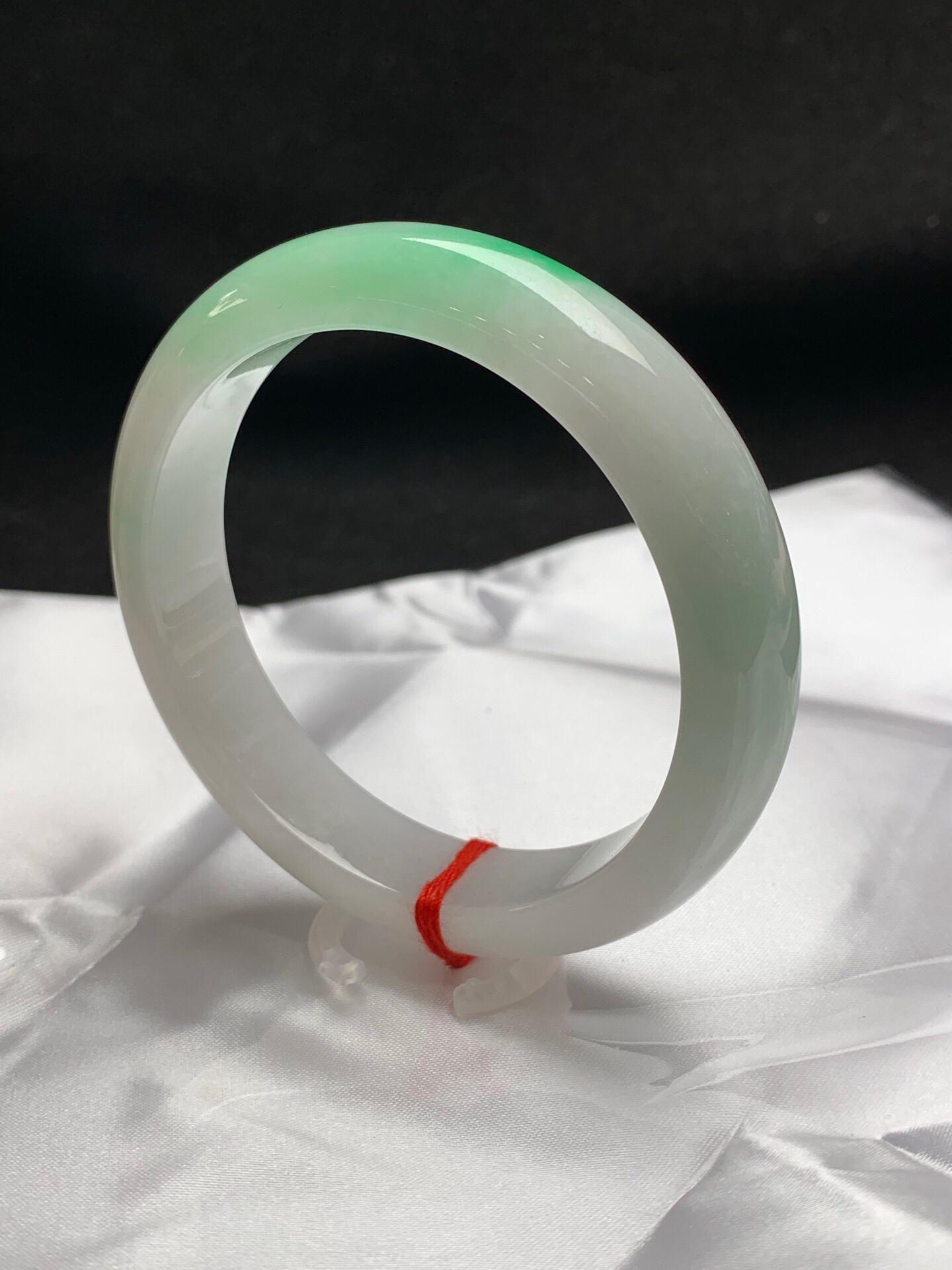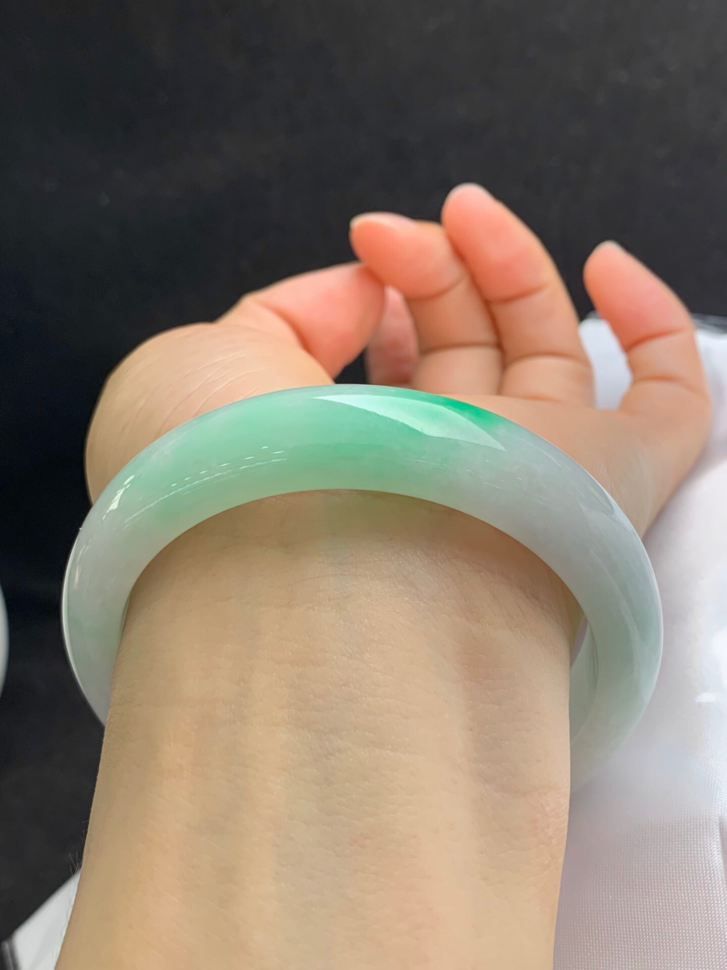 620401,60圈口,飘绿正圈平安镯,白底飘阳绿,底子细腻有水,完美,尺寸:60-13.8-8.5,超值价💰35000 #优石客珠宝#香玉荟萃