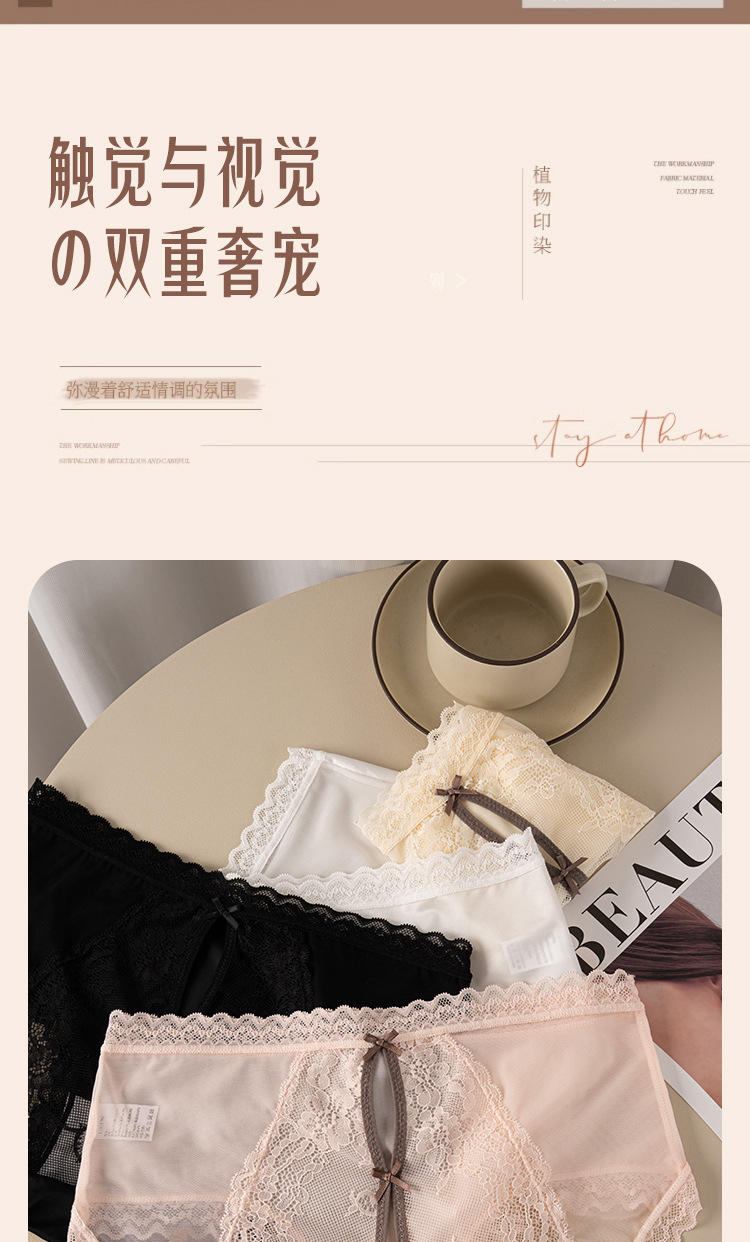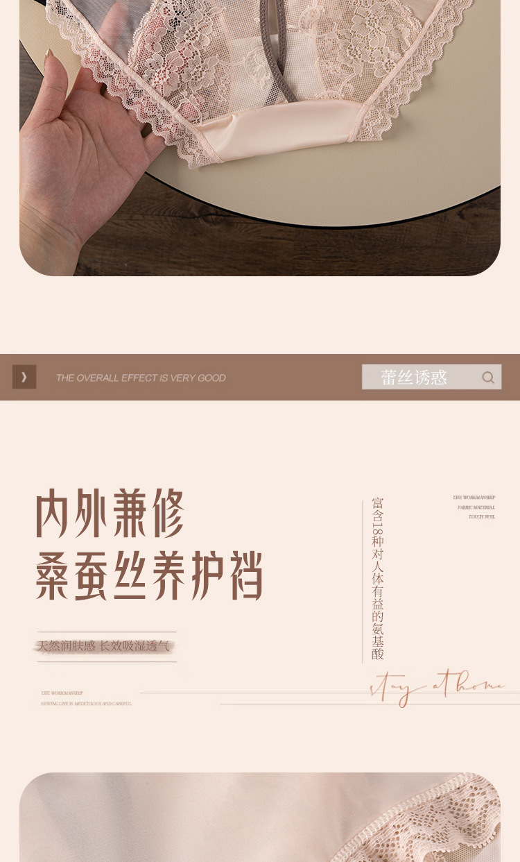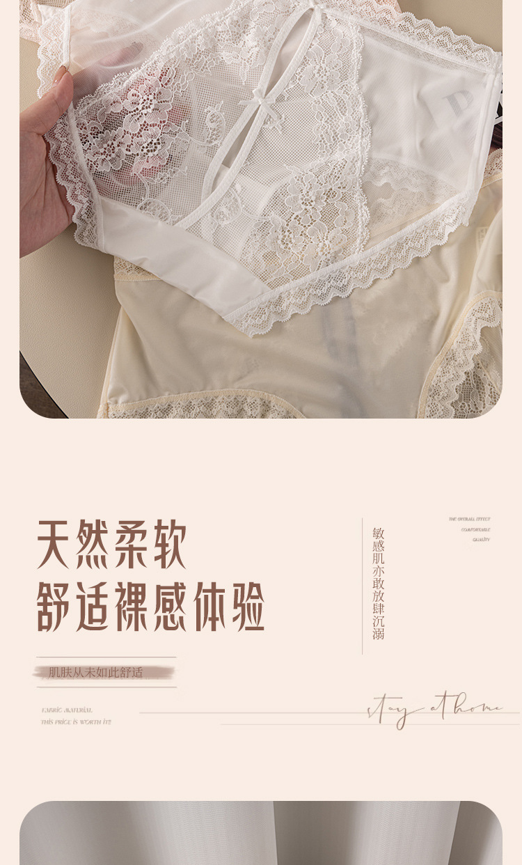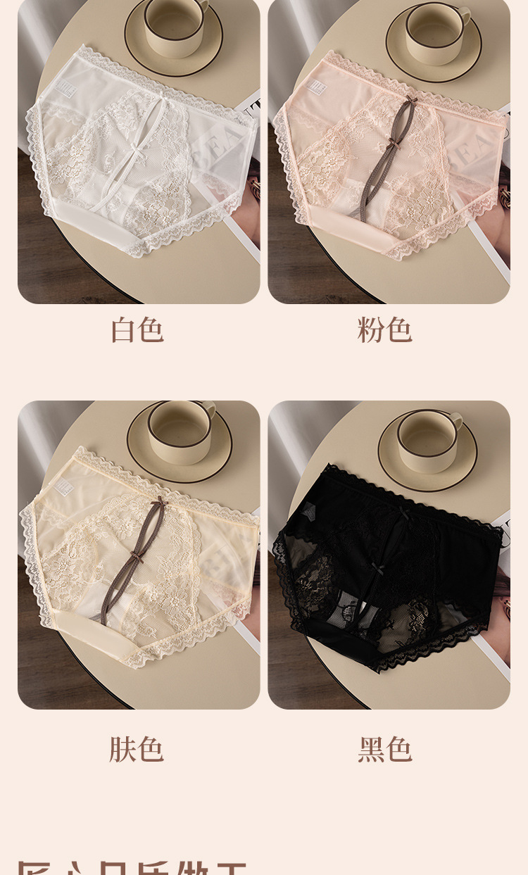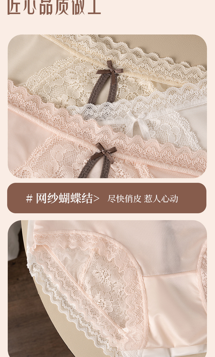 【49.9秒杀4条❗蕾丝后镂空网纱内裤】舒适是我的本能,内外兼修,柔滑绸缎,珍珠般光泽,桑蚕丝养护裆,网纱法式女士内裤女生甜美纯欲透气蝴蝶结三角内裤QQ