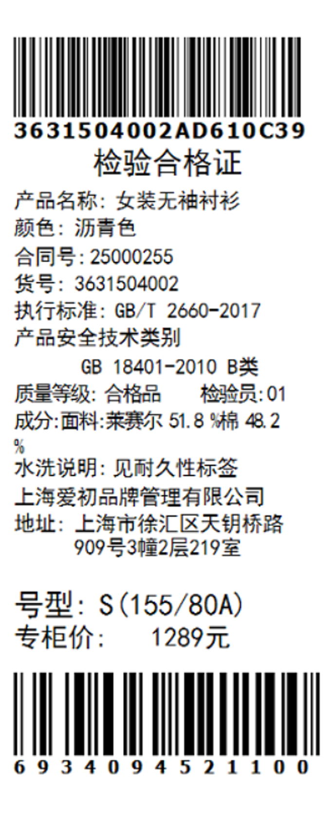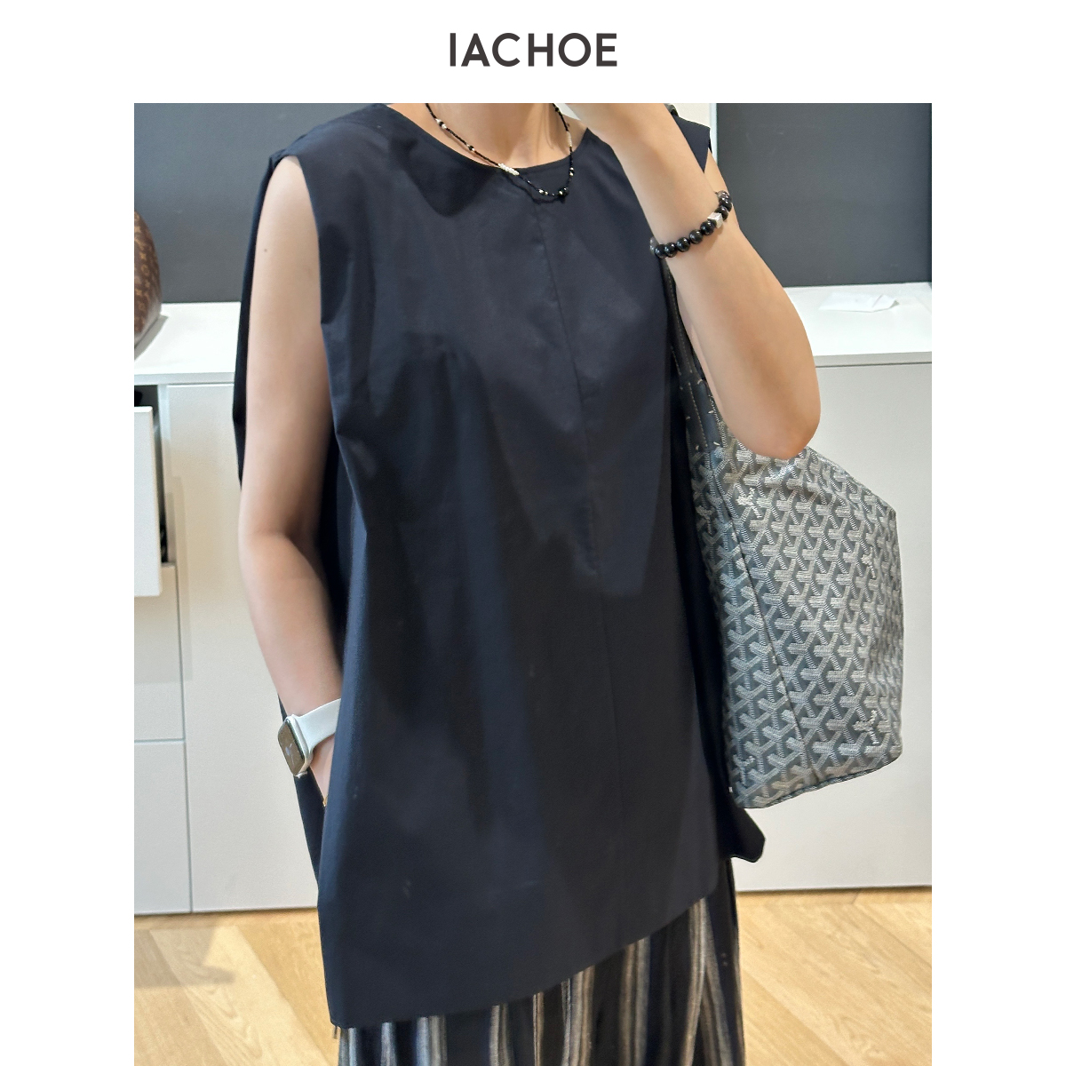 棉仓3631504002-IACHOE进口天丝棉混纺无袖背心衬衫
