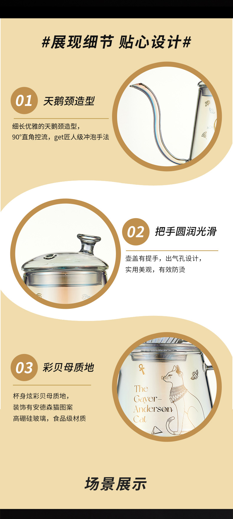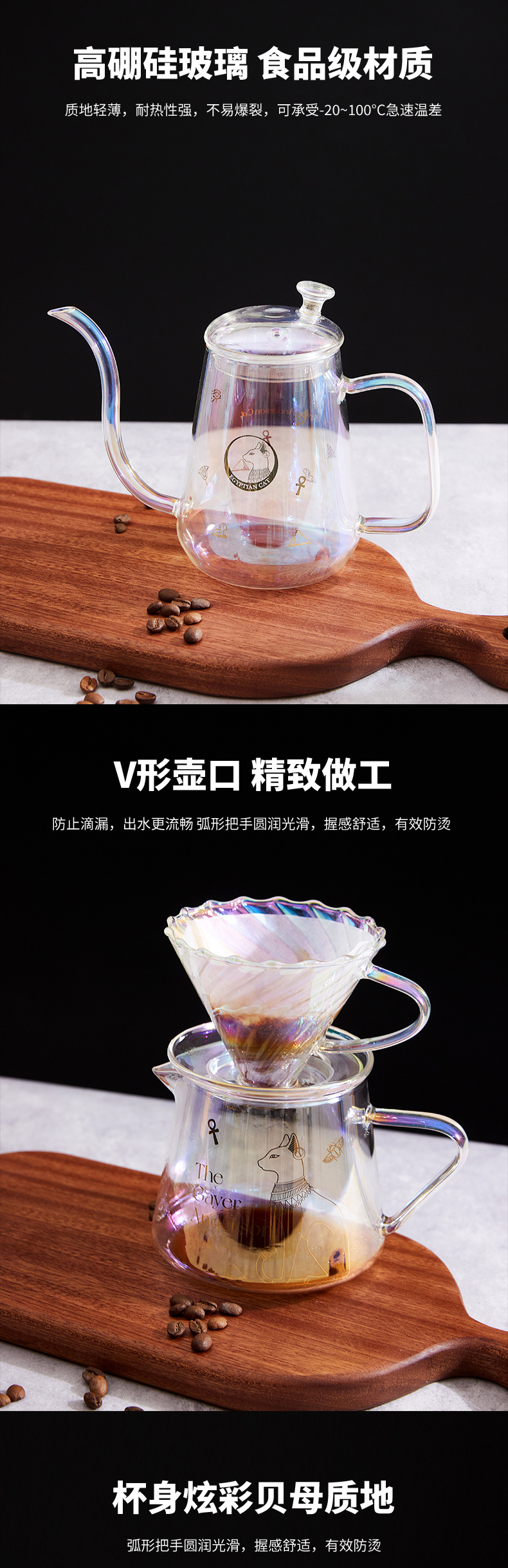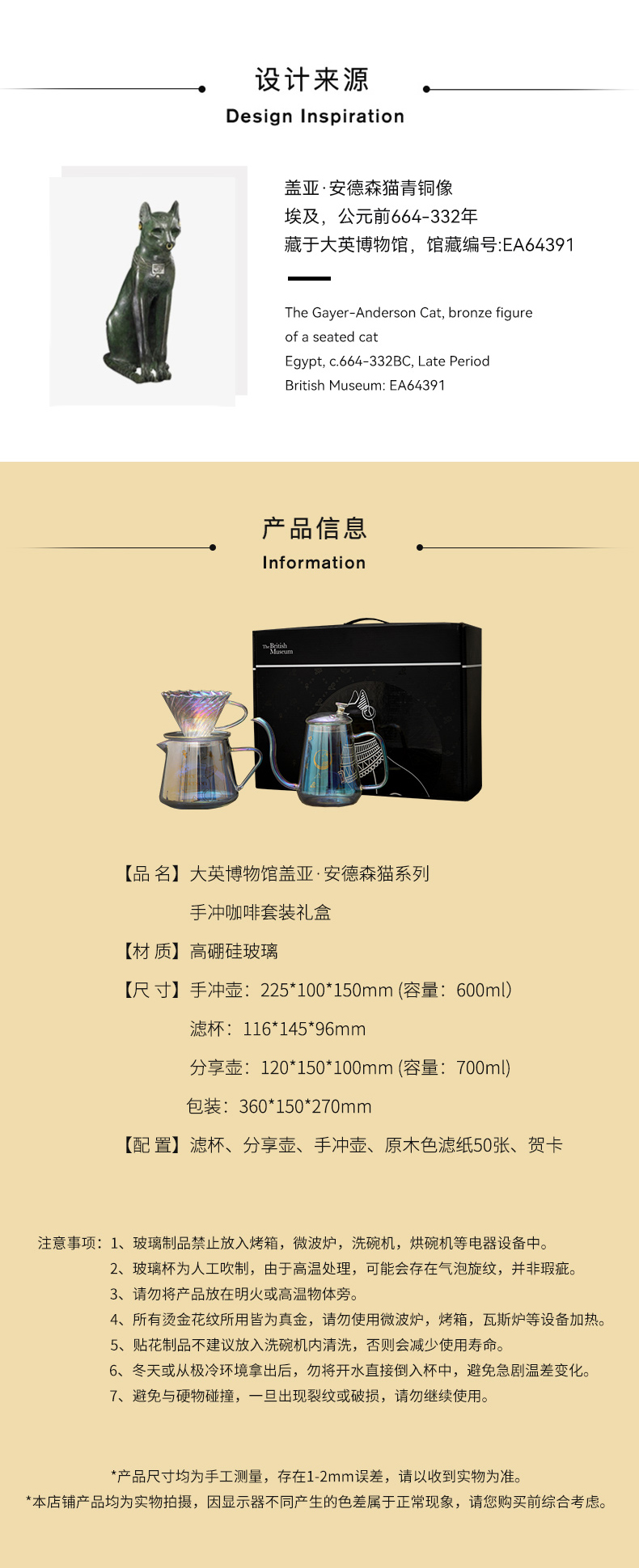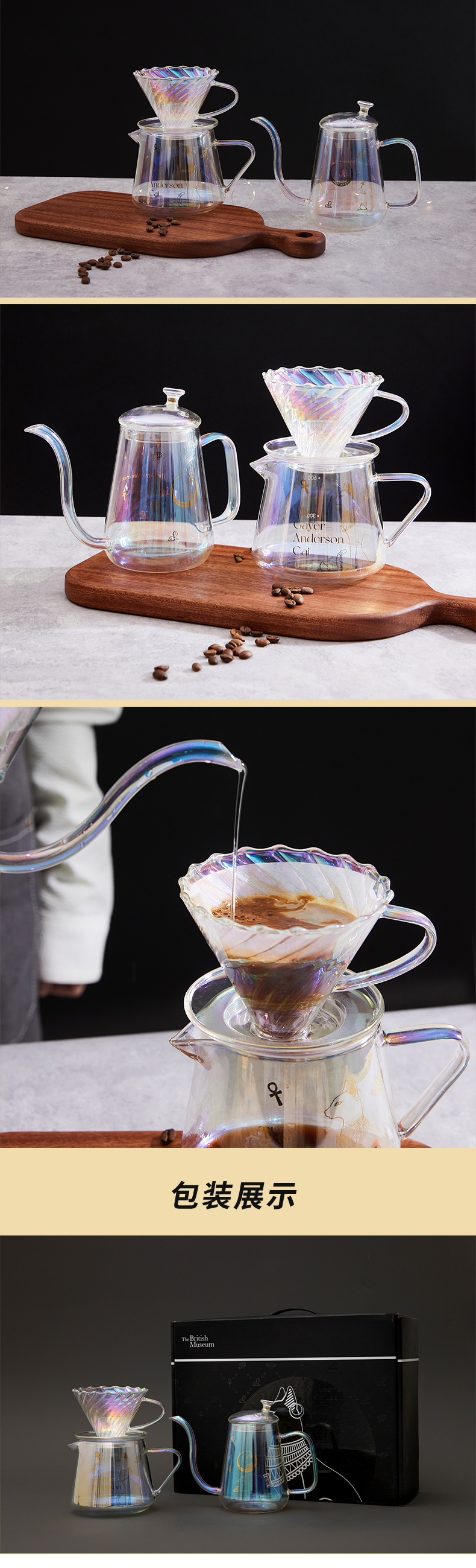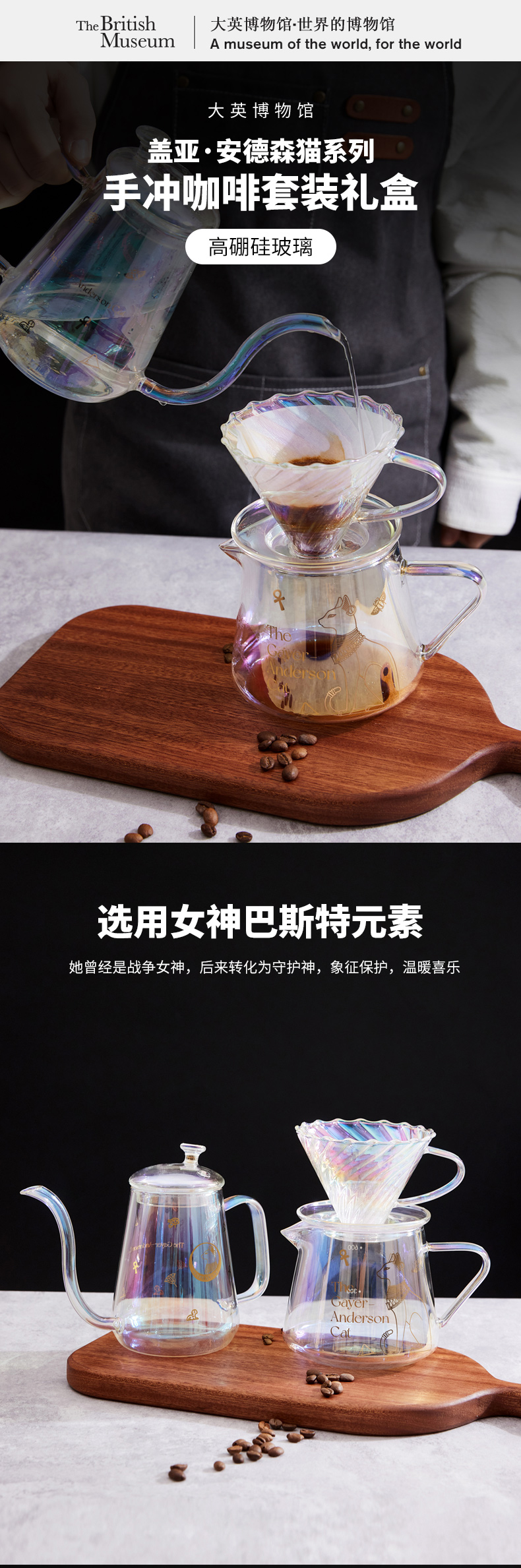 大英博物馆盖亚·安德森猫高硼硅玻璃手冲咖啡壶套装礼盒