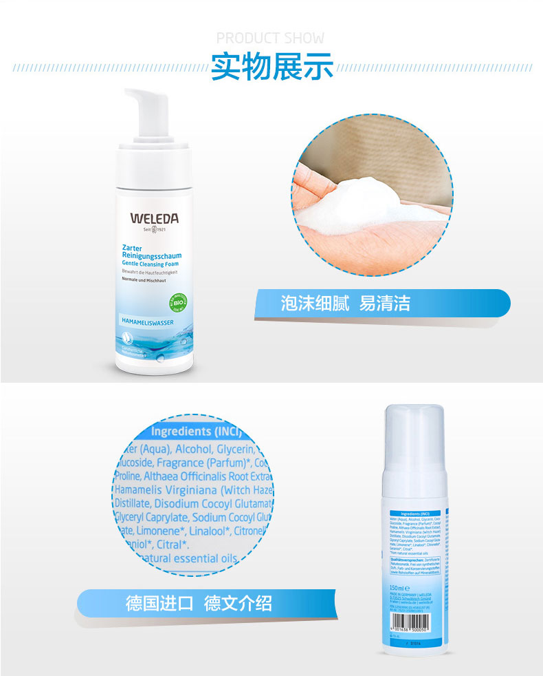 【宁波】WELEDA维蕾德 轻松卸妆不紧绷 植物洁面摩丝 150ml