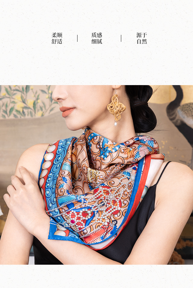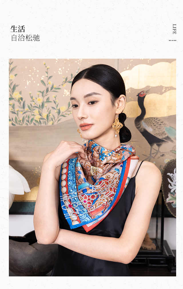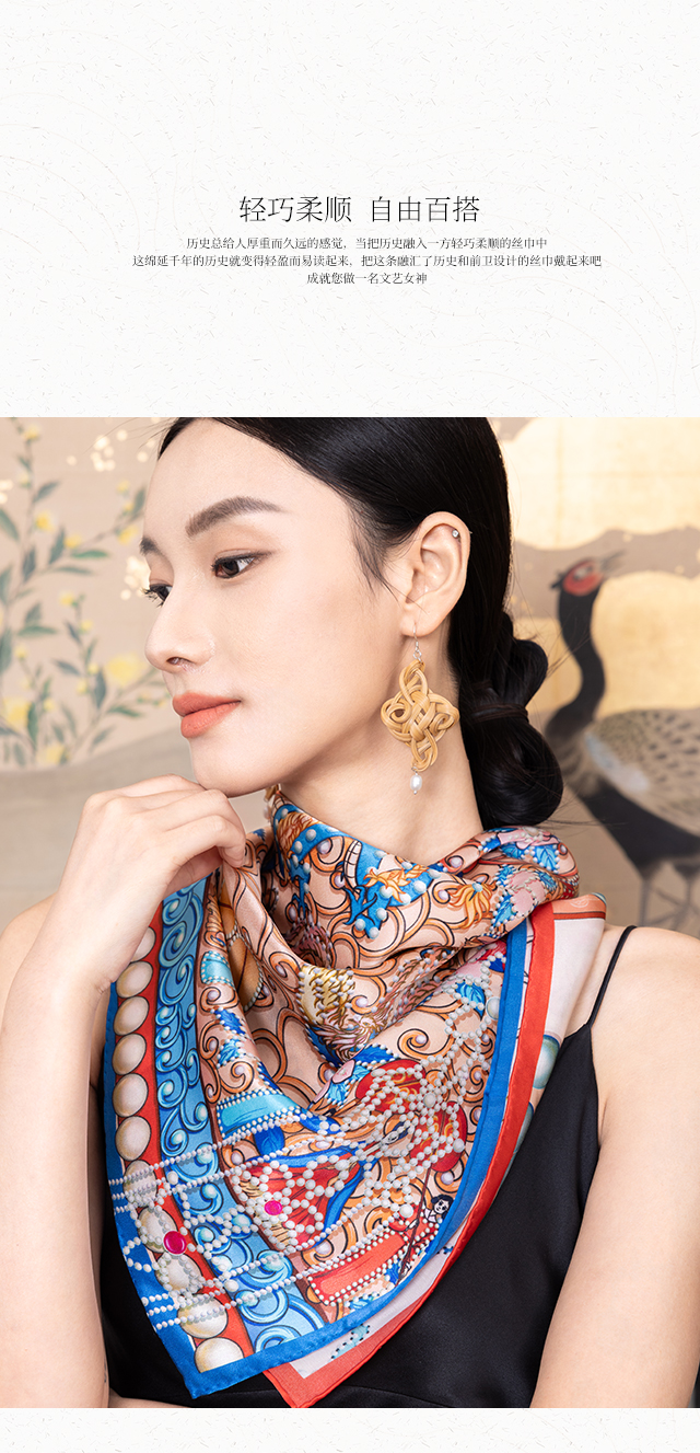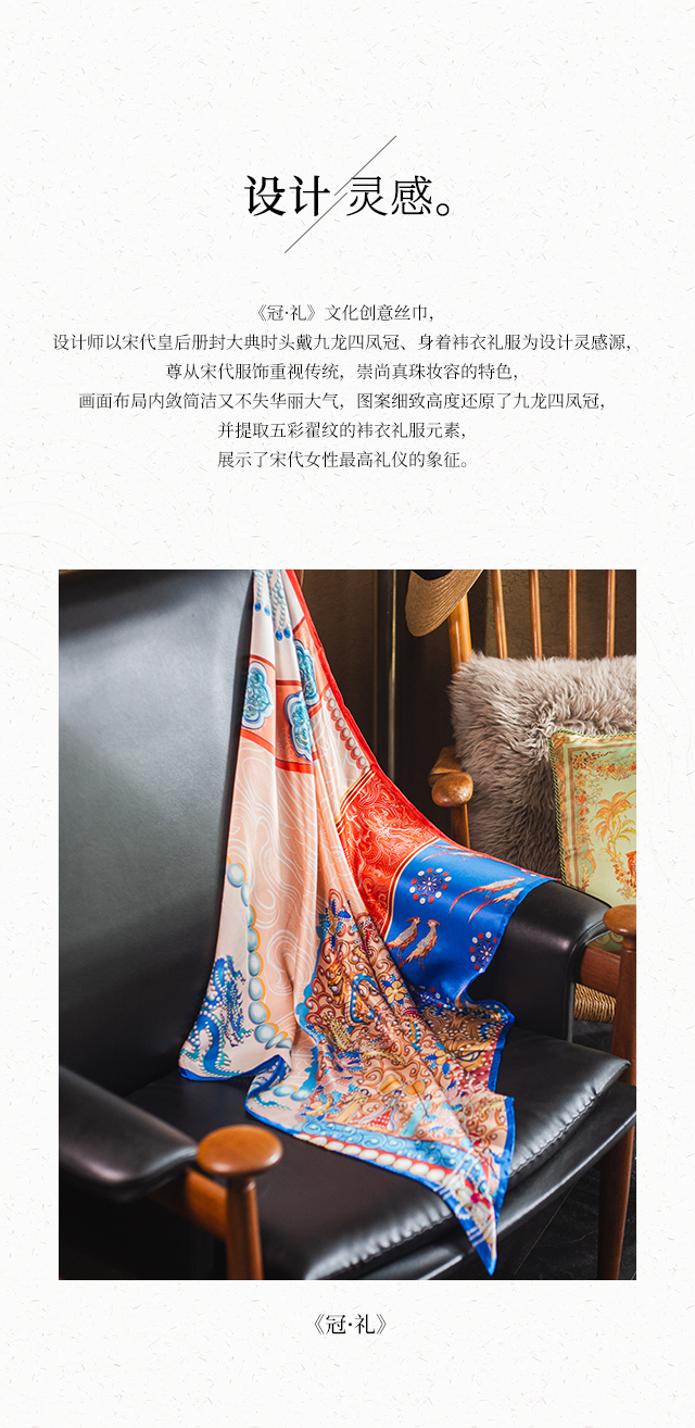 喜得宝文创丝巾《冠礼》数码大方巾 杭州丝绸100%桑蚕丝素绉缎