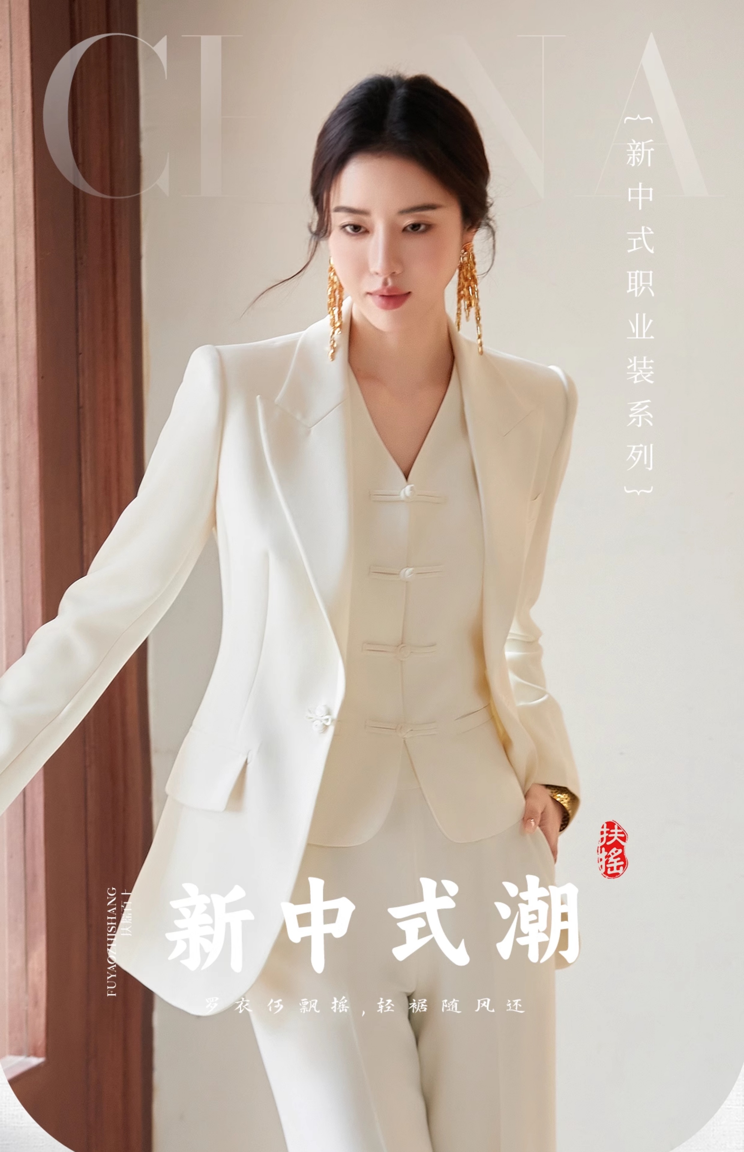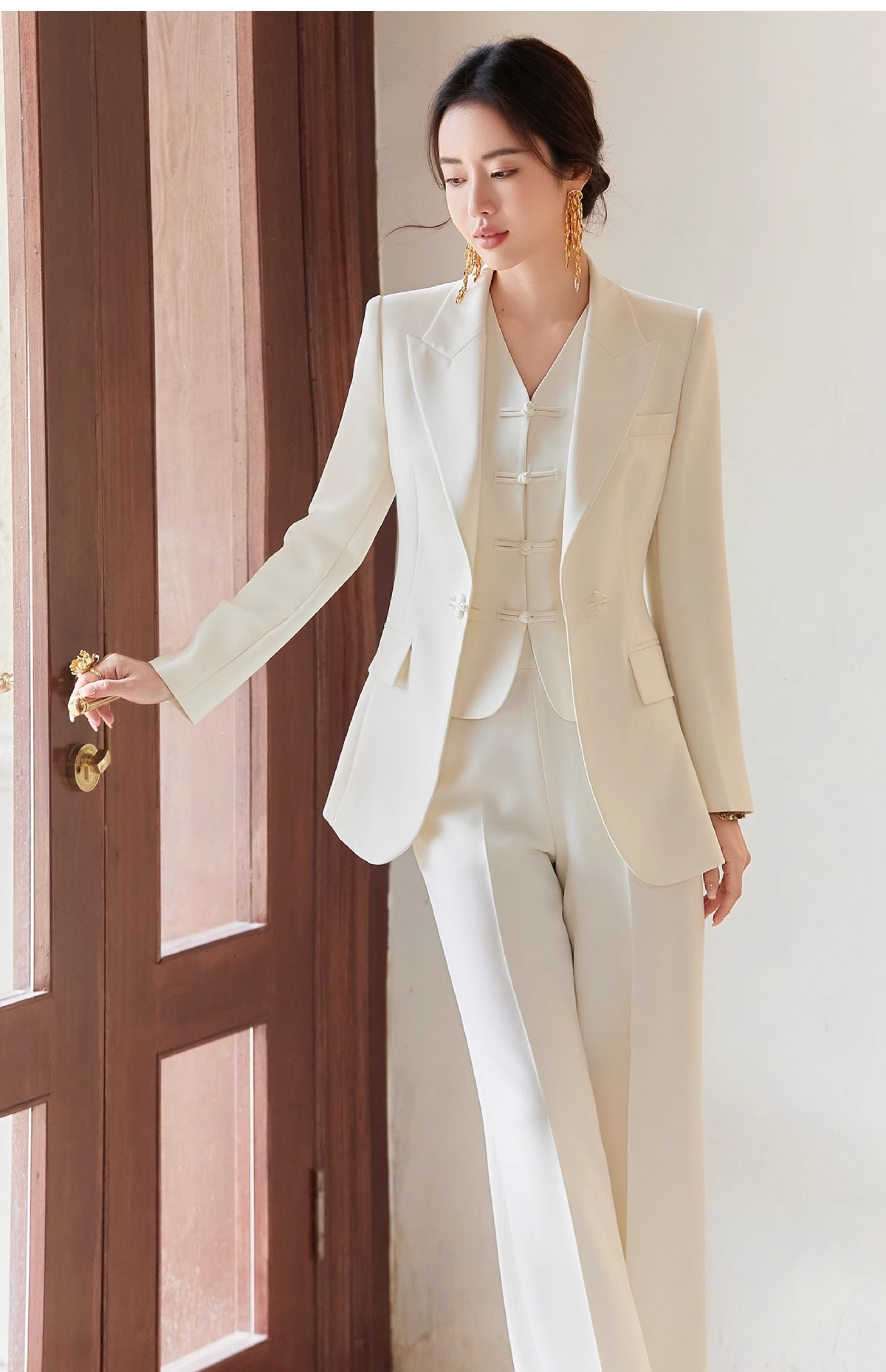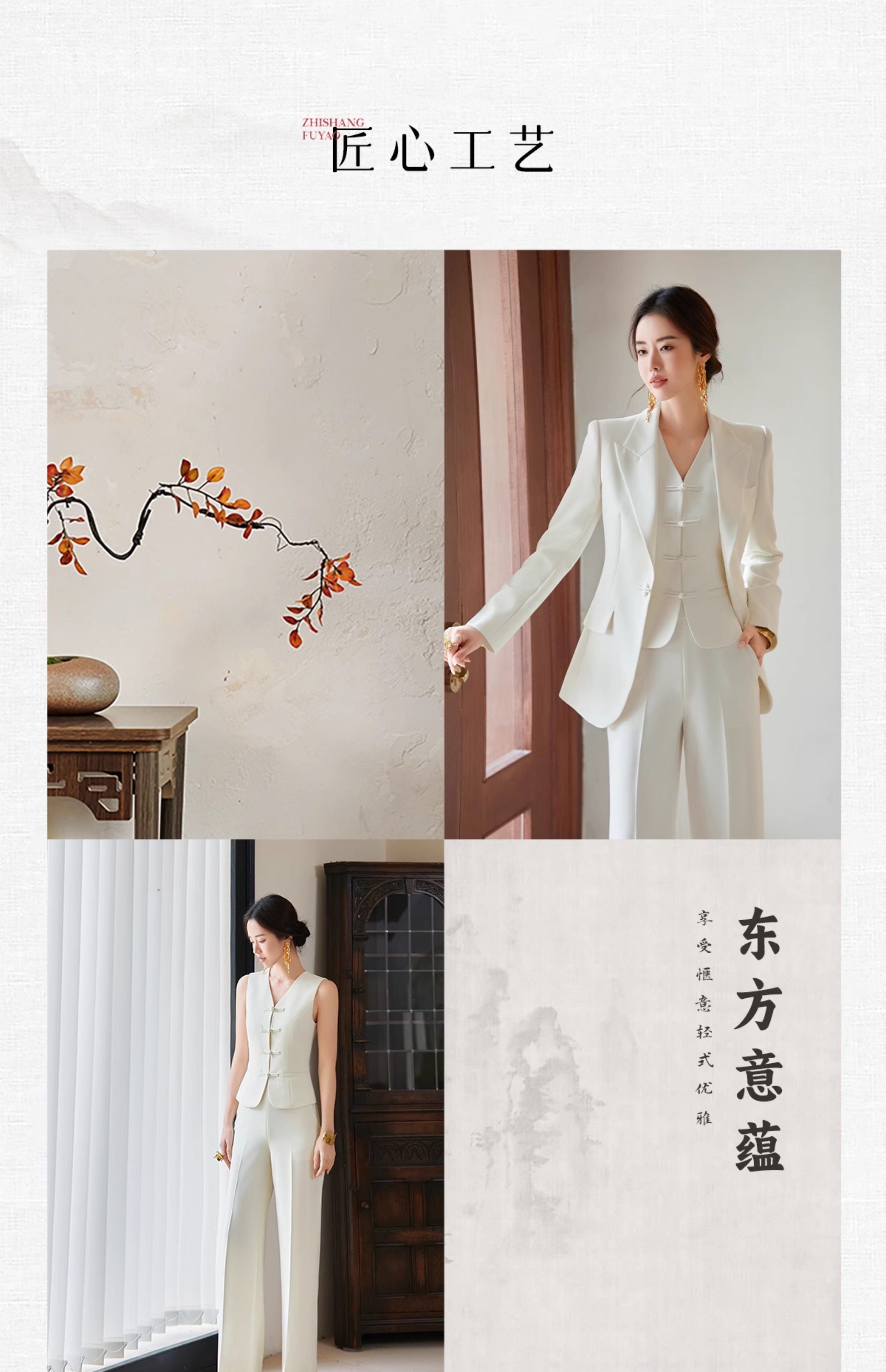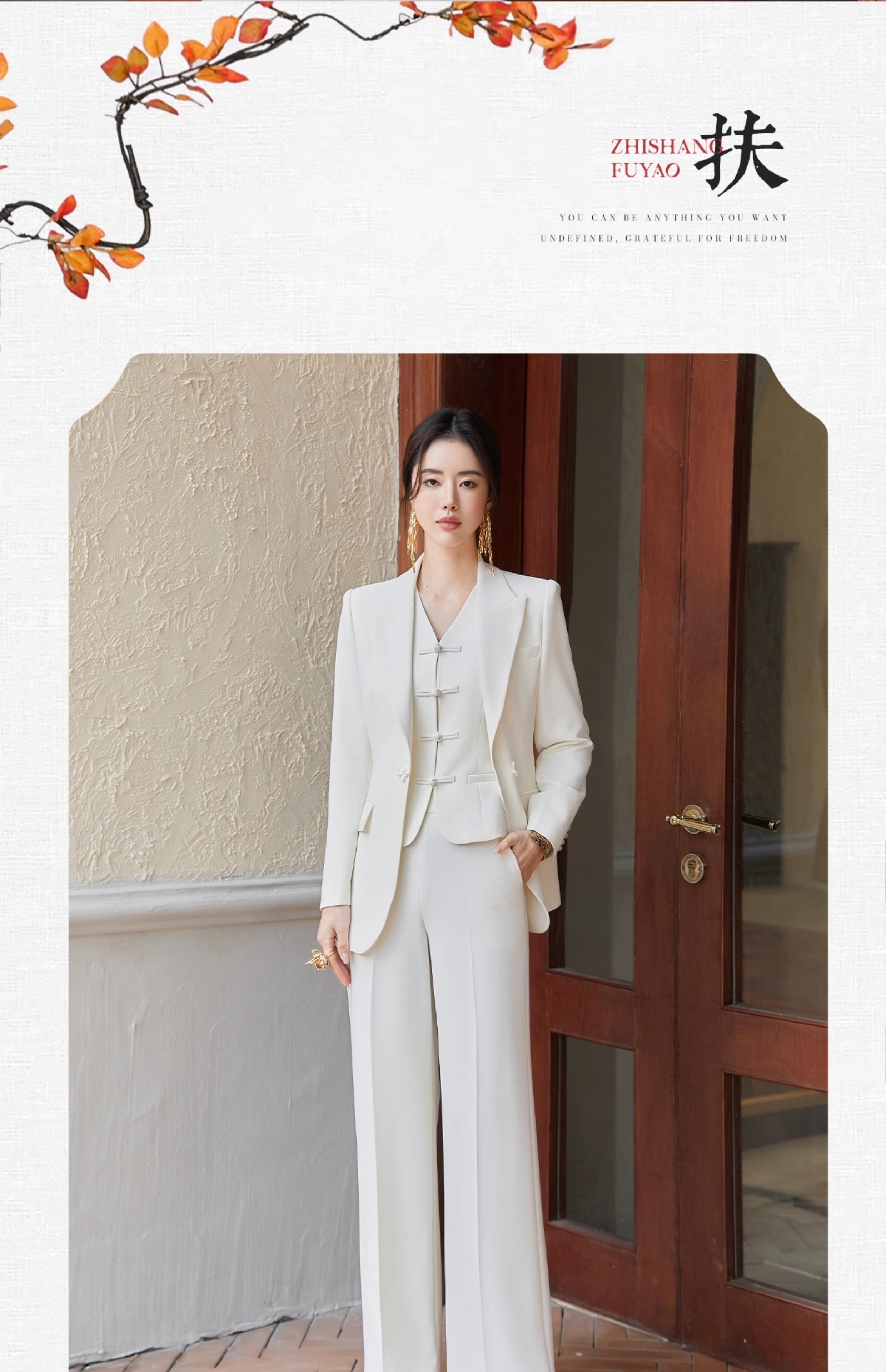 FUYAO扶摇 时尚套装女复古国风盘扣设计感西装马甲三件套工作服春