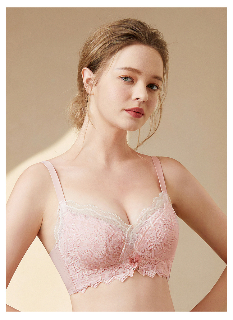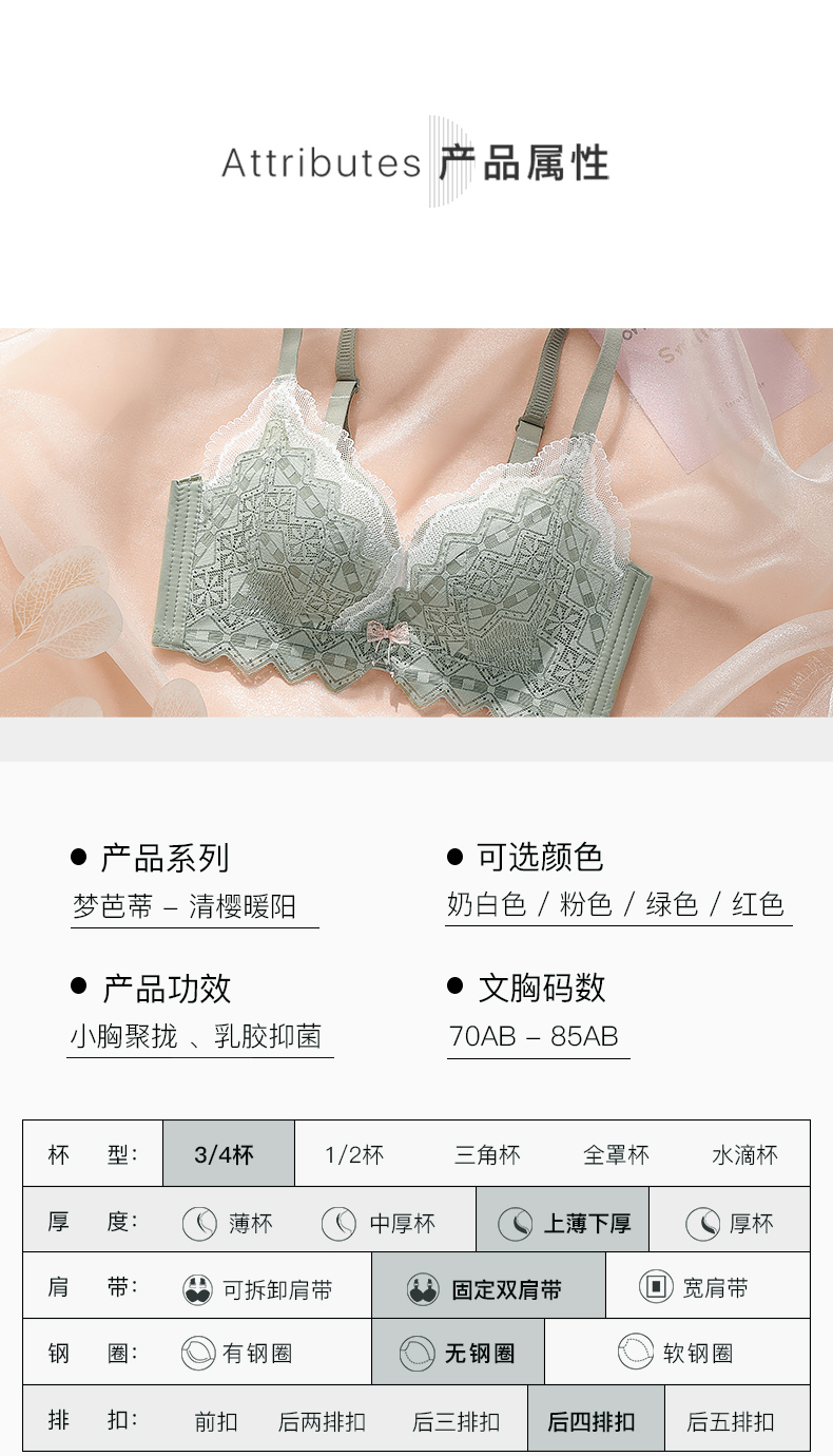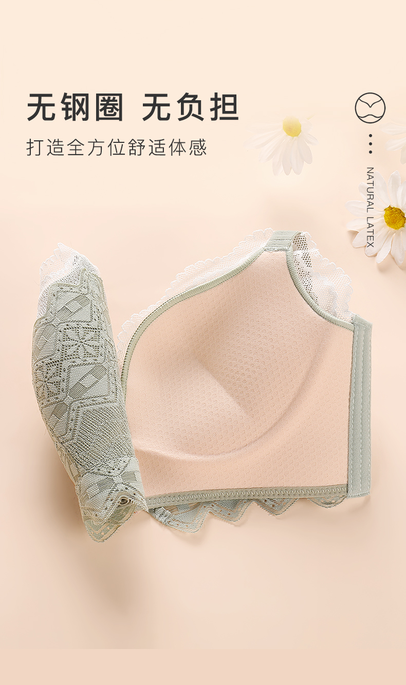 梦芭蒂乳胶内衣女小胸聚拢显大文胸无钢圈收副乳上托胸罩清樱暖阳